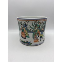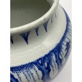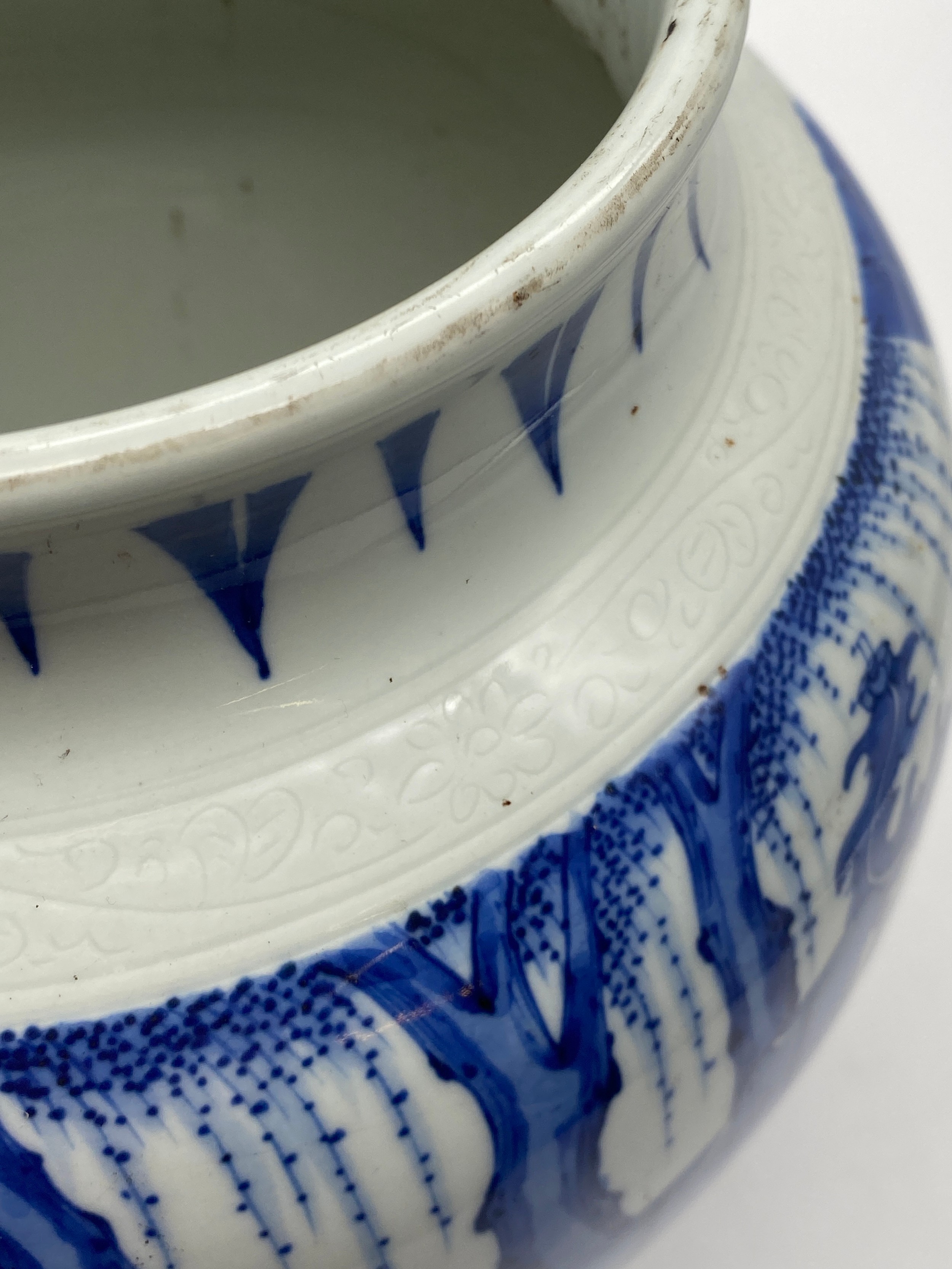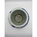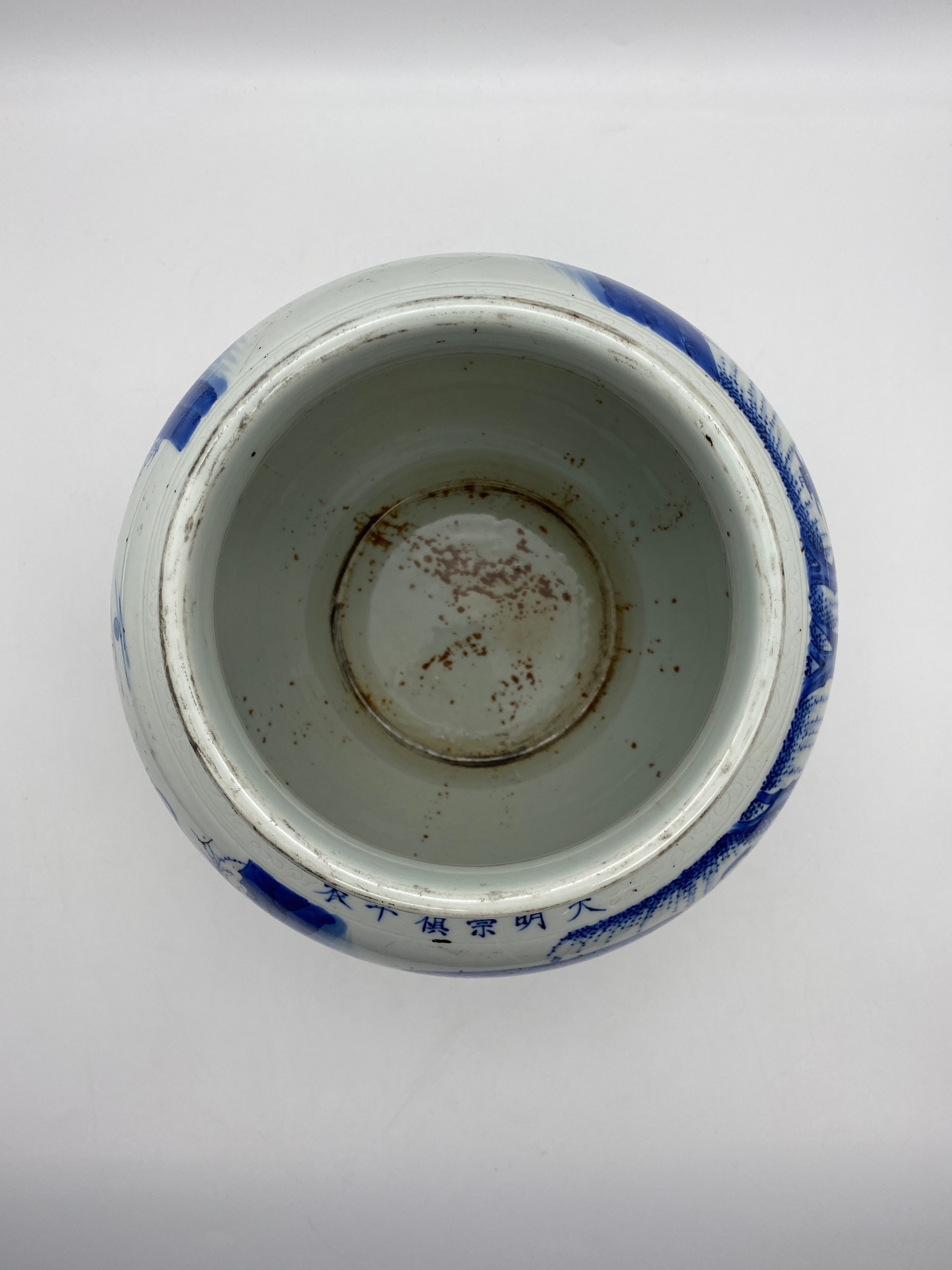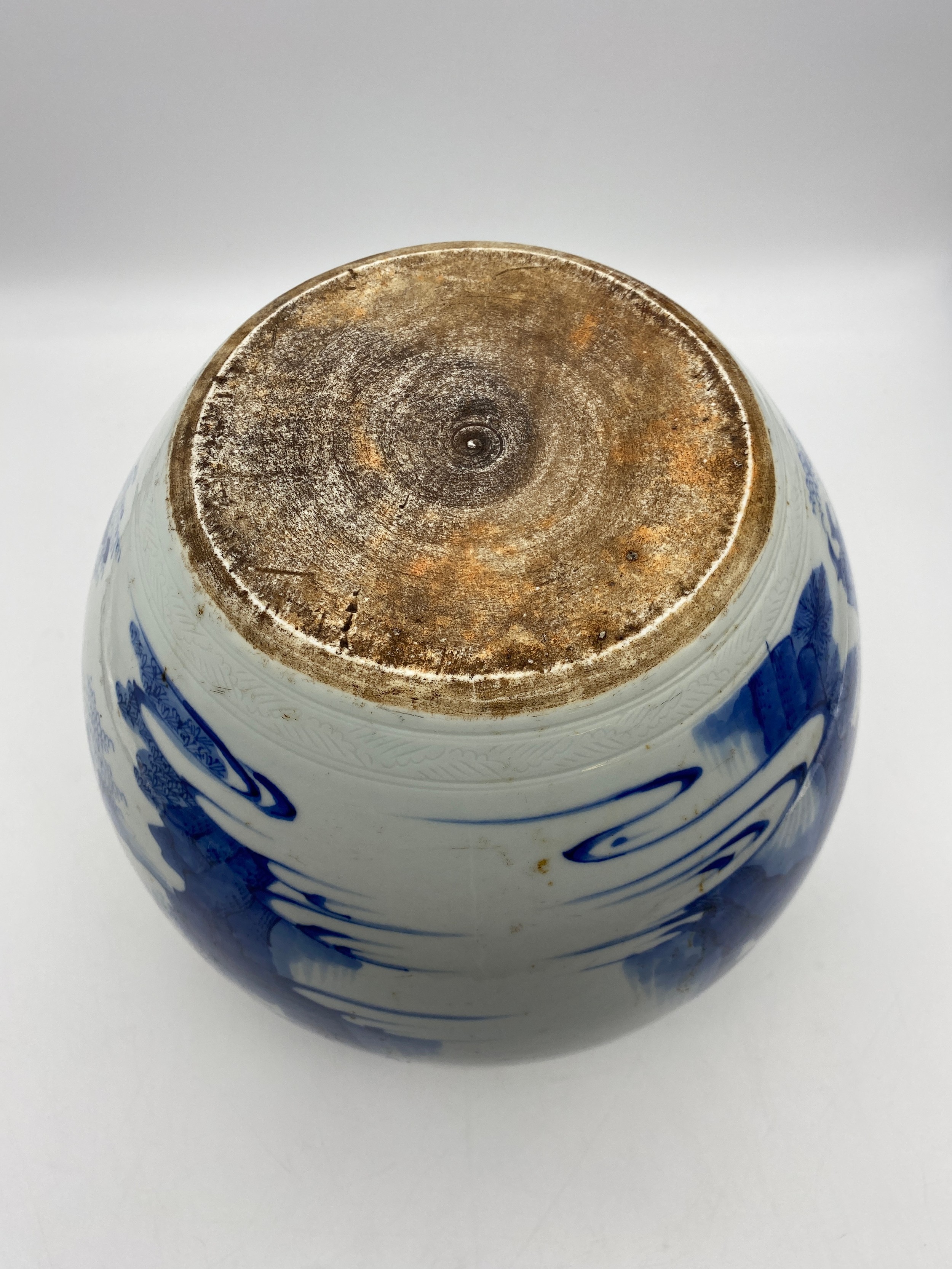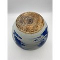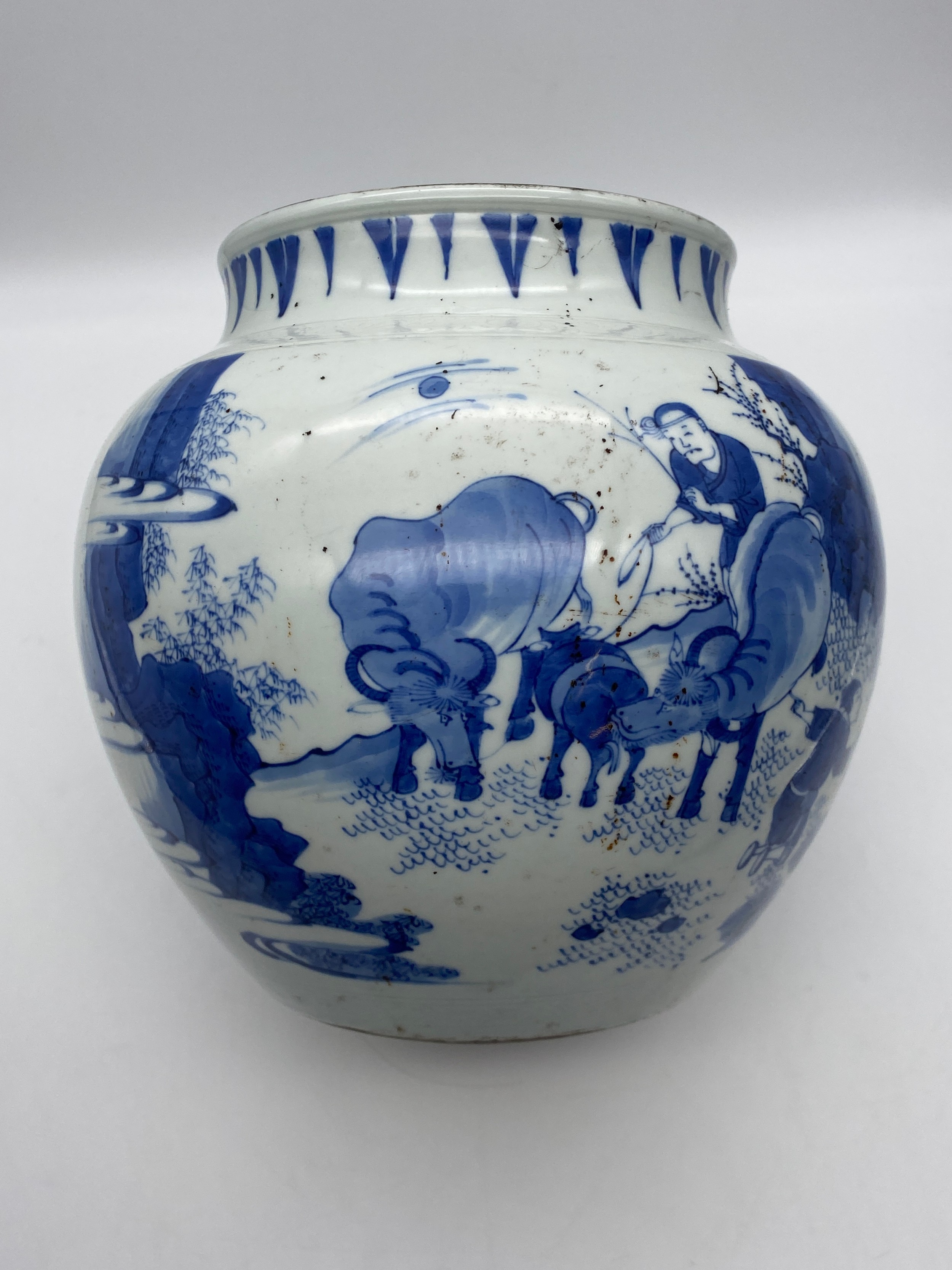 CHINESE BLUE AND WHITE BULBOUS VASE DECORATED WITH A DIGNITARY WITH ATTENDANTS HEIGHT 22.5CM APPROX