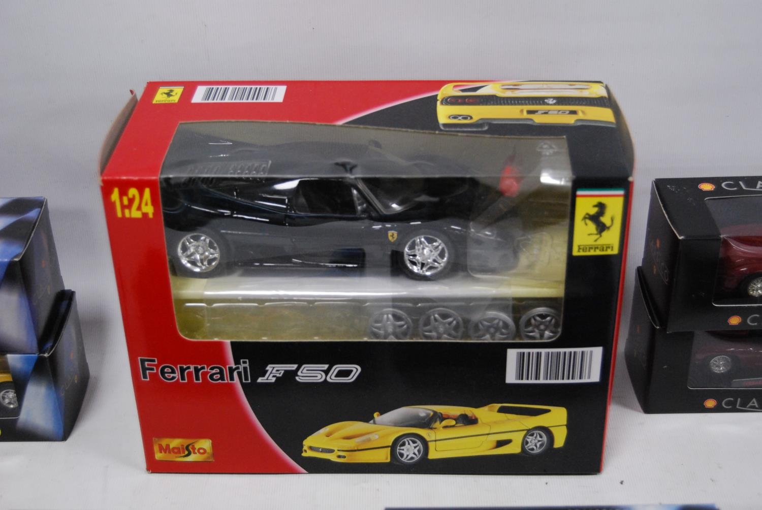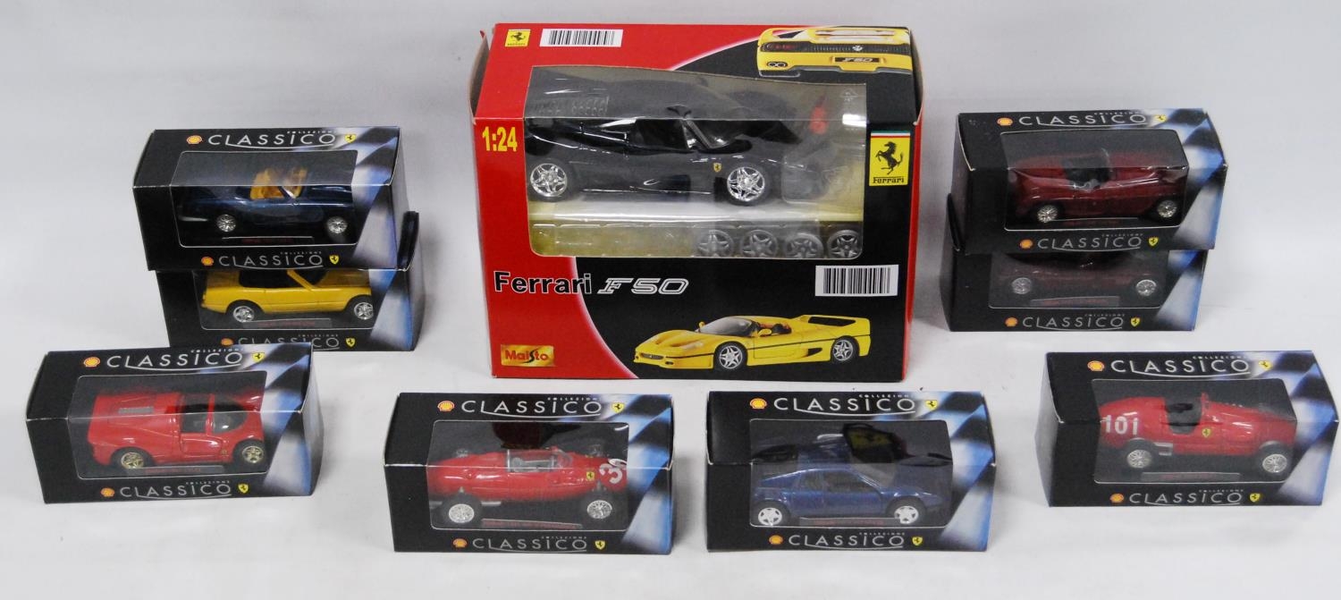 Group of Shell Classic Collection model cars to include 1948 Ferrari 166 MM, 1955 Ferrari 750 Monza, 1952 Ferrari 500 F2, 1967 Ferrari 330 P4, 1961 Ferrari 400 Superamerica, 1961 Ferrari 156 F1, 1973 Ferrari 365 GT4 BB, 1969 Ferrari 365 GTS4 and a Ferrari F50. (9)