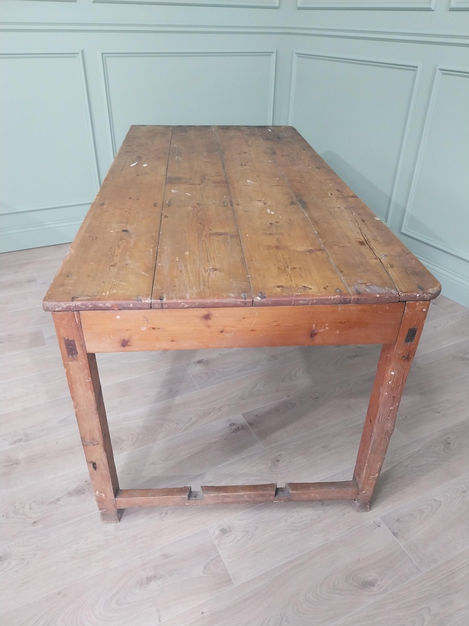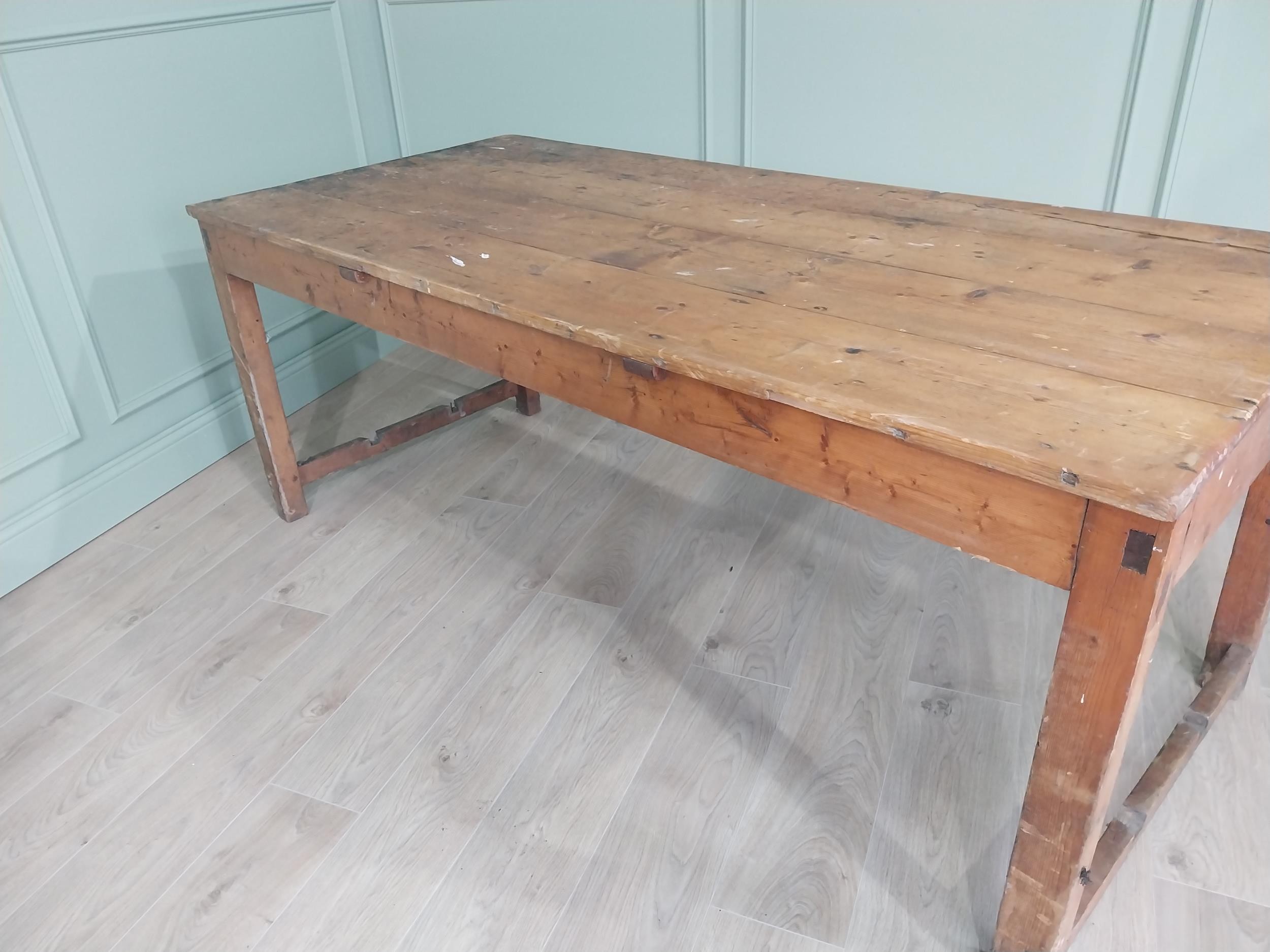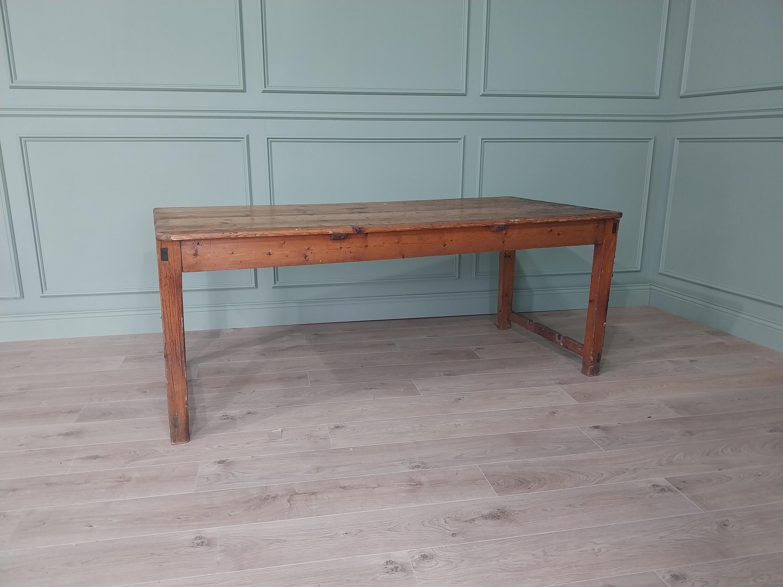 19th C. Irish scrubbed pine kitchen table raised on square legs {75 cm H x 188 cm W x 88 cm D}. U