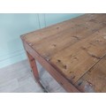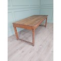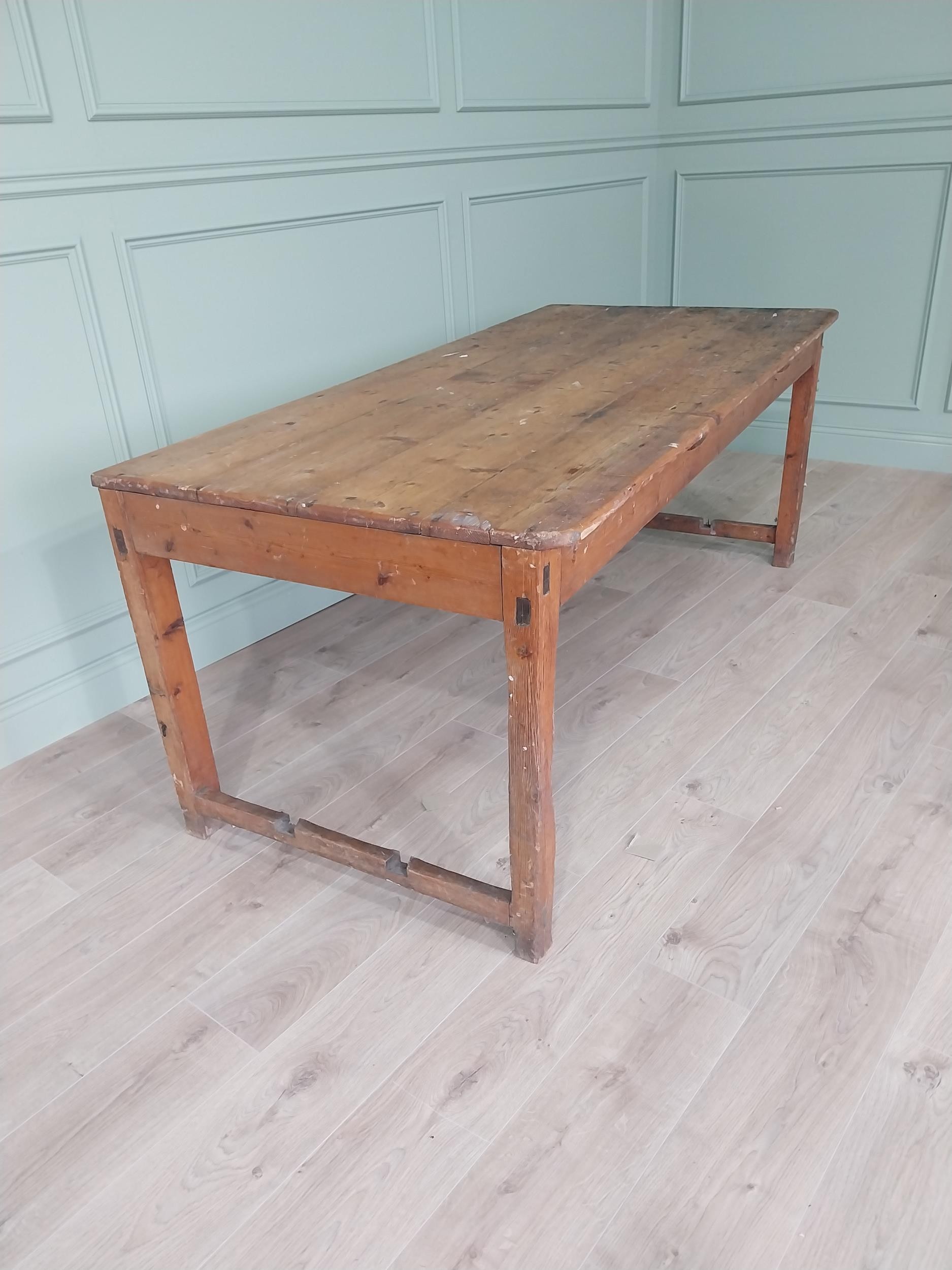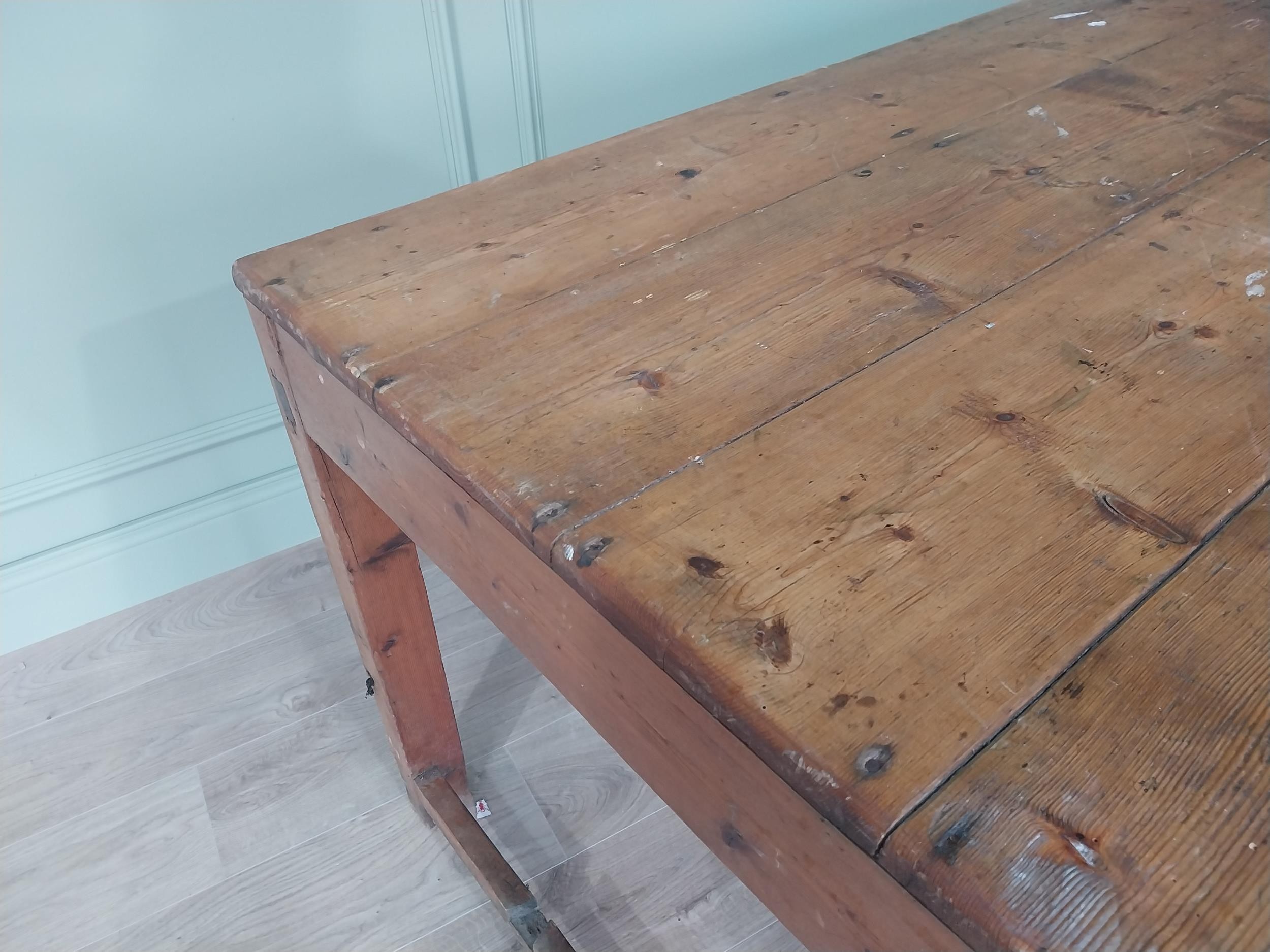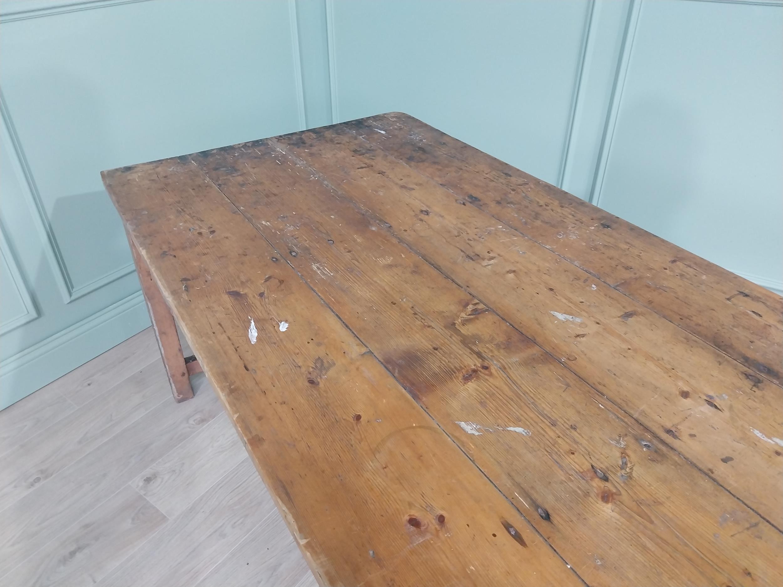 19th C. Irish scrubbed pine kitchen table raised on square legs {75 cm H x 188 cm W x 88 cm D}. U