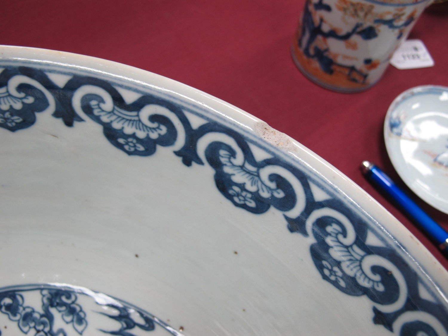 Some pitting/ firing marks, one chip to rim, light surface scratches to inside.