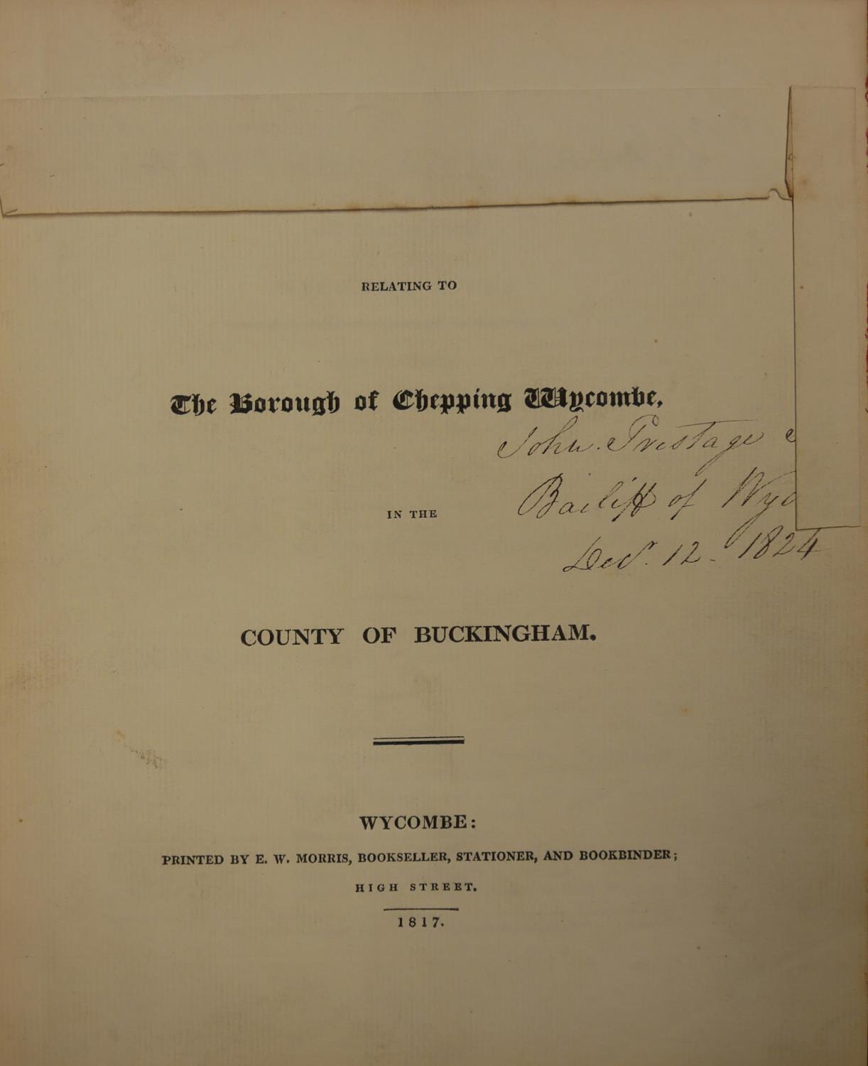 CHARTES GRANTED TO THE BOROUGH OF CHEPPING WYCOMBE, 1817