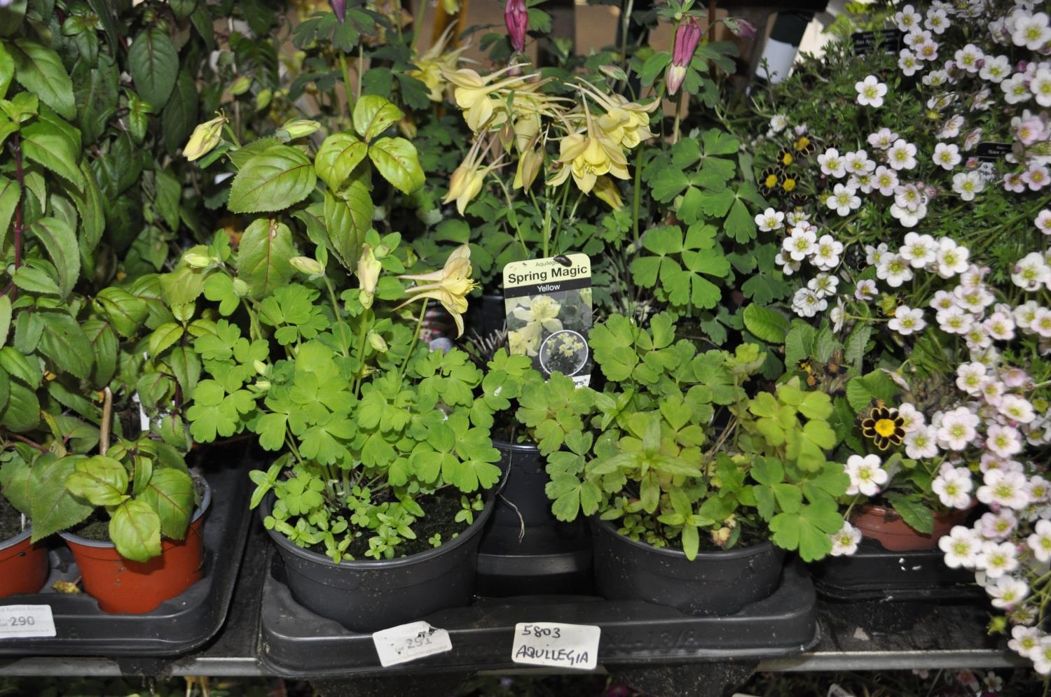 A TRAY CONTAINING 8 X POTTED AQUILEGIA PLANTS