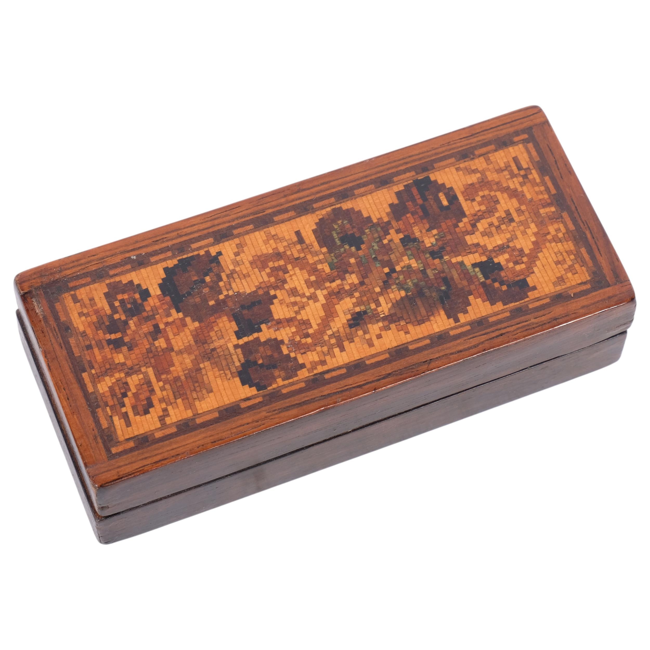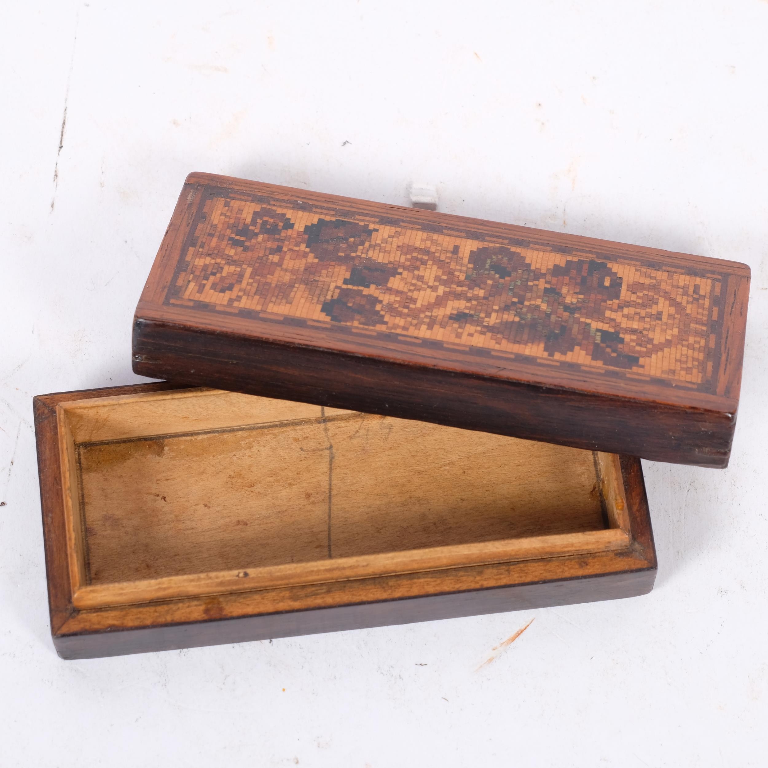 A Tunbridge Ware inlaid trinket box, L10cm