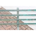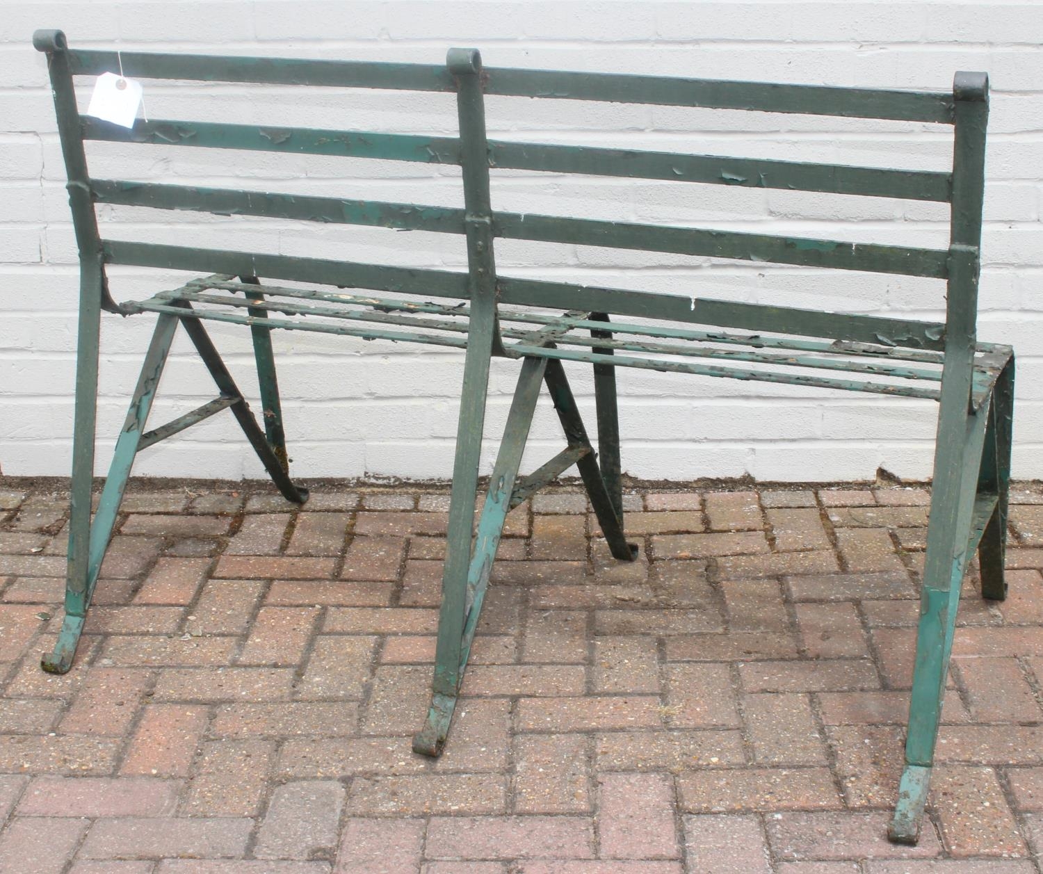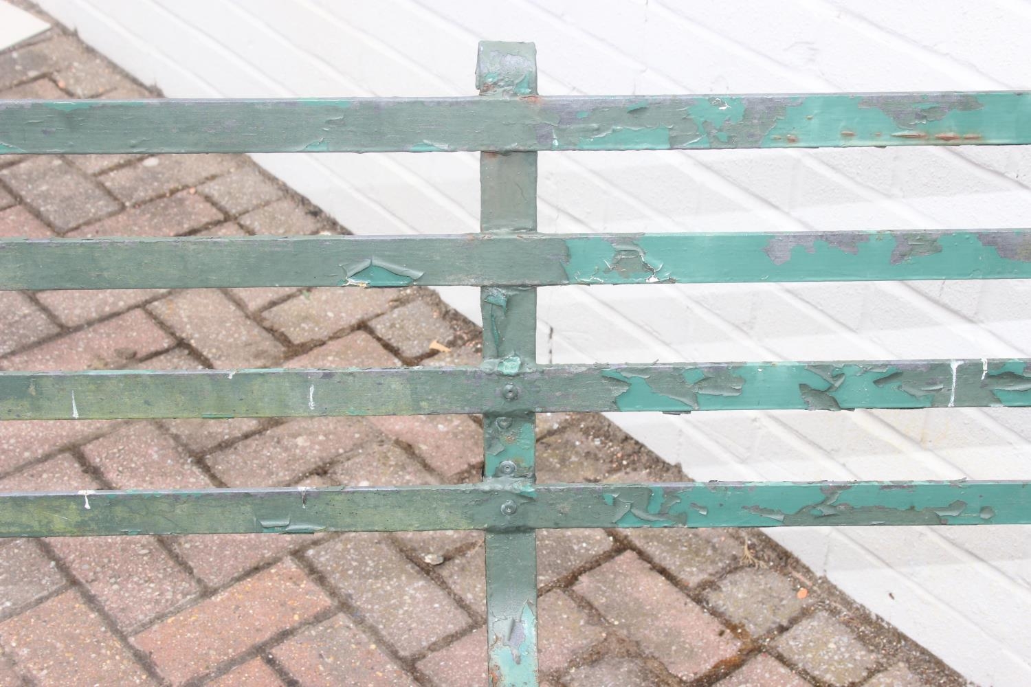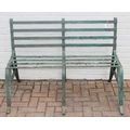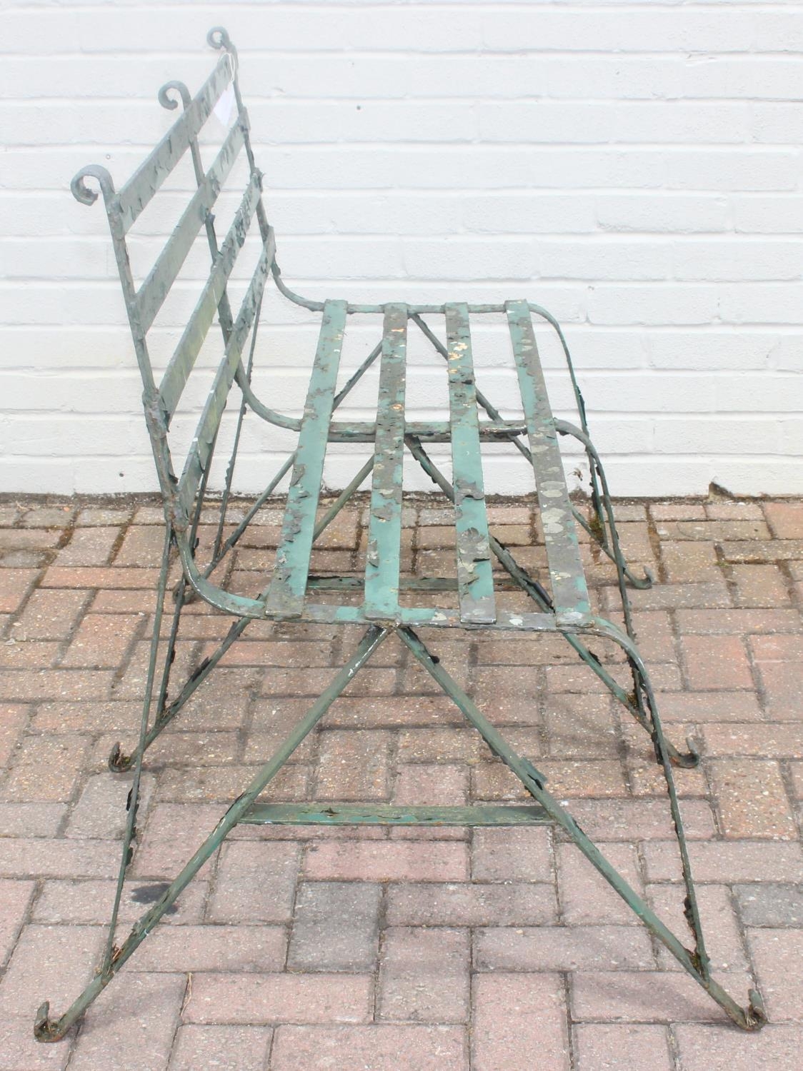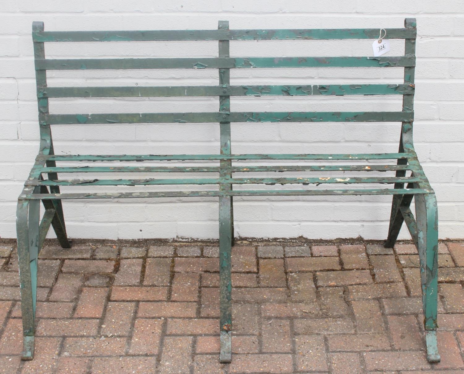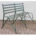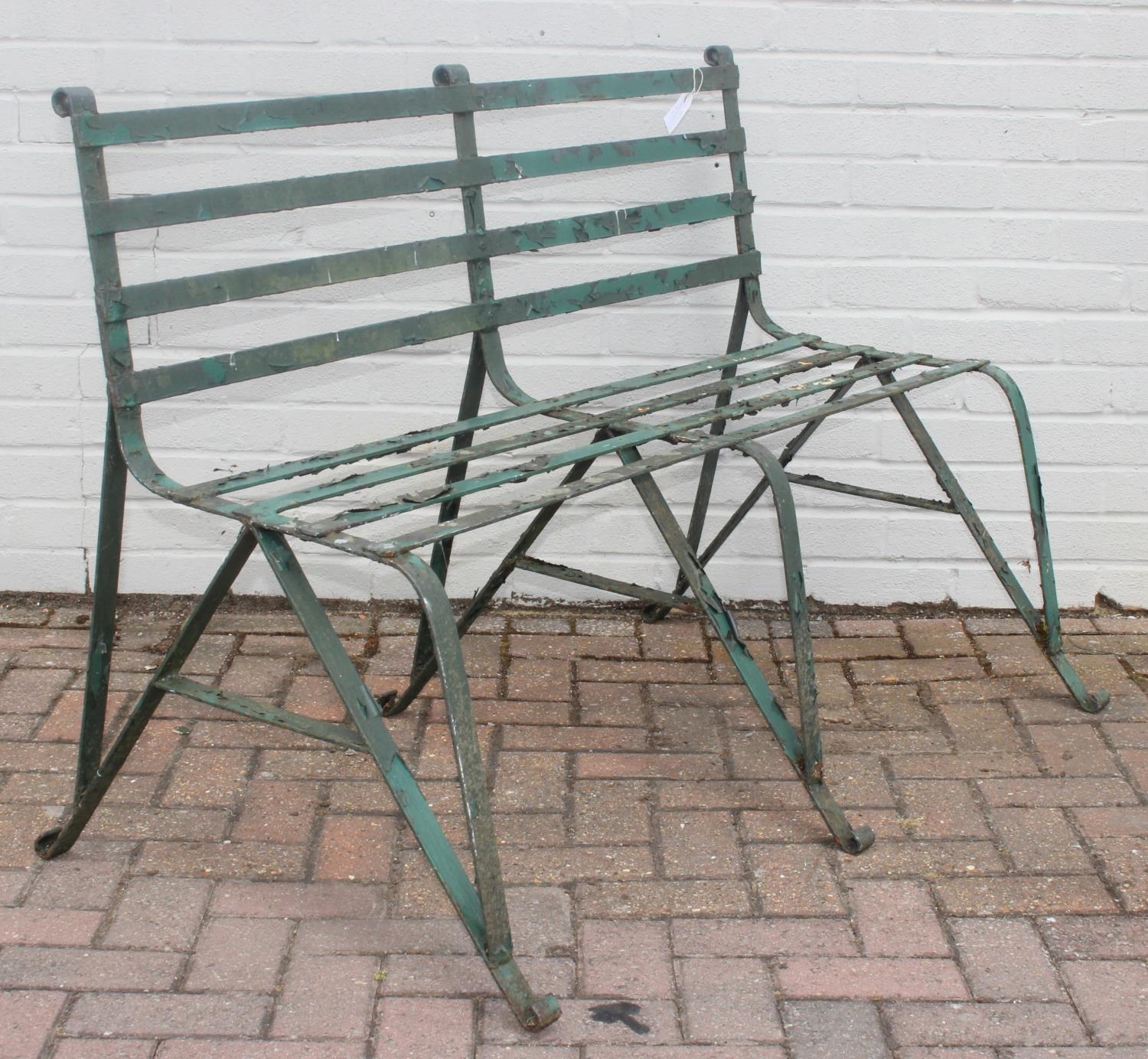 Antique green painted wrought iron garden bench with scroll end detail, late 19th or early 20th century, 123cm x 72cm x 87cm