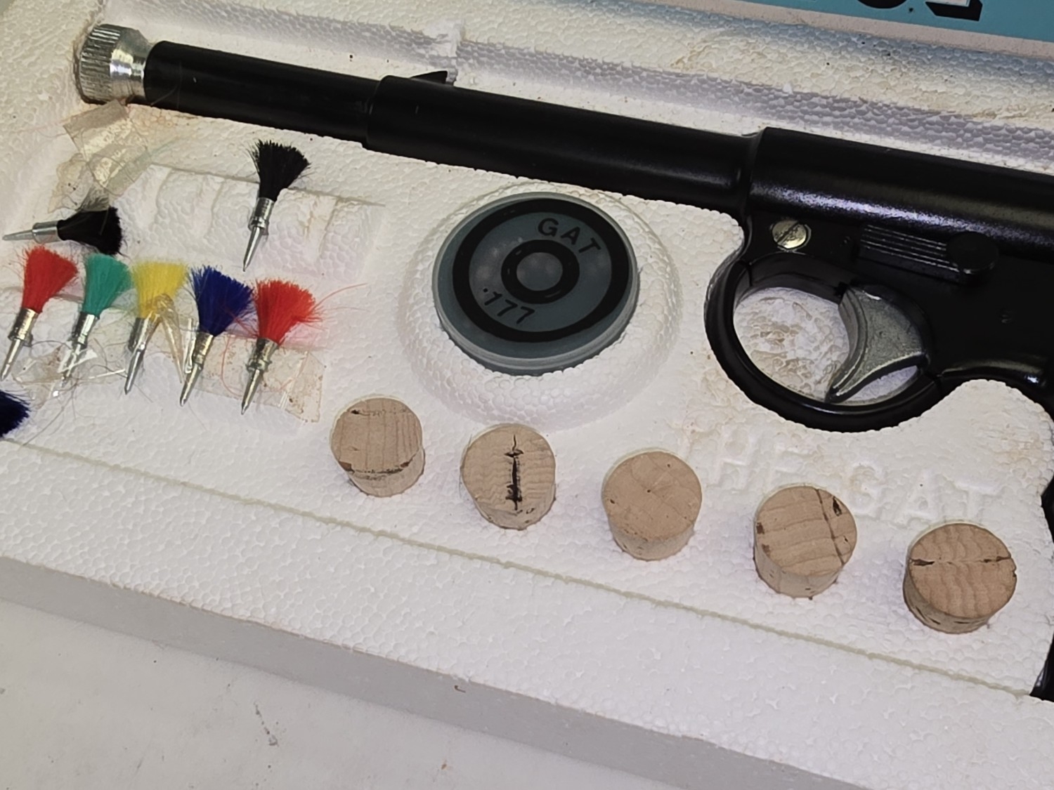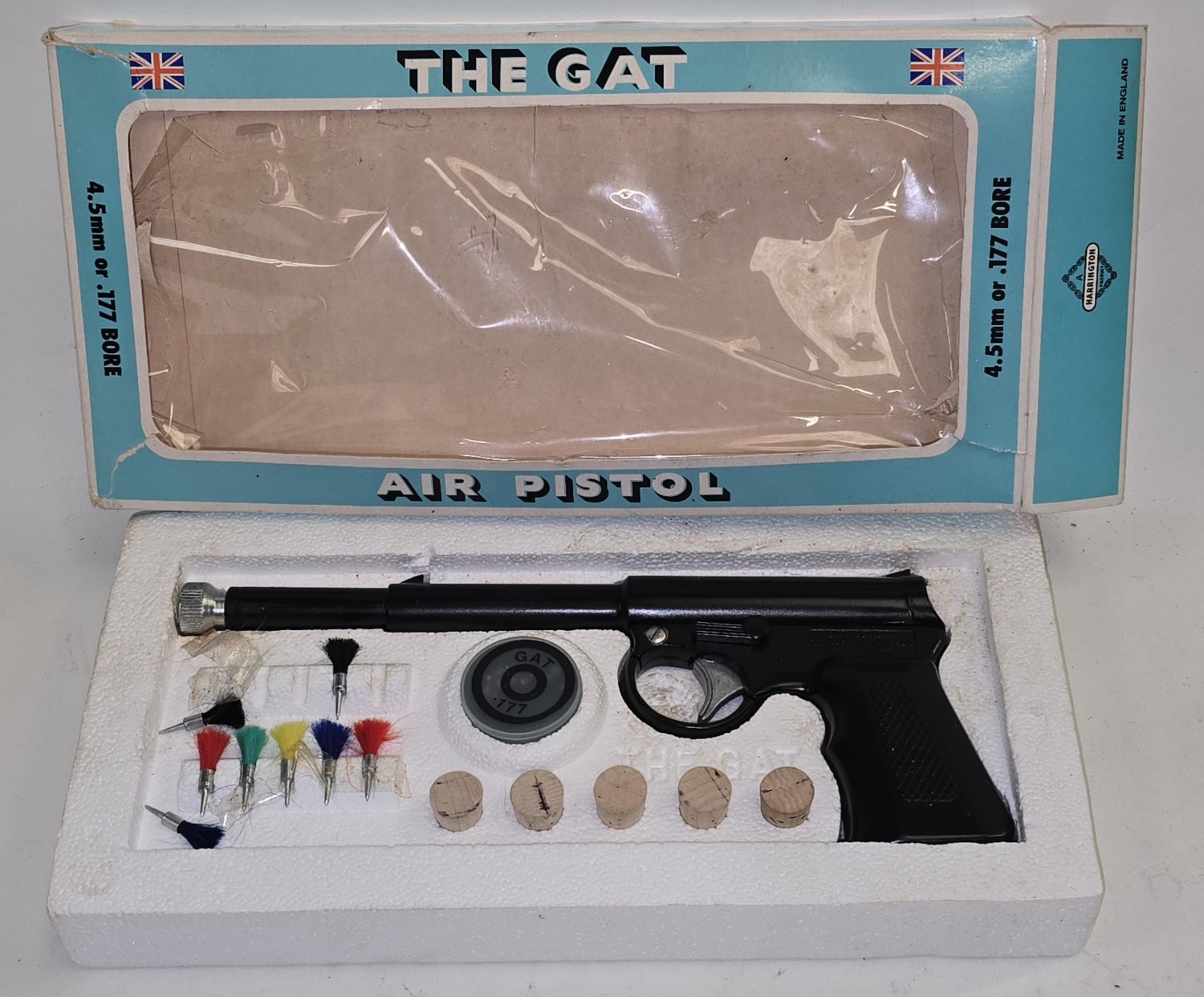 Vintage Harrington "The GAT" Air Pistol 4.5mm or .177 Bore c/w original box.