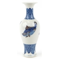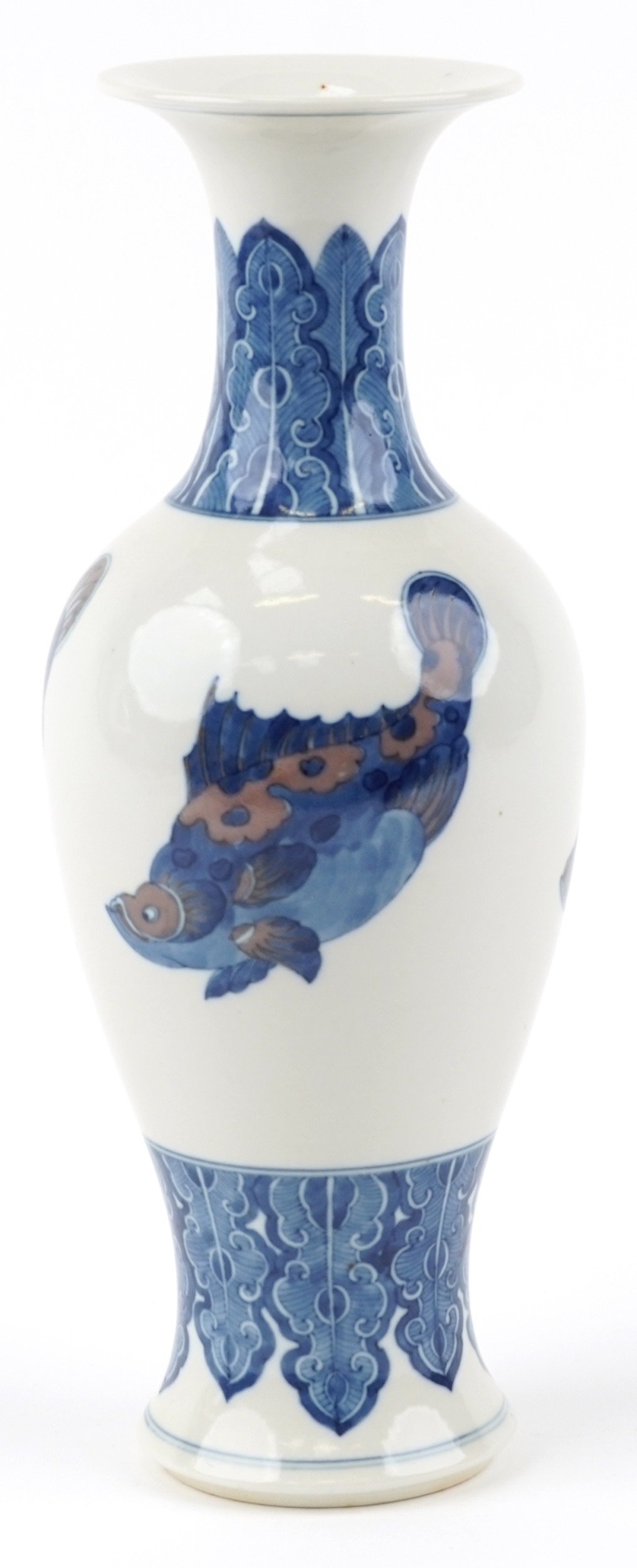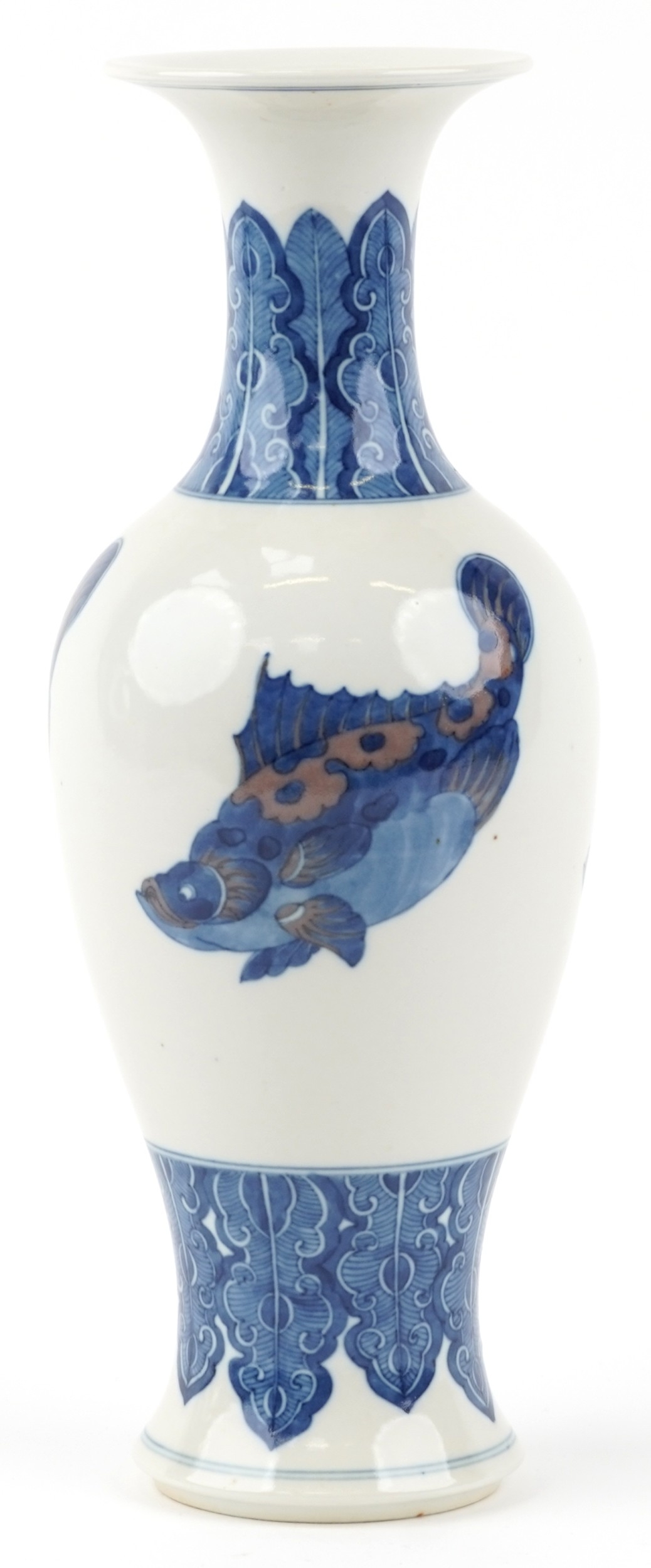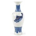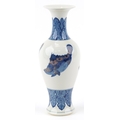 A Chinese blue and white porcelain vase decorated with fish, 35cm high.
