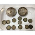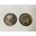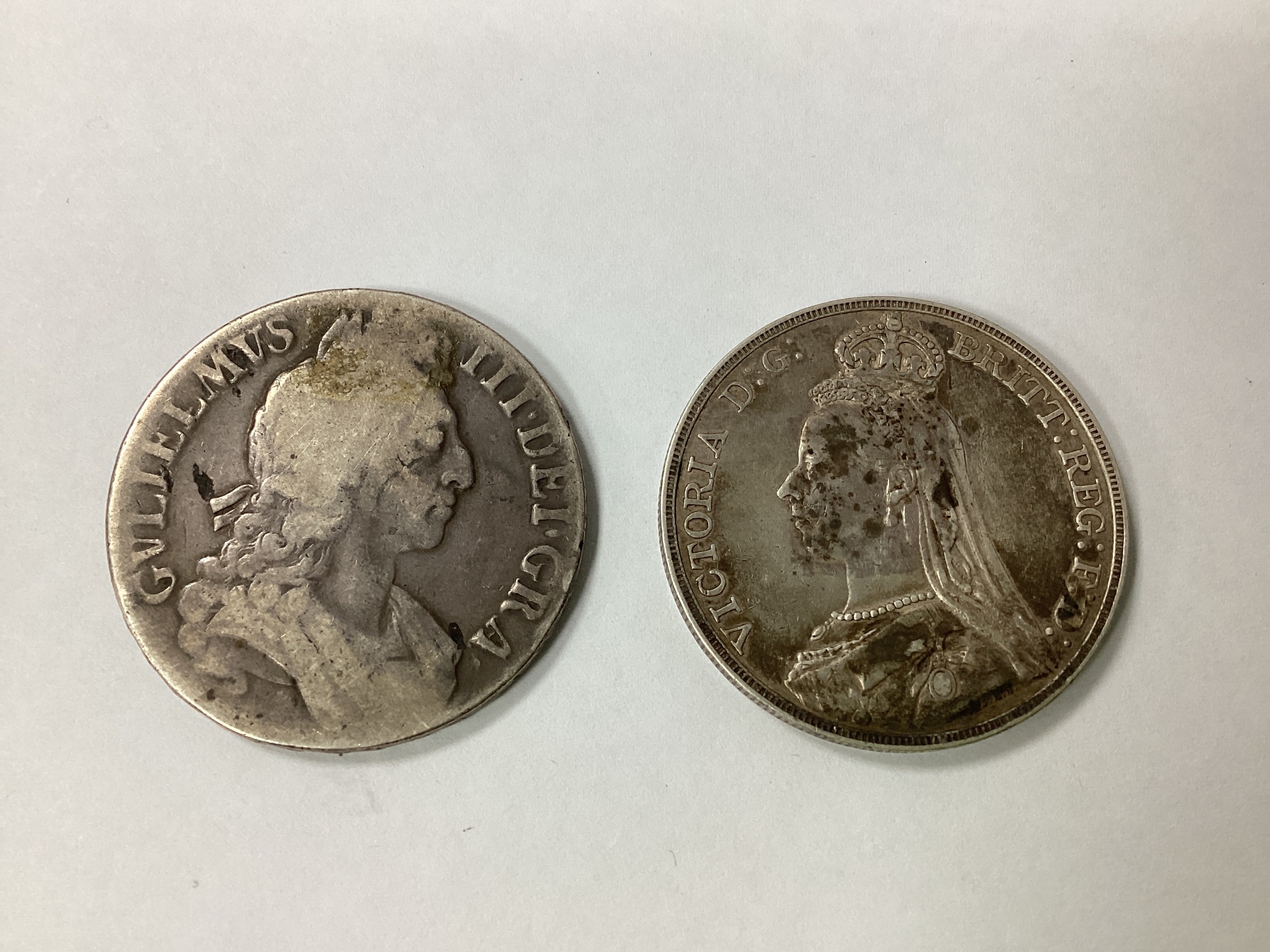 Collection Of GB Silver Coins, includes a 1696 William III Crown, 1889 Victoria Crown, Threepences, total weight 70g.