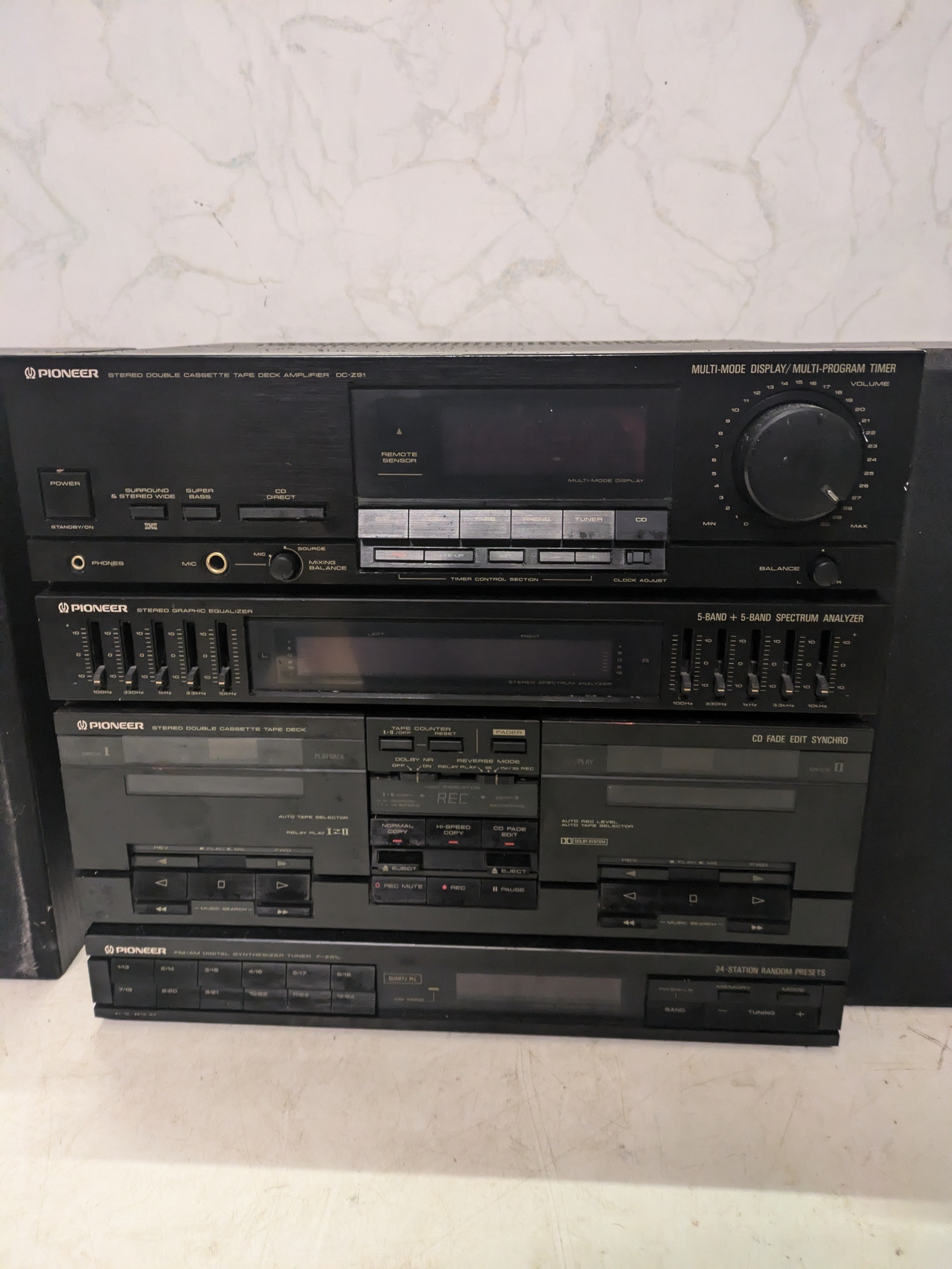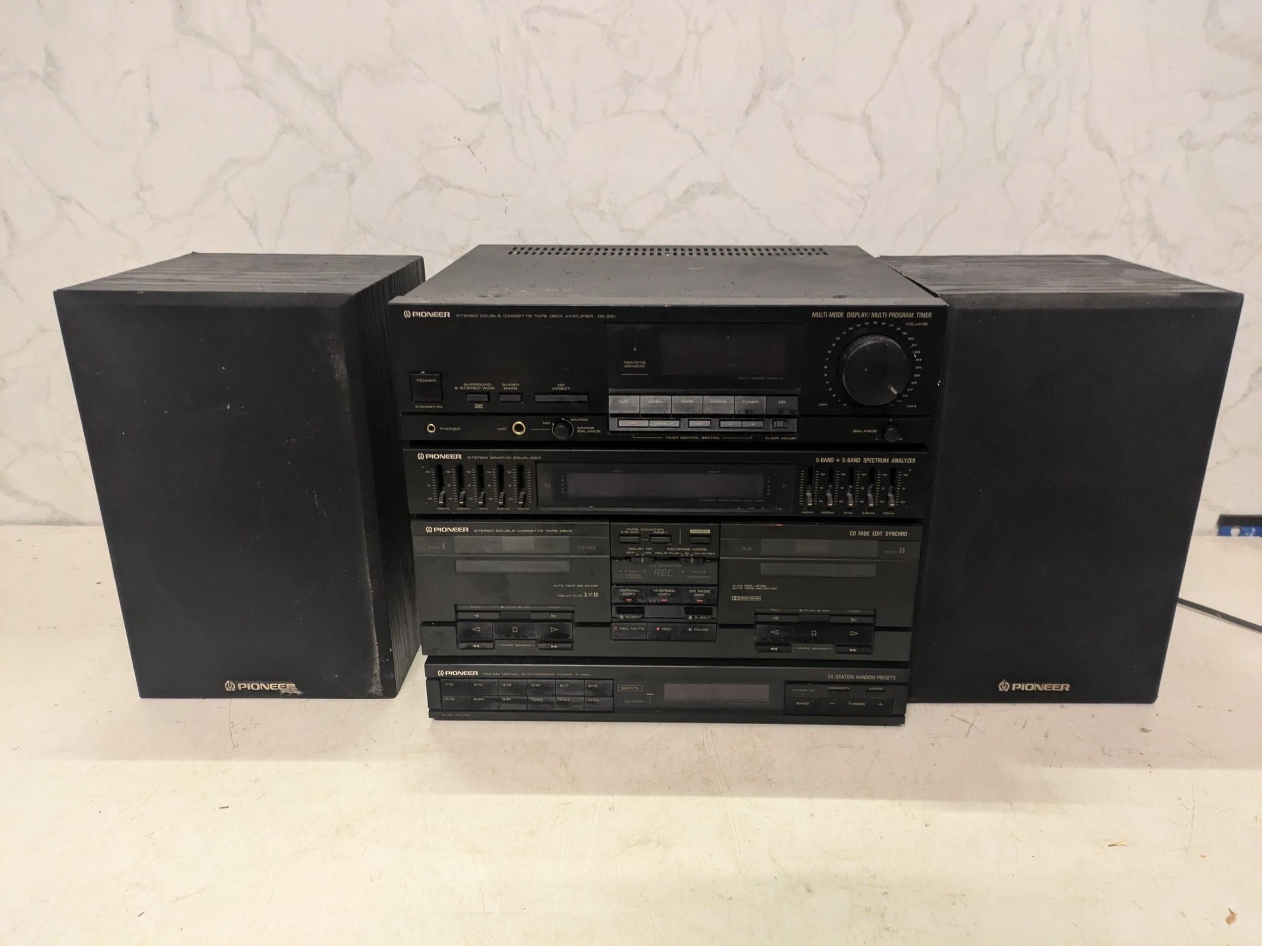 a pioneer stack system with a pair of pioneer bookshelf speakers
