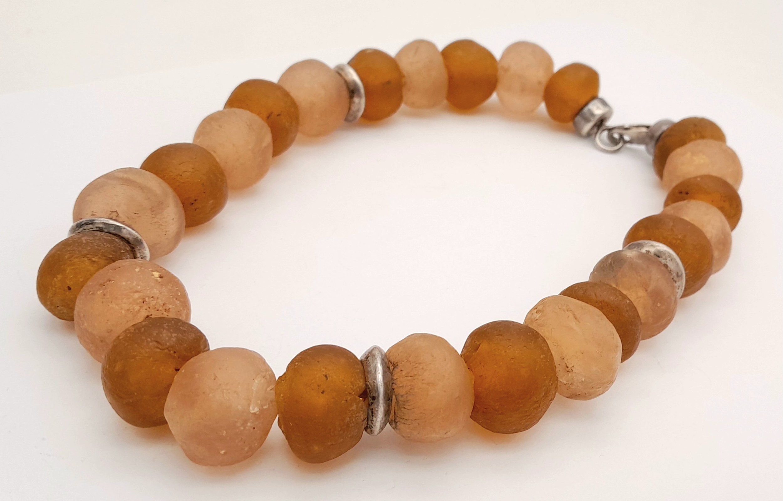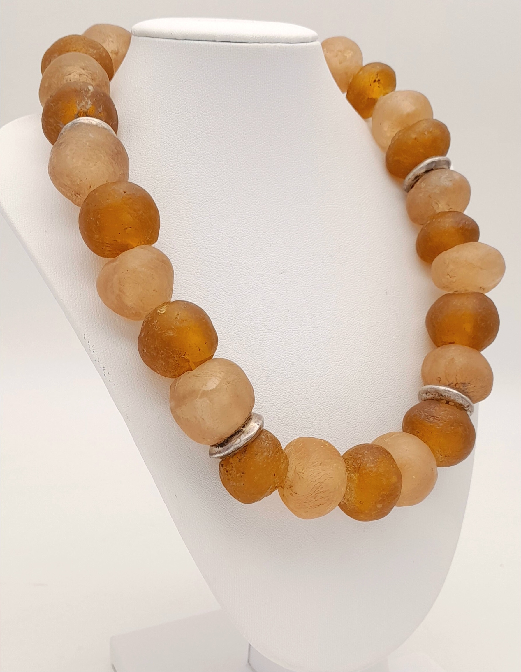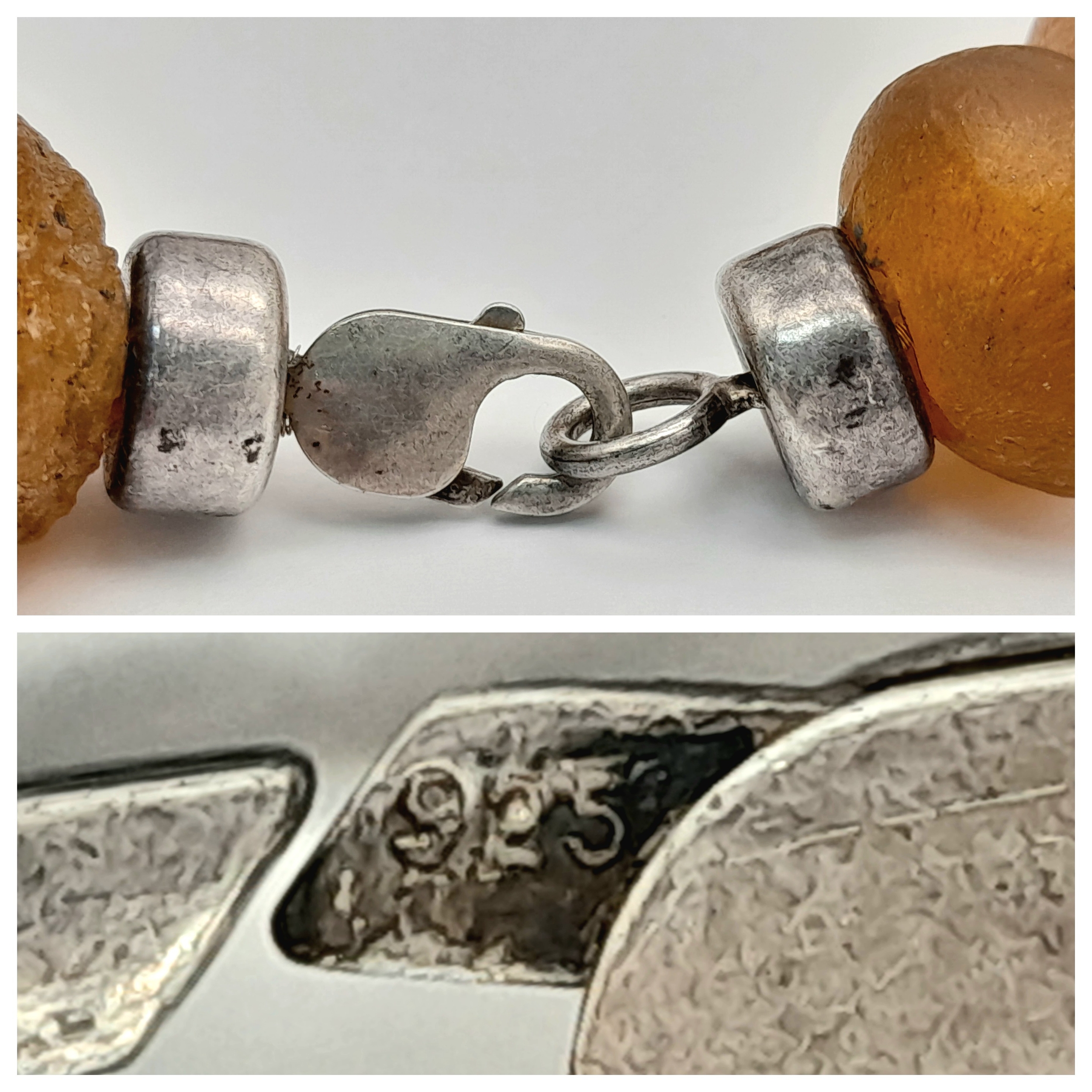 A vintage 925 silver large stone set spacers link chunky necklace. Total length 50cm.