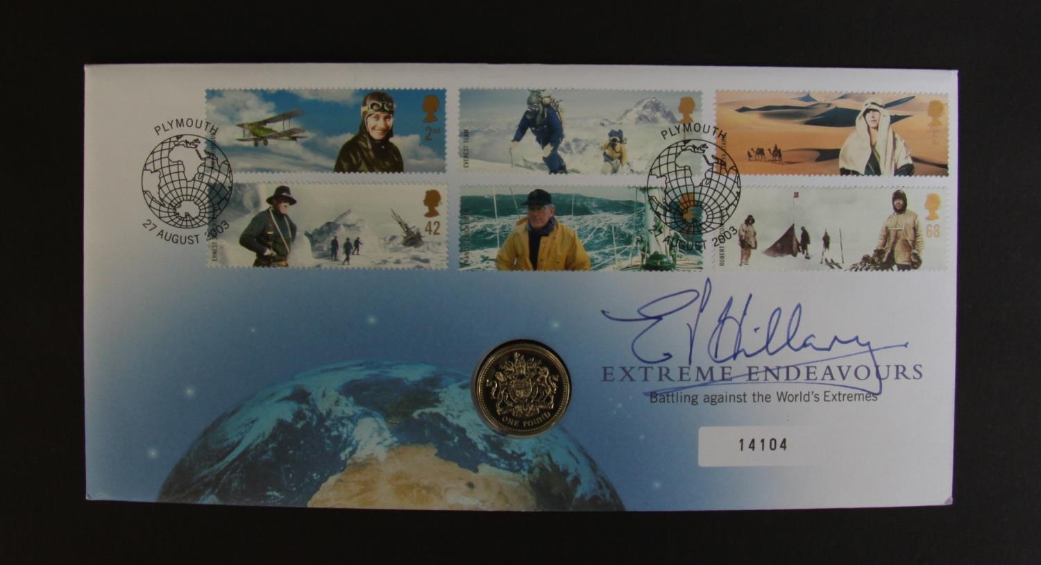 Autograph, Mount Everest, E P HILLARY on extreme endeavours 2003 Royal Mint FDC