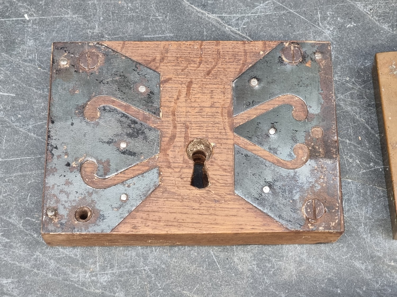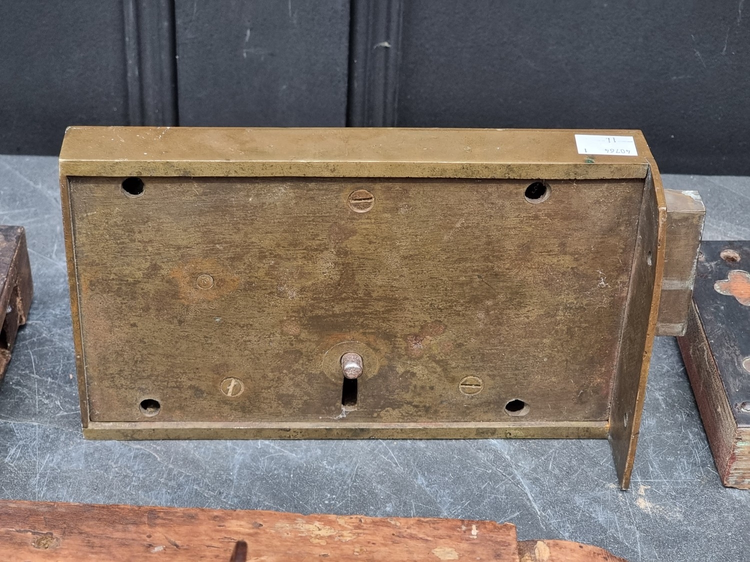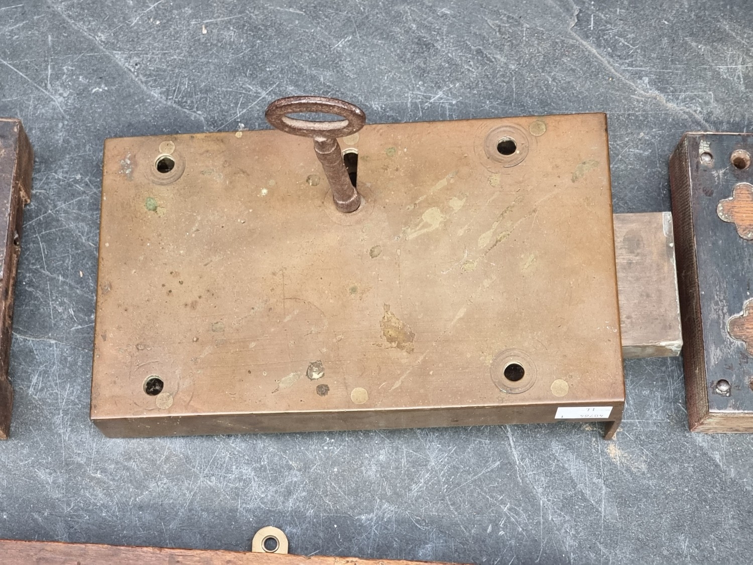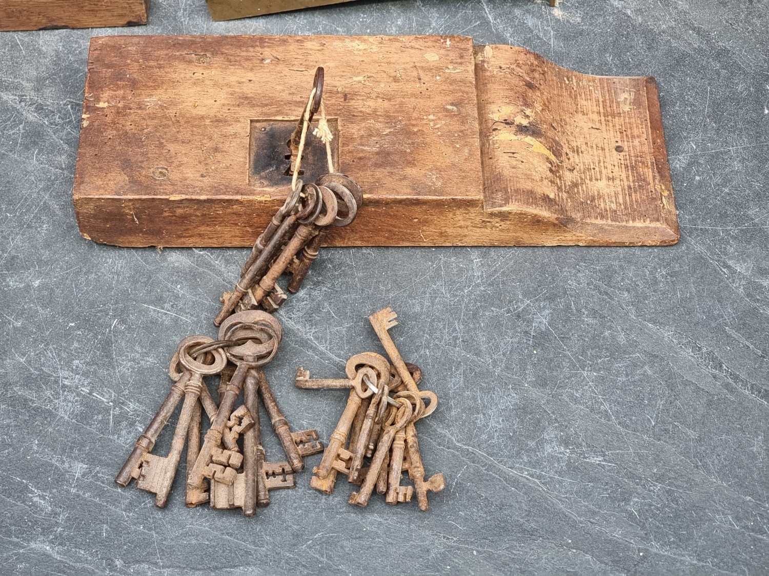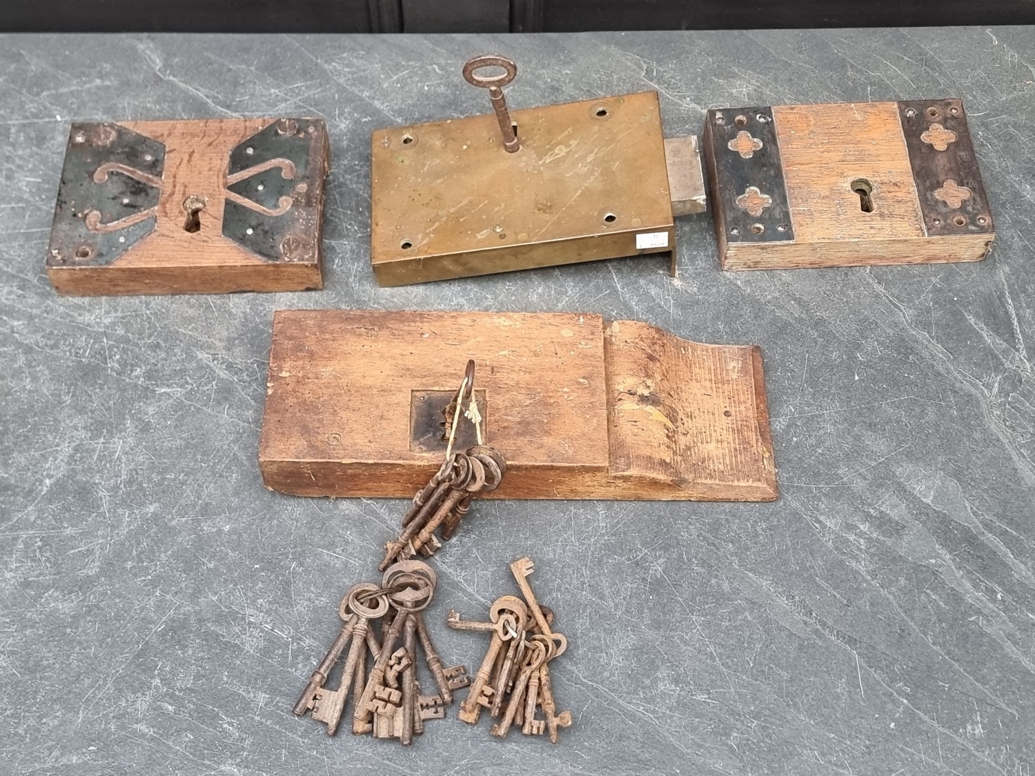 Four antique locks; together with a collection of antique steel keys.