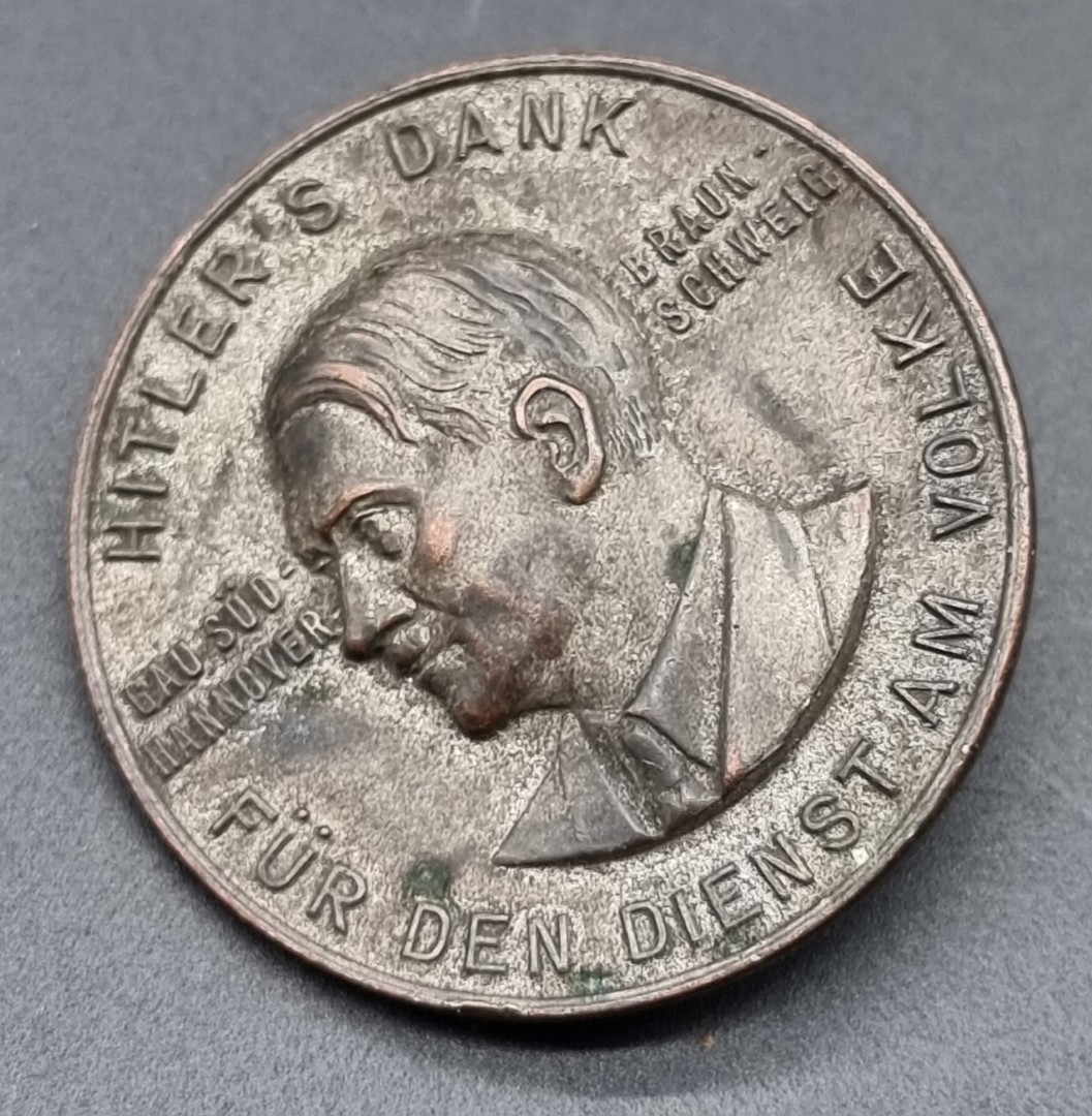 A WWII German Hitler's 'Thanks For The Service To The People Day' Badge, by Paulmann & Crone, Ludenscheid, 36mm.