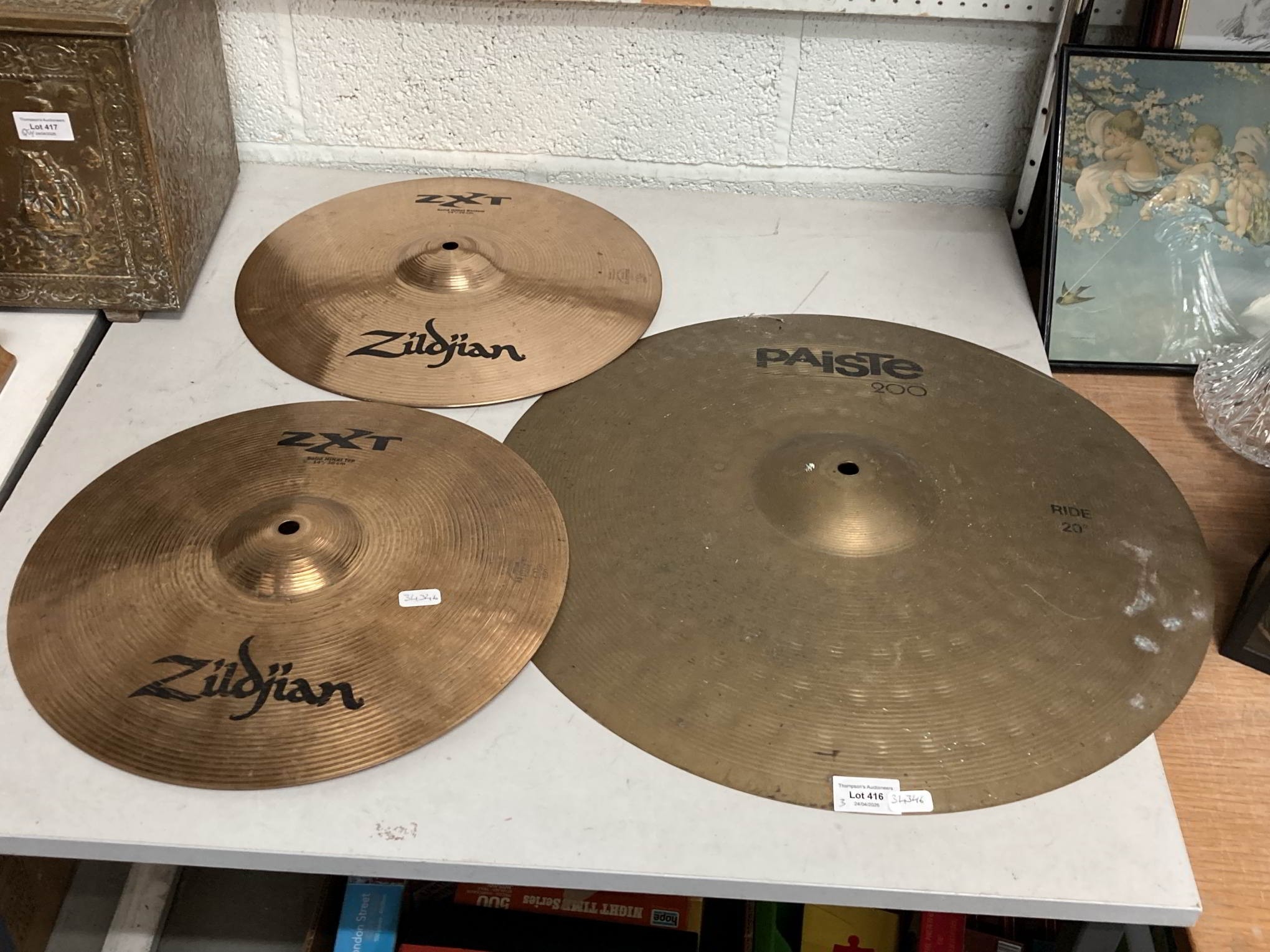 2 Zildjian ZXT 36cm solid HiHat top cymbals & a Paiste 200 20" cymbal