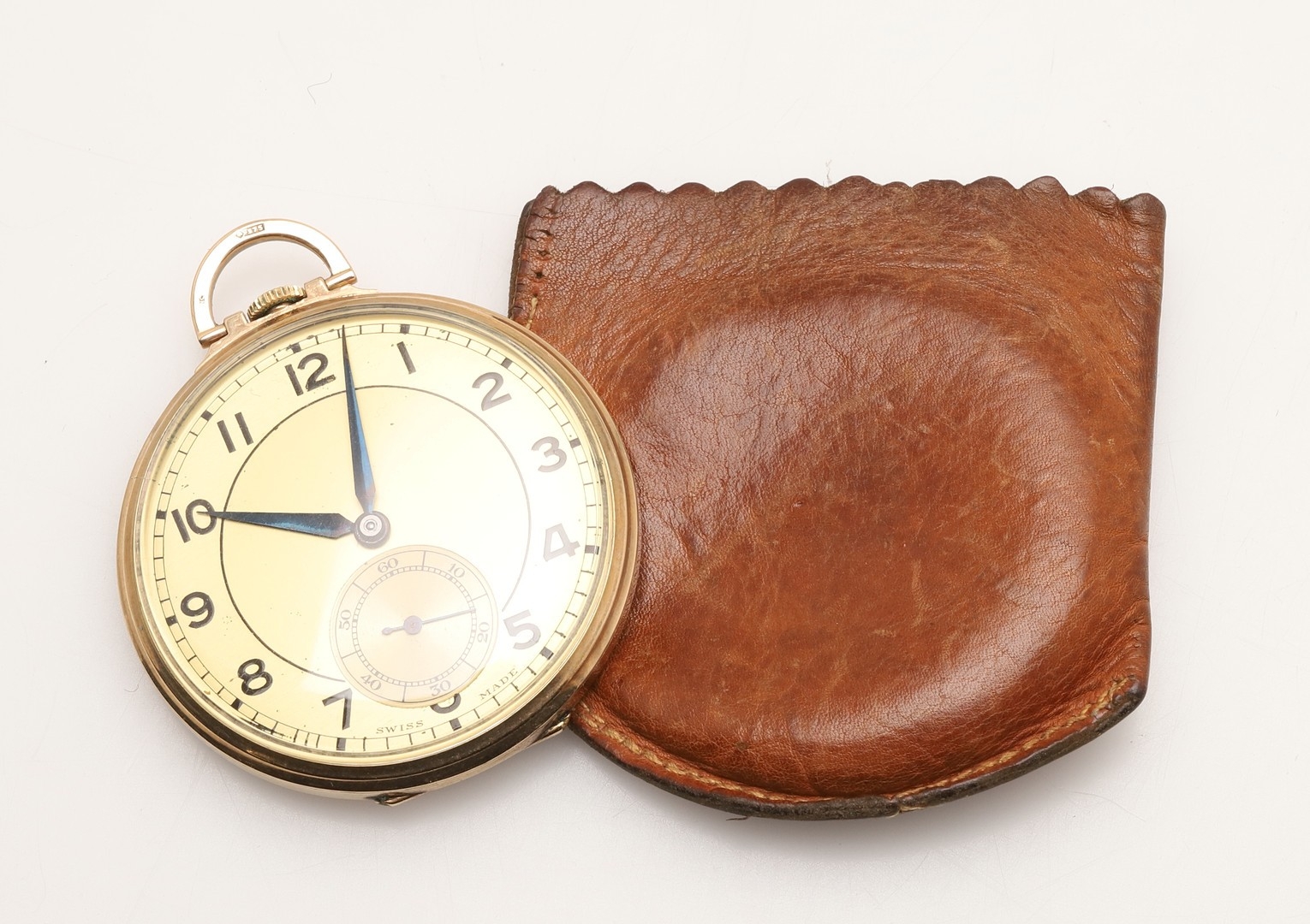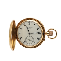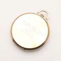 A 9CT GOLD OPEN FACED POCKET WATCH. the circular gold coloured dial with Arabic numerals and subsidiary seconds dial, with presentation inscription to the back case dated for 1924, 42mm dia., 43.7 grams.