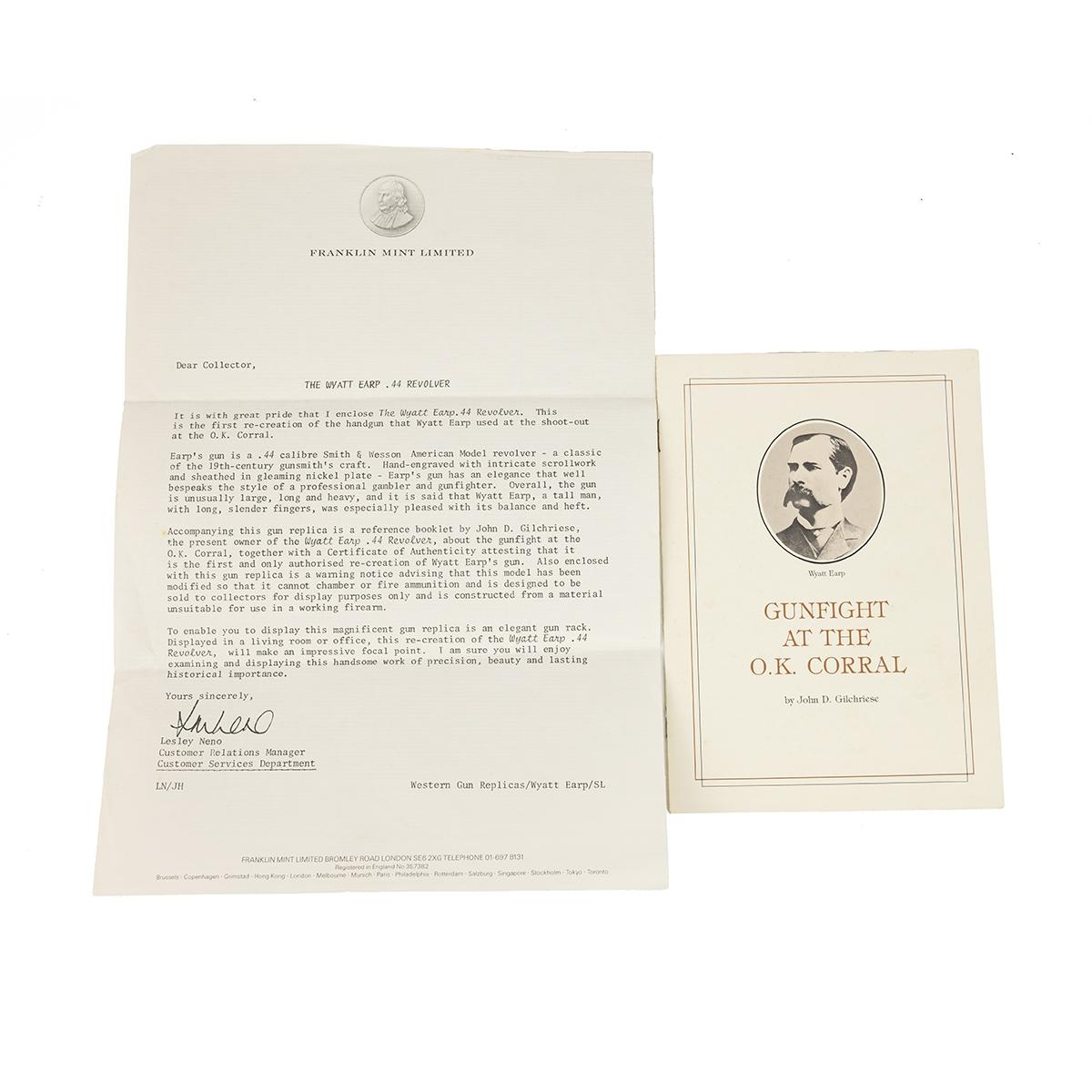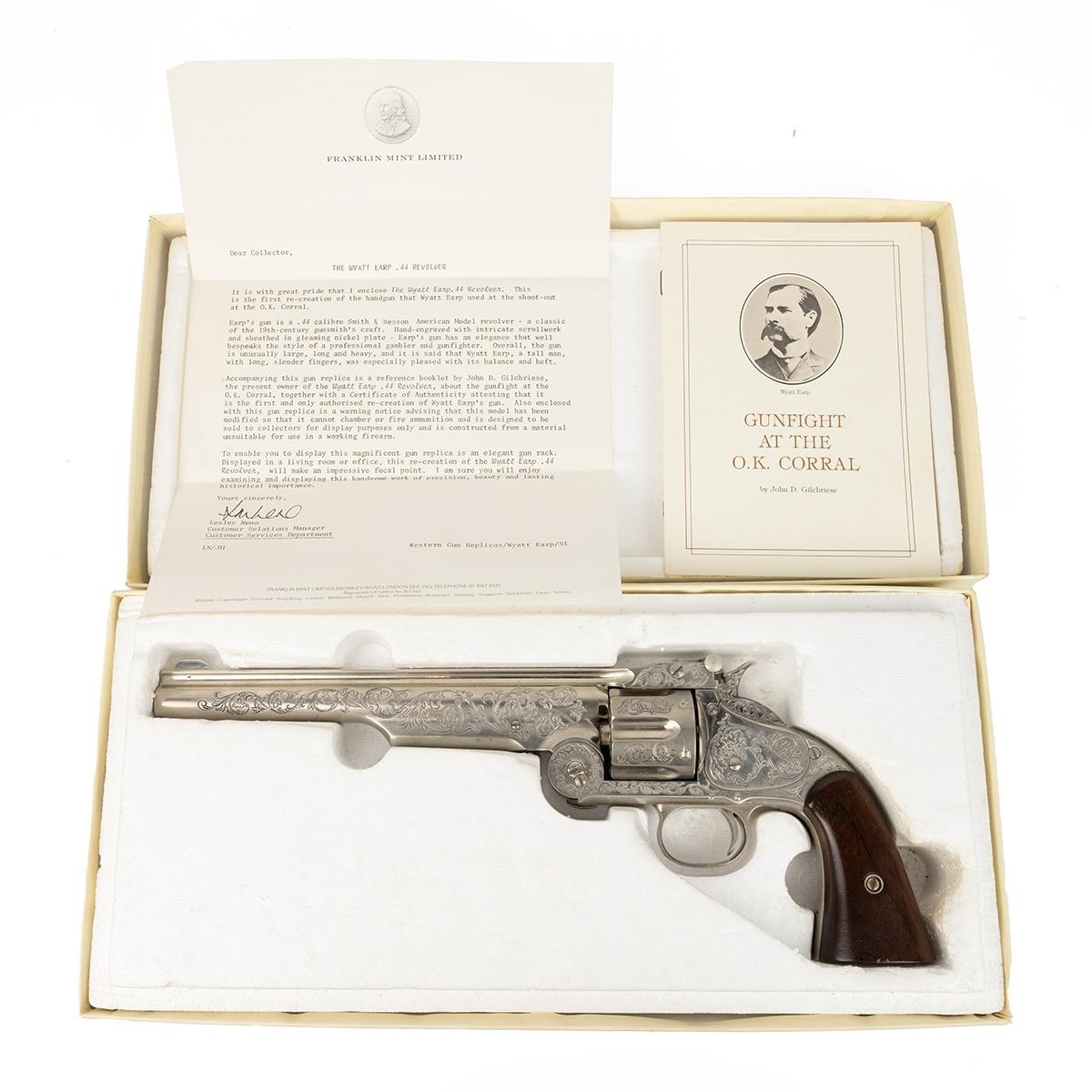Franklin Mint - 'The Wyatt Earp .44 Revolver' in presentation box with letter of authenticity and a booklet setting out the history of the Gun Fight at the OK Corral. Note: the revolver is not manufactured to be operative, it is a replica only.