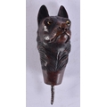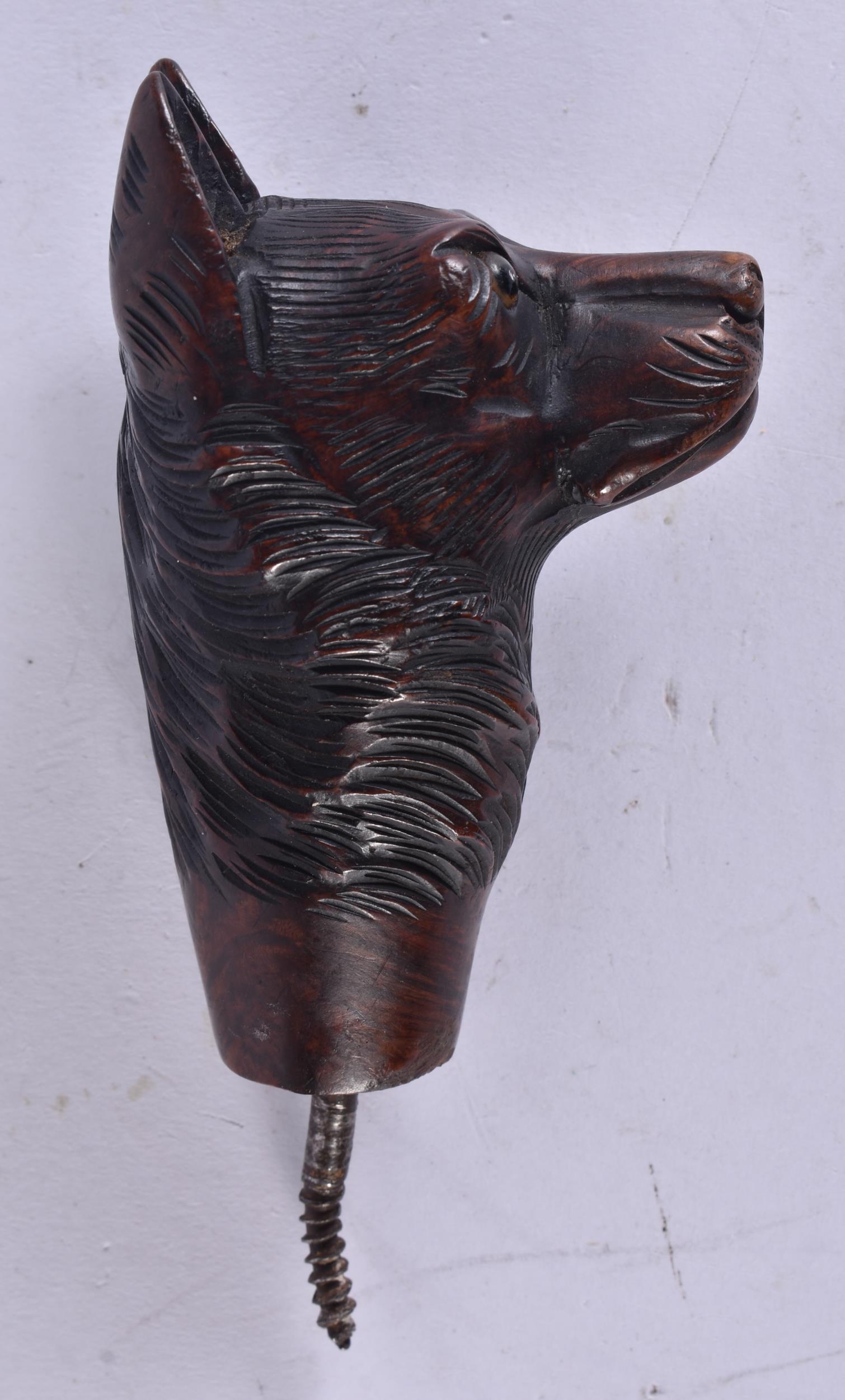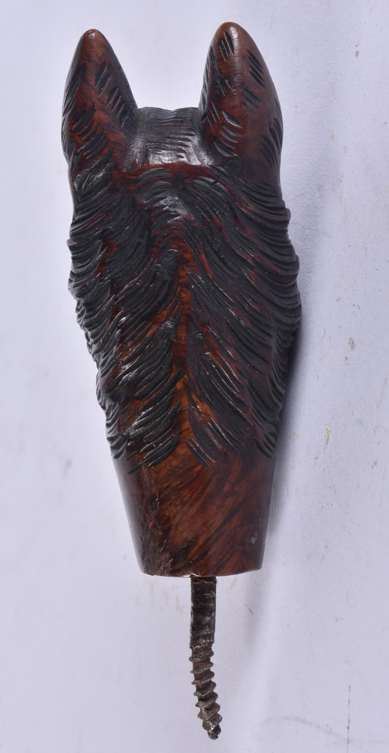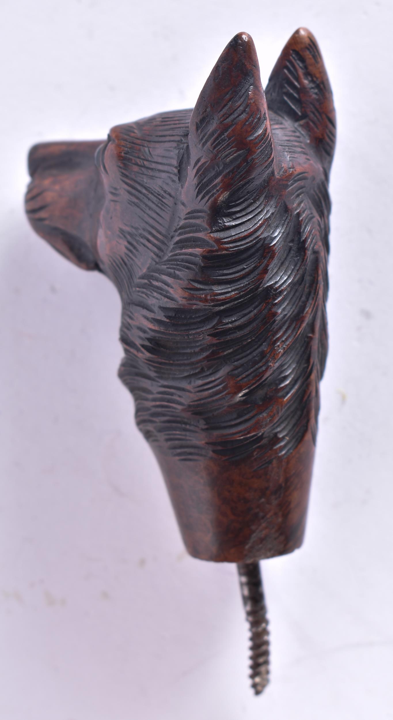 A 19TH CENTURY BAVARIAN BLACK FOREST CARVED WOOD DOG CANE HANDLE. 9 cm long excluding screw.