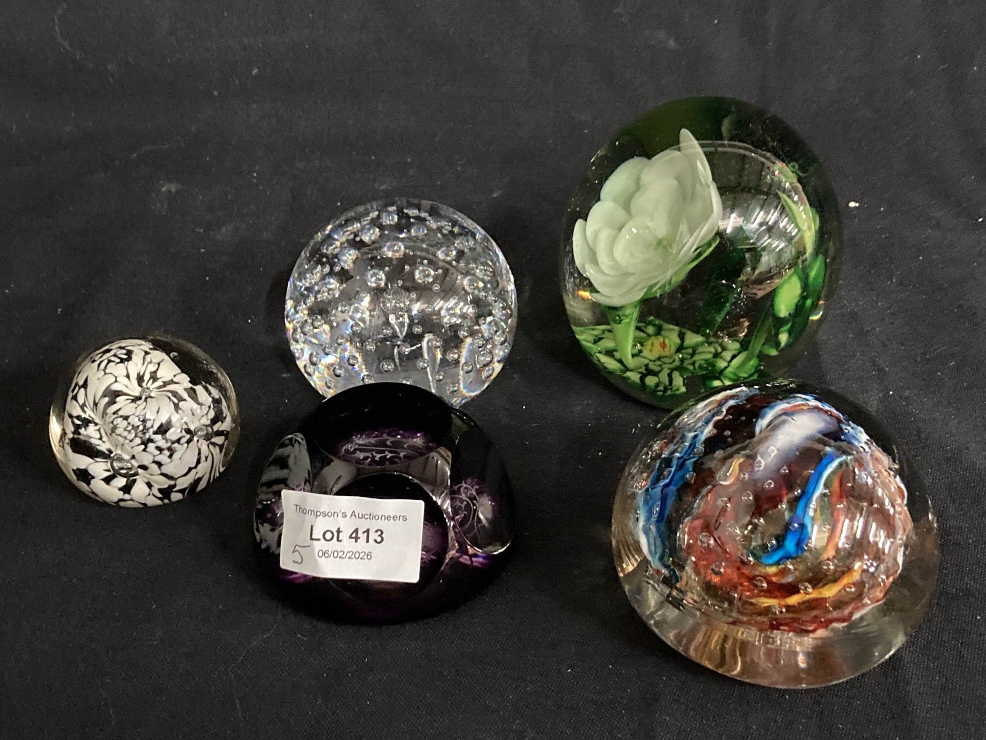 Collection of 5 vintage glass paperweights