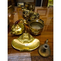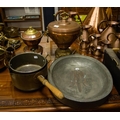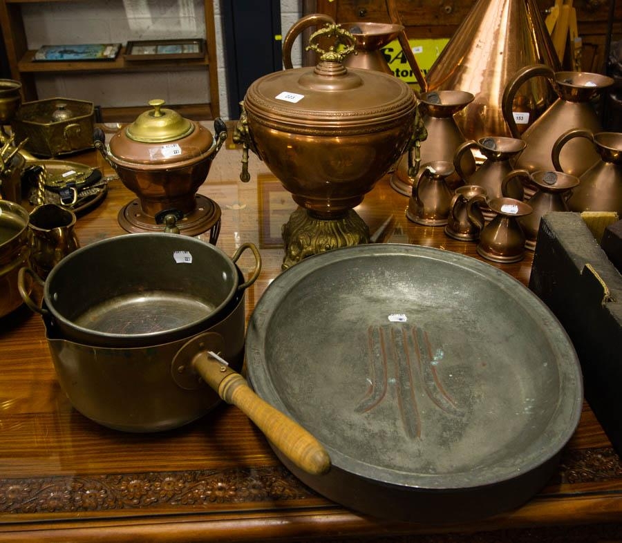 COPPER SAMOVAR, SAUCEPANS + OVAL PLATE