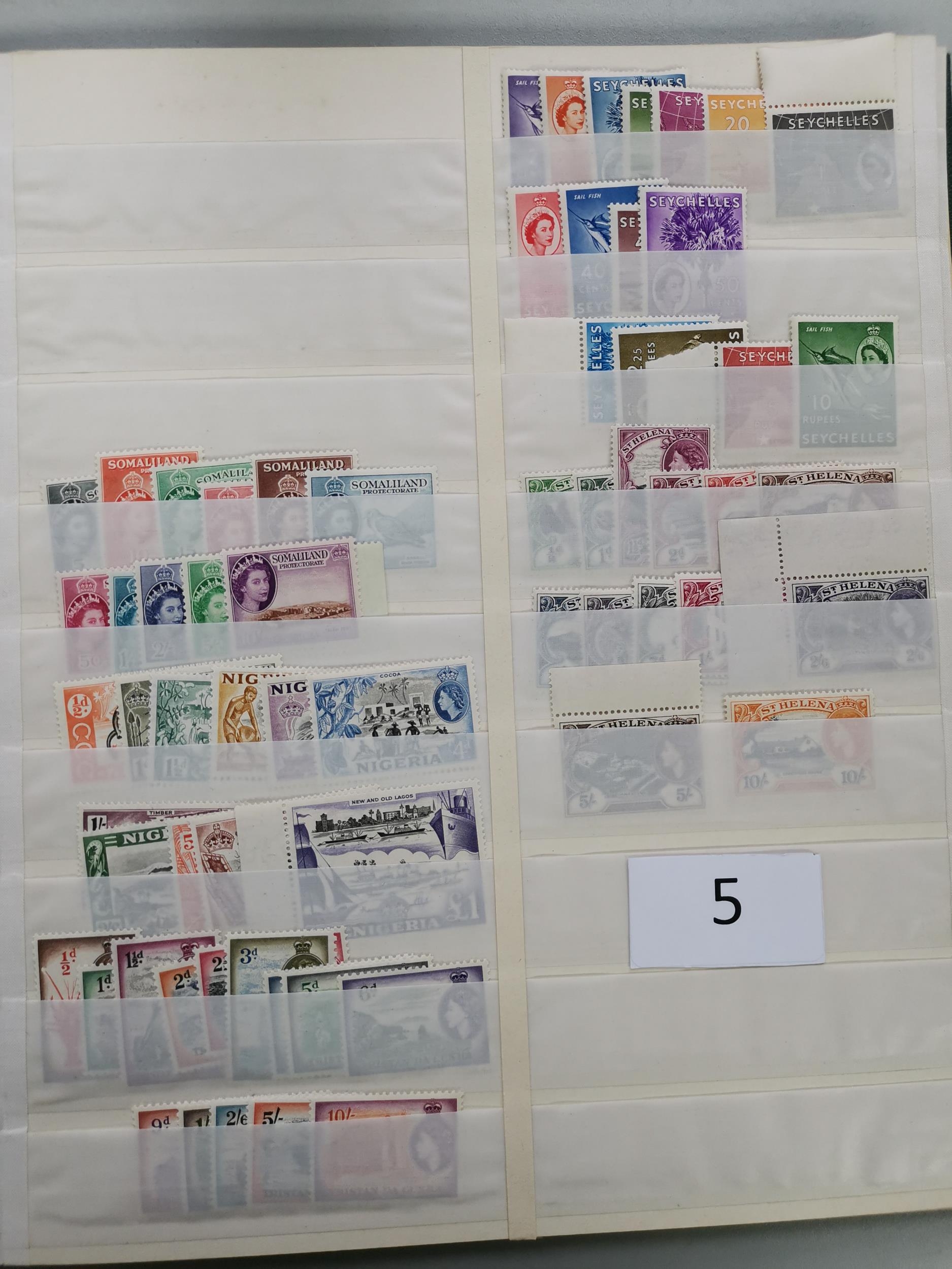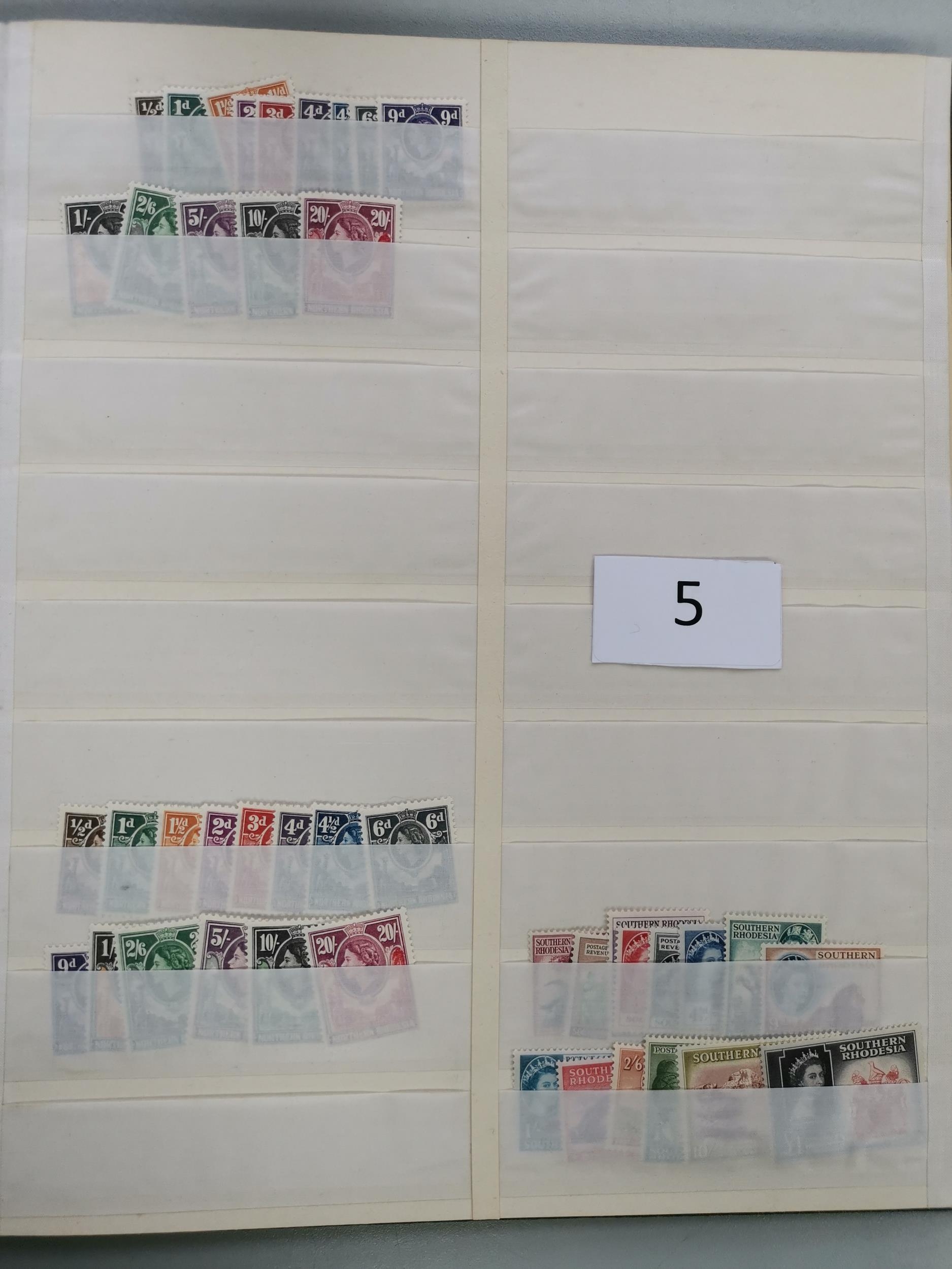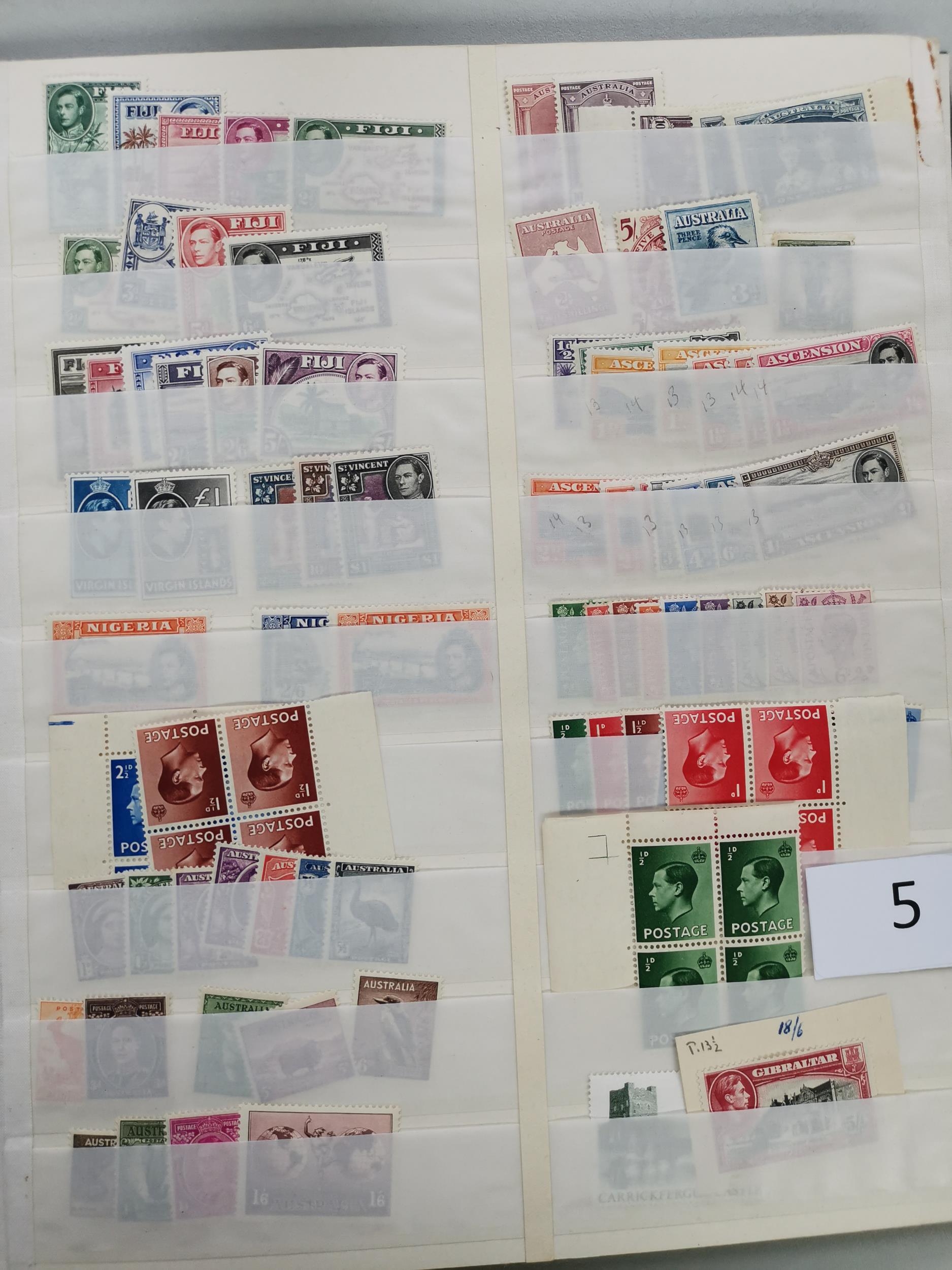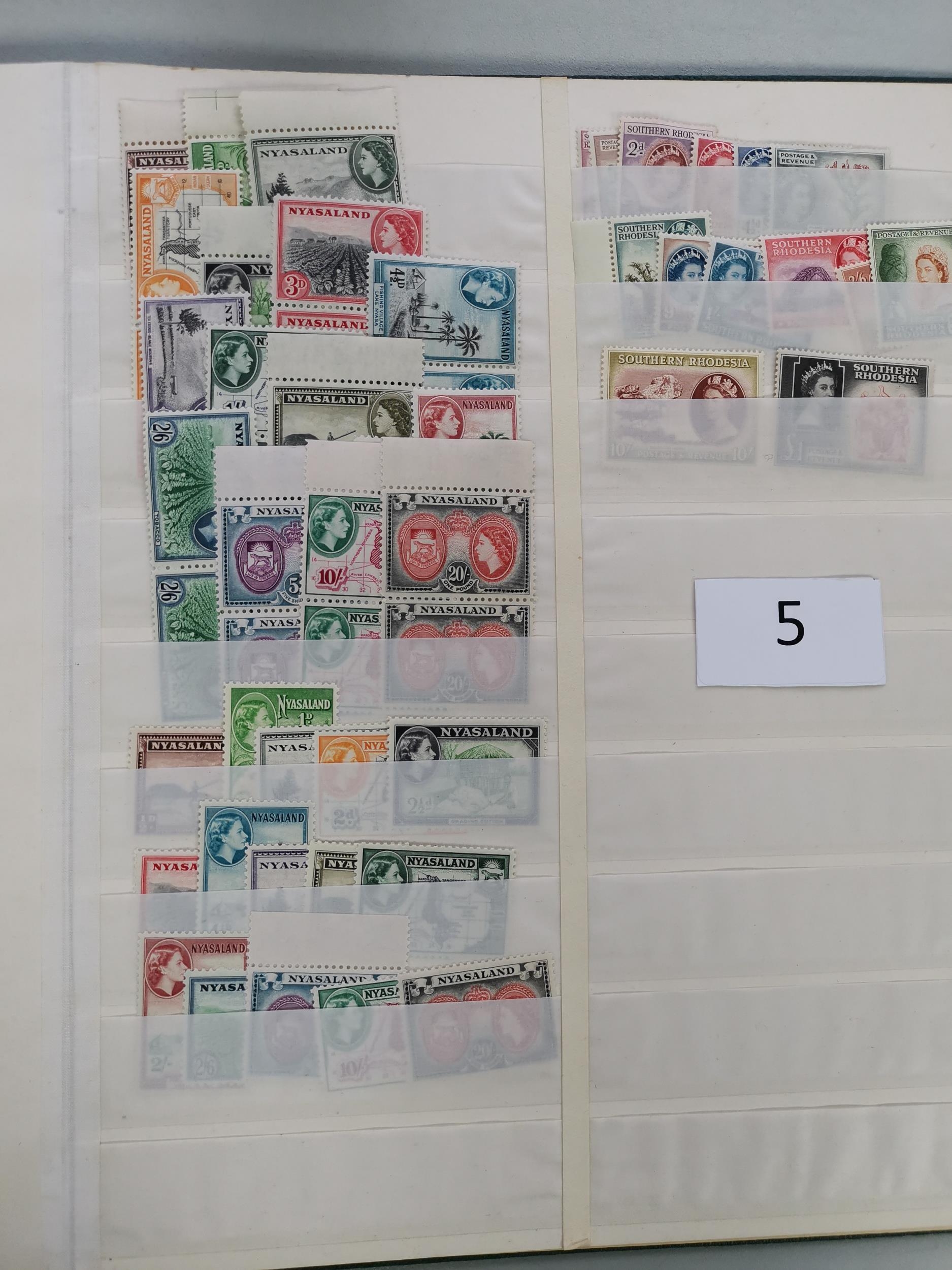 MIXED WORLD. Collection of KGVI and early QE defins in stockbook M and mainly unmounted incl. KUT to 10/- (2) and £1 (first perf) M Falkland Is. 1938-50 to £1 M early QE incl. N. Rhodesia 1953 x 2 S. Rhodesia 1953 x 2 Nyasaland 1953 x 2 Australia Robes both papers of 10/- and £1 and many others. (100's)