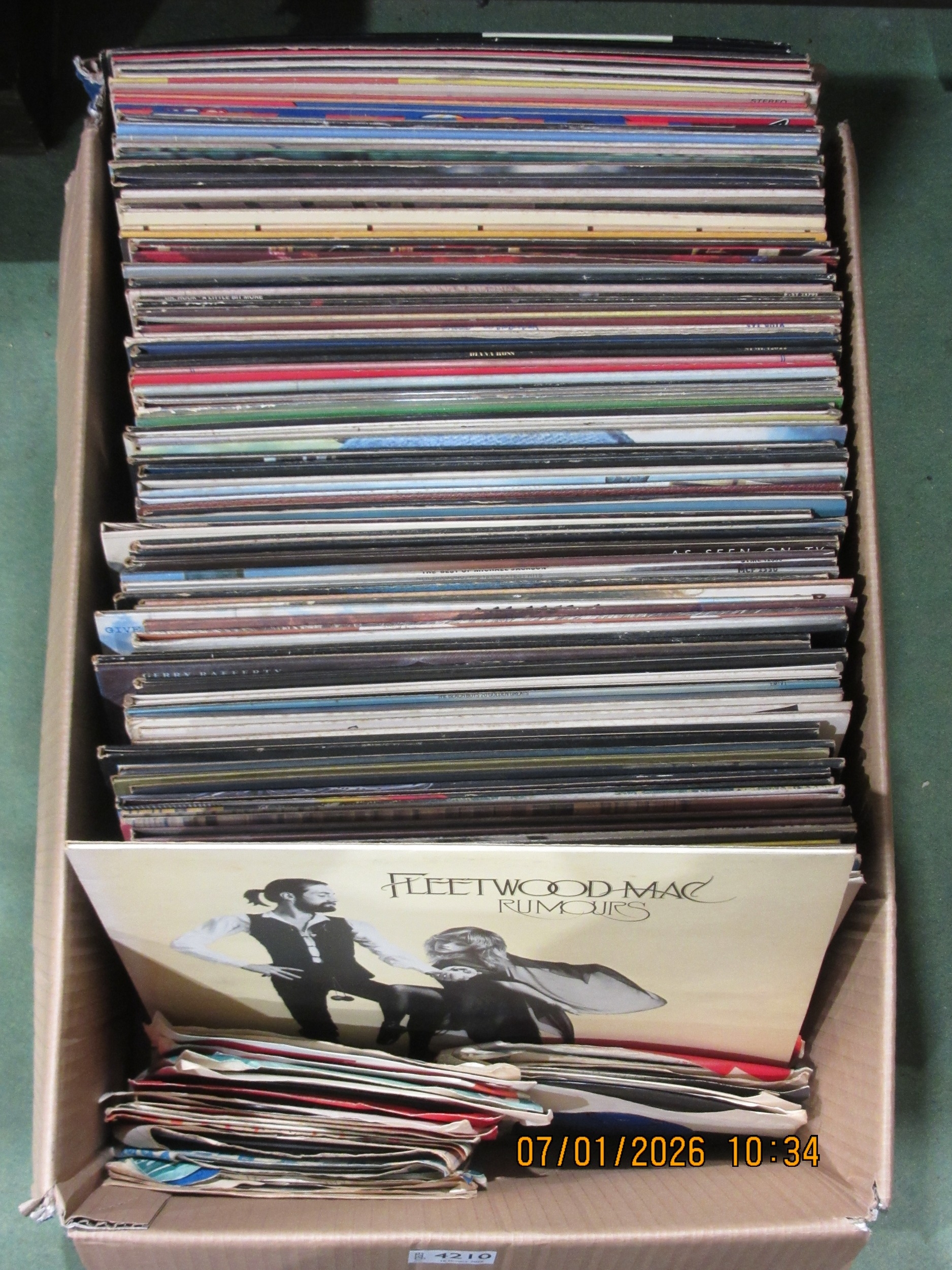 A collection of approximately eighty vinyl LP records including Fleetwood Mac, Queen, ELO, ELP, 10CC, Eagles, Gerry Rafferty, John Lennon, Bob Dylan, Eric Clapton, Donovan, Cat Stevens, Elton John, etc. Together with a smaller number of 7" singles