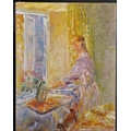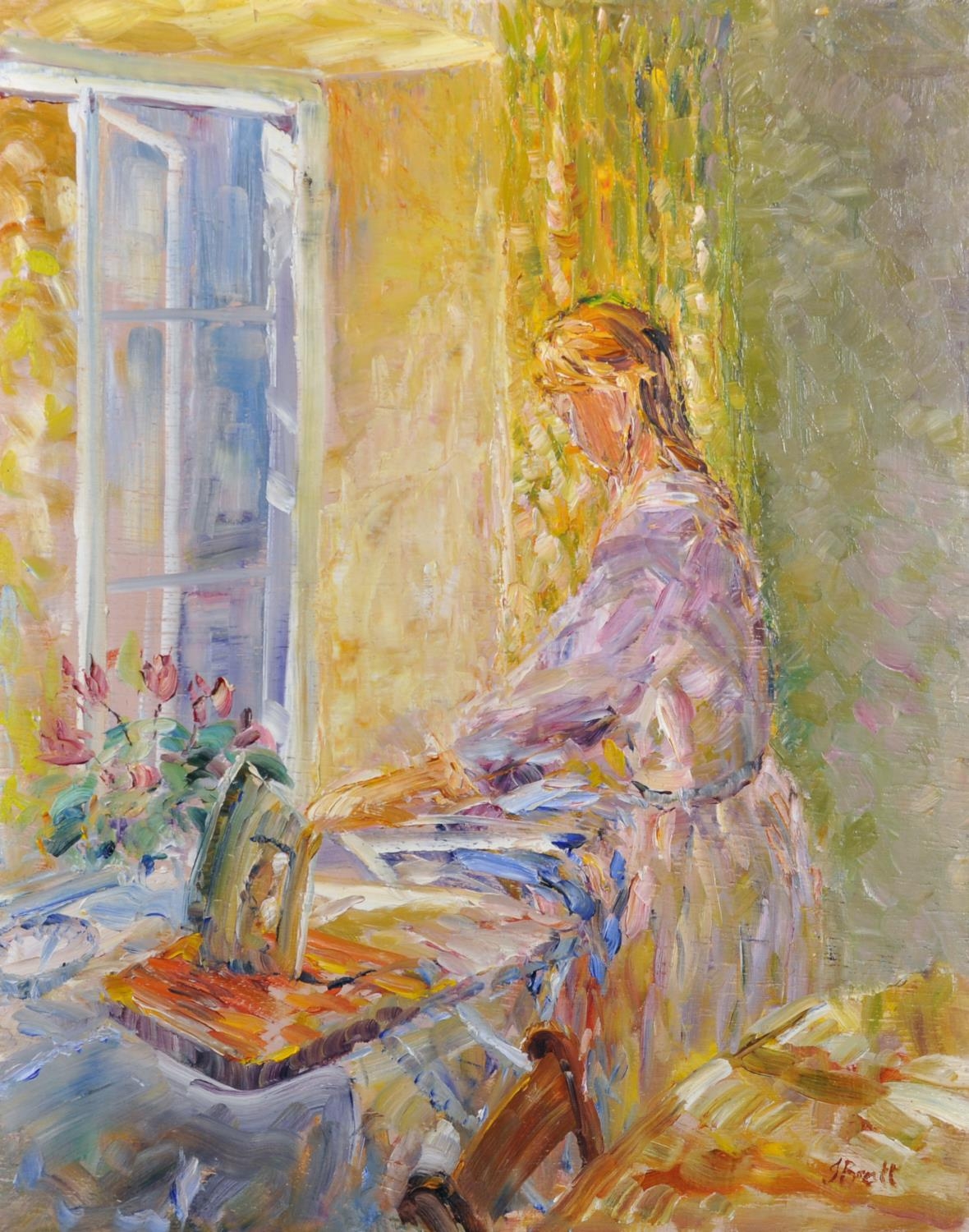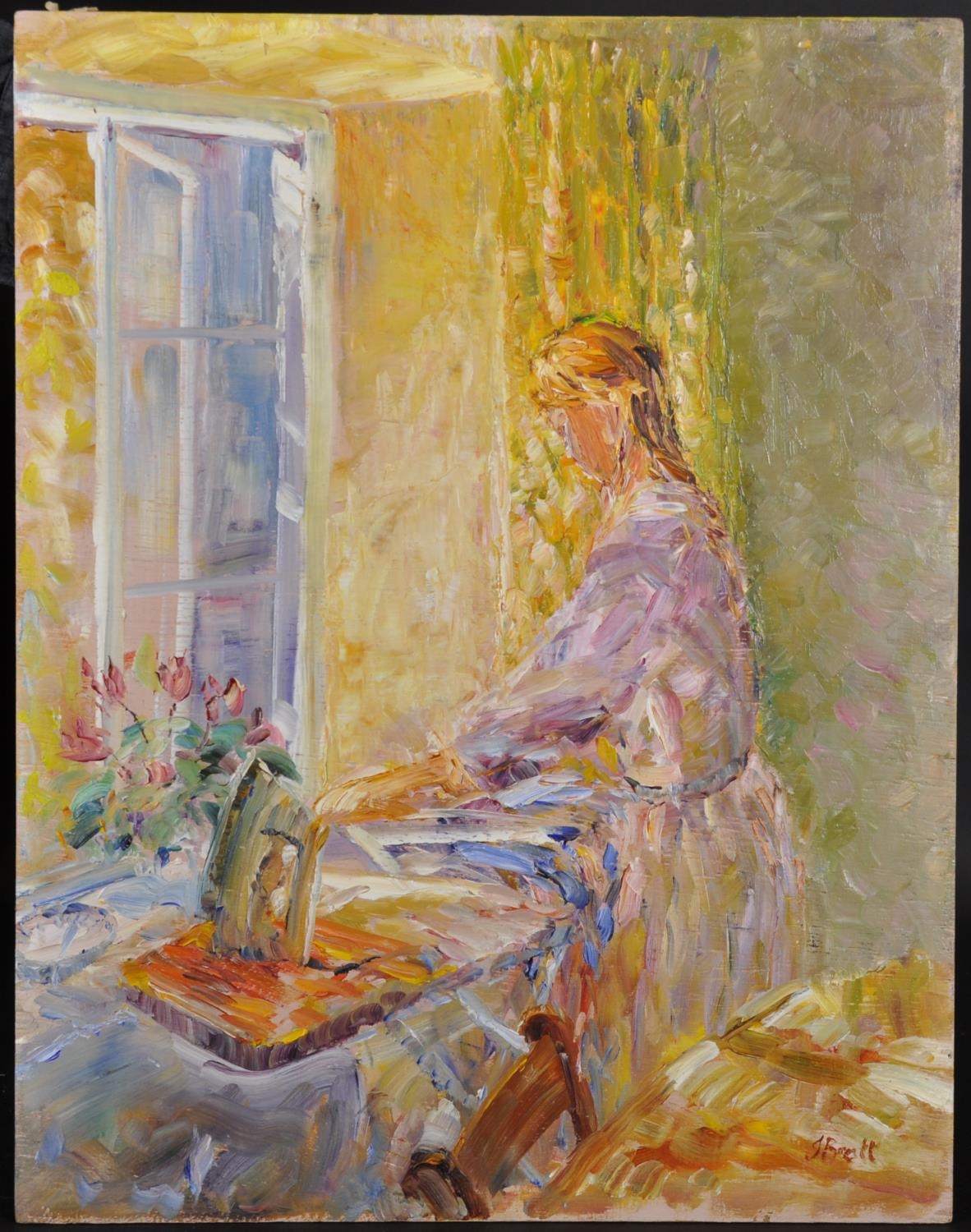 Jeffrey Pratt (1940- ) British. A Lady Ironing, Oil on Panel, Signed, Unframed, 18” x 14” (45.7 x 35.5cm)