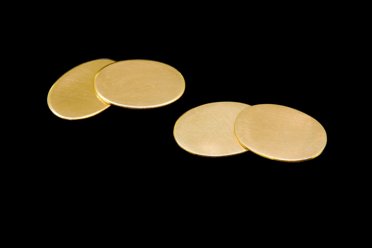 PAIR OF 18-CT GOLD OVAL CUFFLINKS. L. shield 1.9 cm. 9.5 grams.