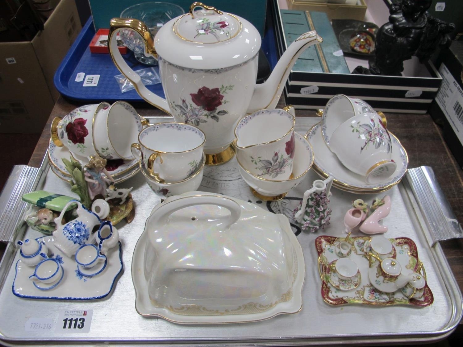 R. Stafford 'Roses to Remember' Coffee Service, of fifteen pieces, dolls tea sets, etc:- One Tray