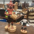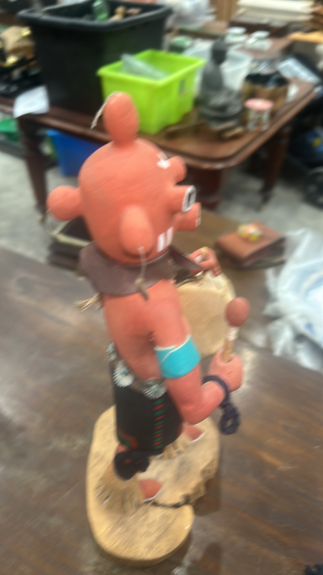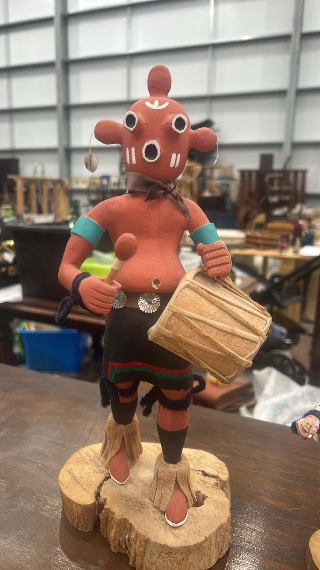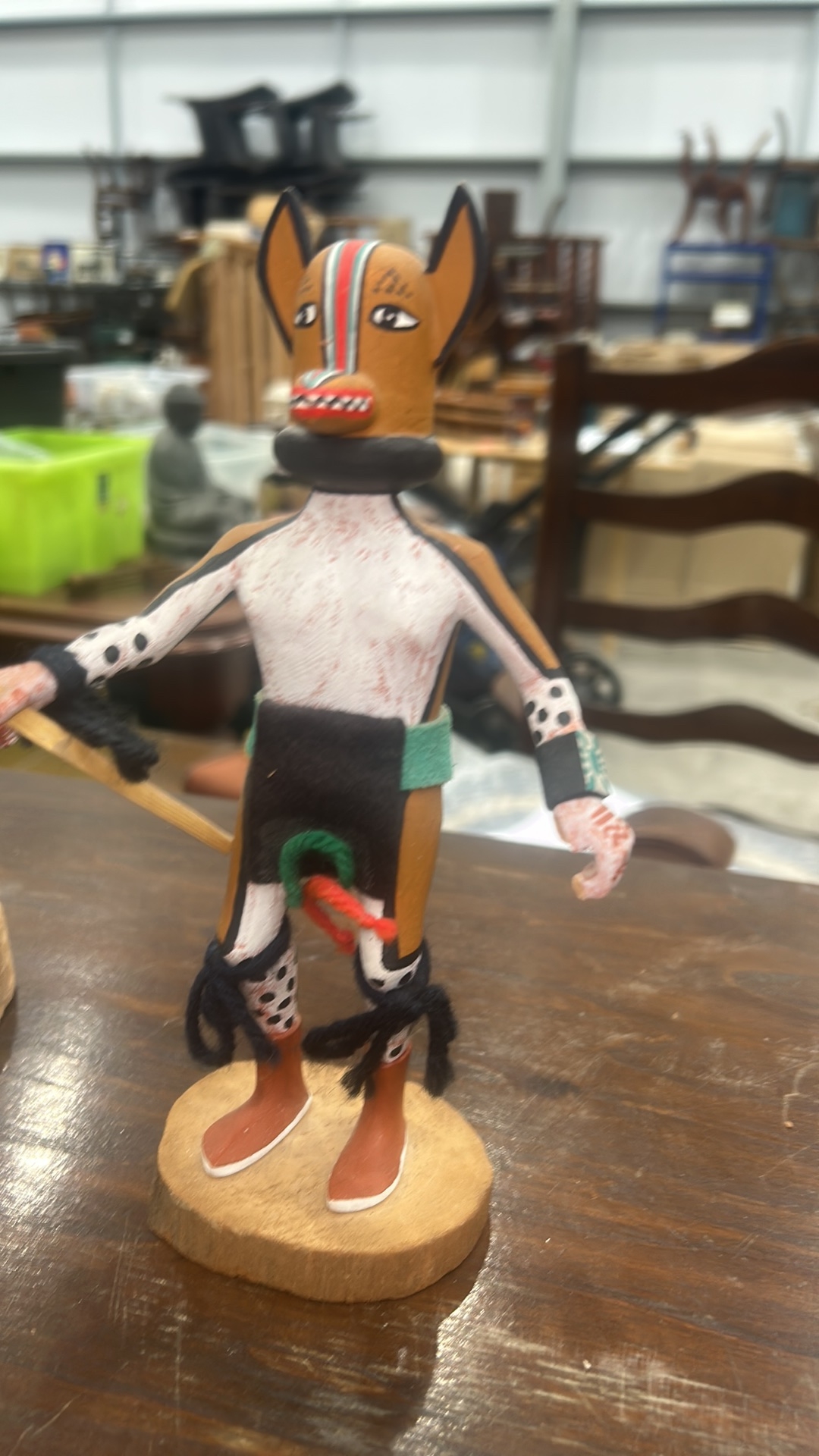 Pair of Hopi carved cottonwood kachina figures, polychrome painted and appliqued, each on natural wood bases; one inscribed beneath “Kona (Chipmunk) Kachina – Joe Gash.”
