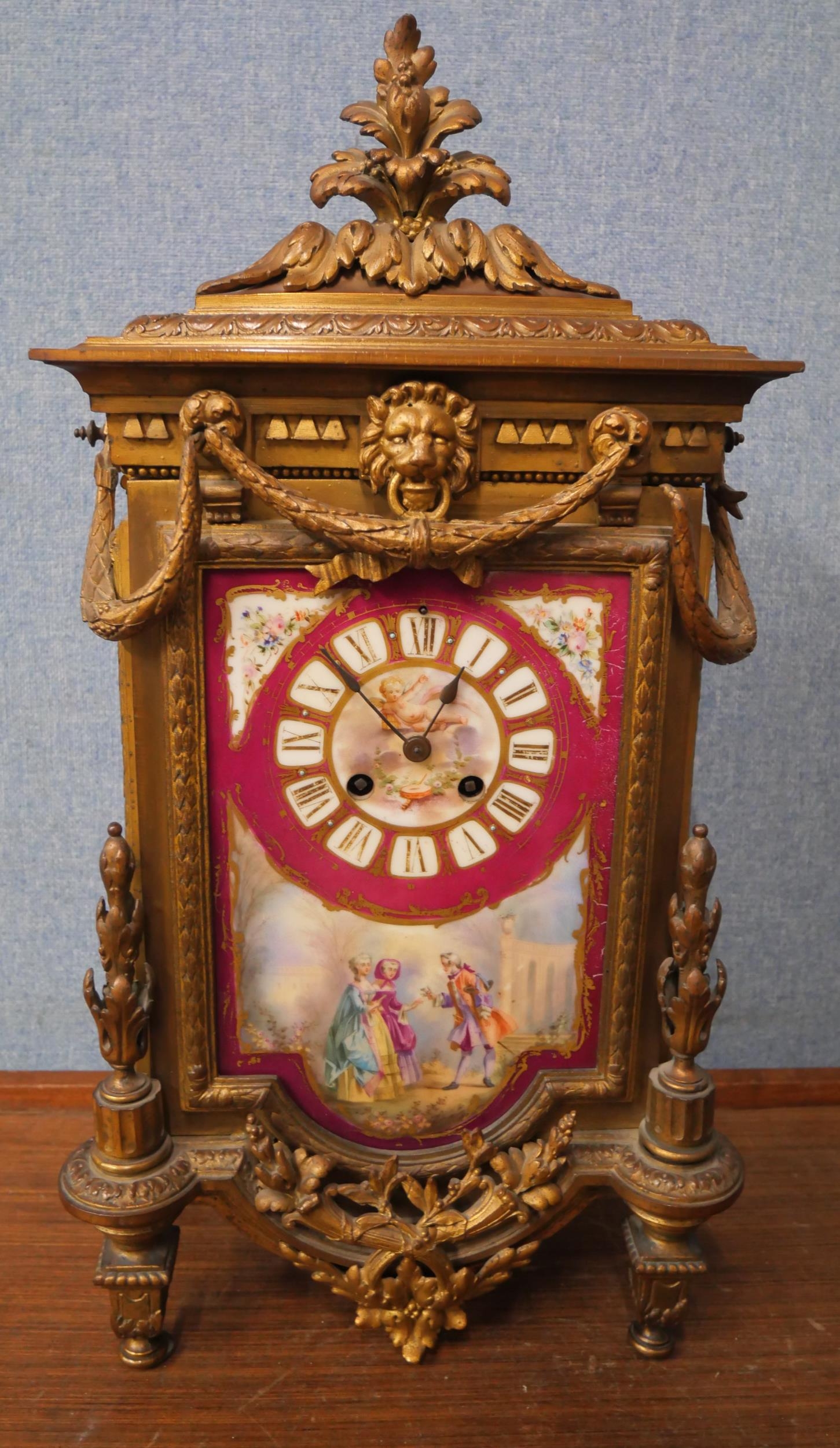 A 19th Century French gilt metal and Sevres style porcelain mantel clock