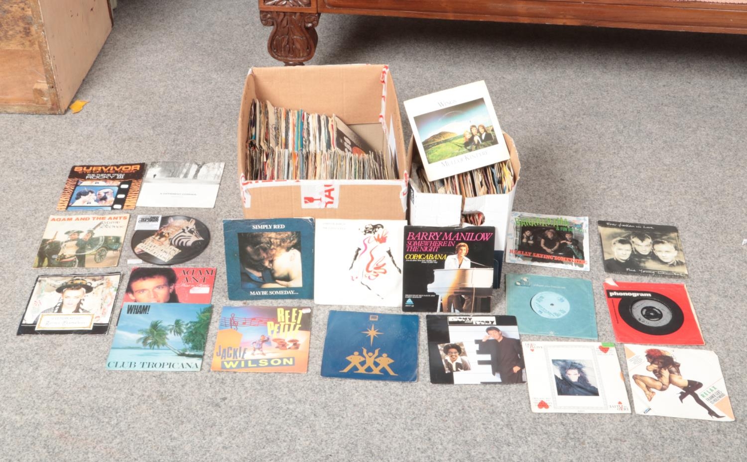 Two boxes of 1950, 1960s and 1980's Rock and Pop vinyl singles to include, Little Richard, The Shadows, Barry White, Simply Red & George Michael etc.