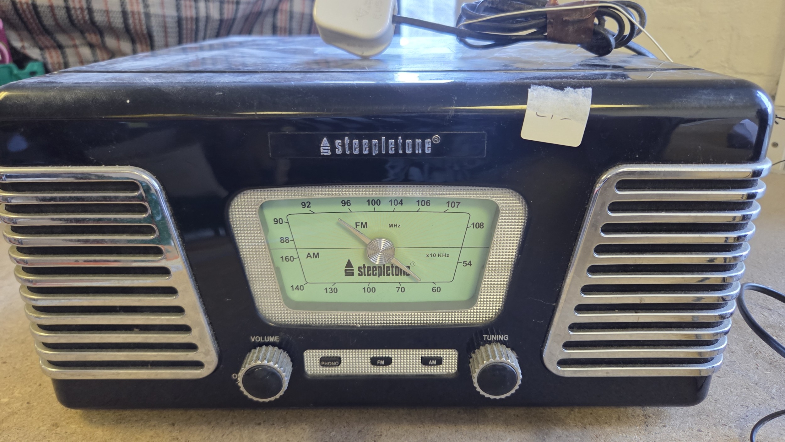 Steepletone Retro-Style Combined AM/FM Radio and Three-Speed Turntable