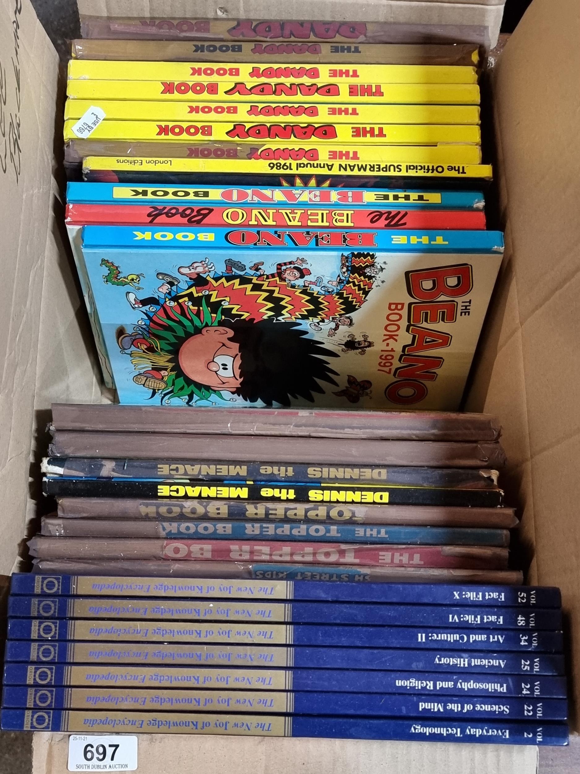 Good size box of annuals inc The beano, The dandy and The topper mostly from the 1980s.