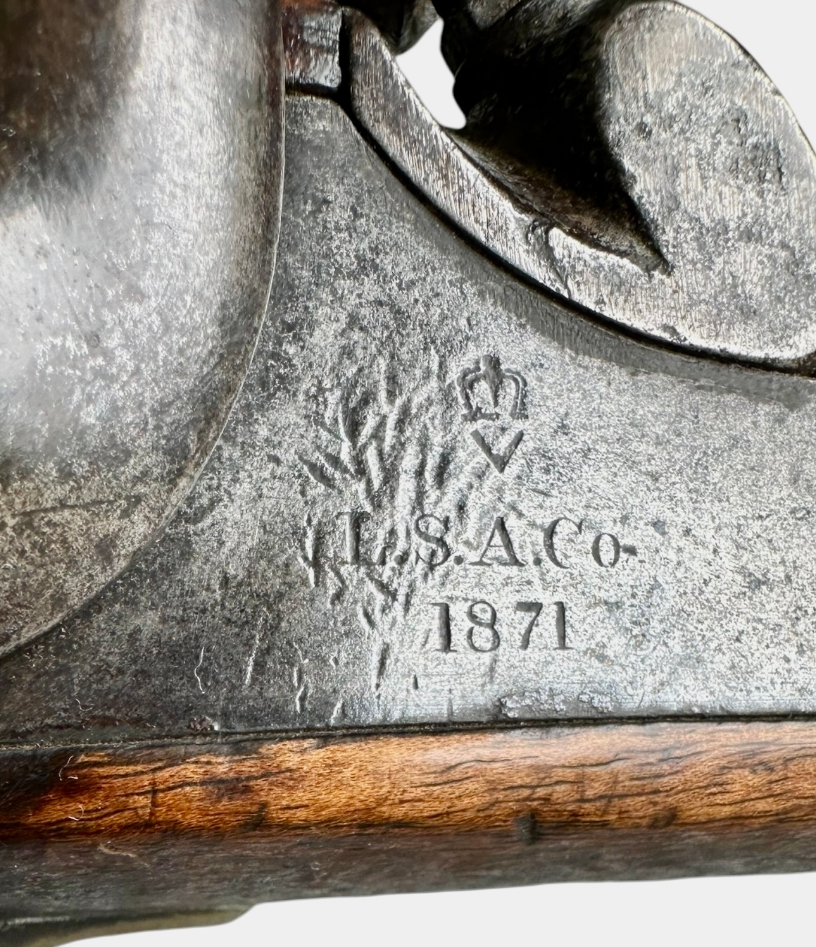 A Victorian Percussion Cap Pistol LSA Co (London Small Arms) Lock 1871 Swivel Ram Rod Size 39cm x 10cm x 4.5cm