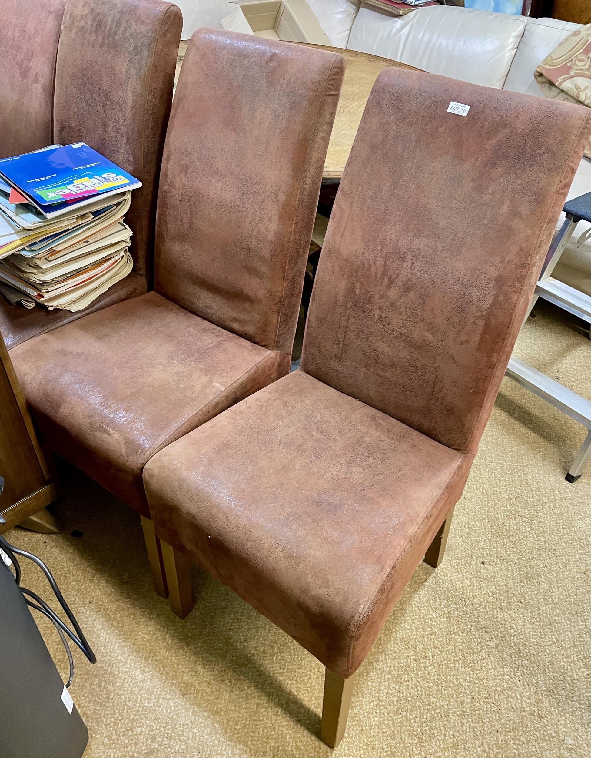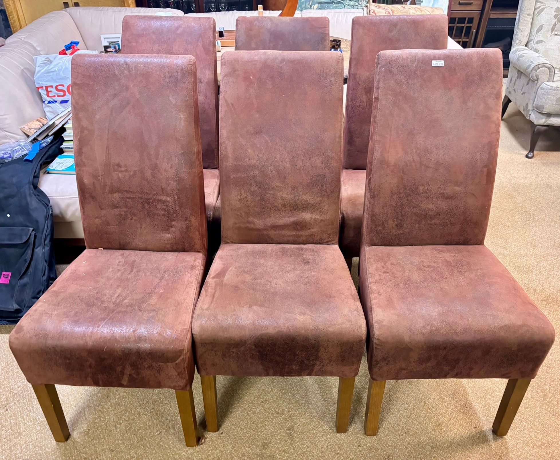 SET OF X6 FAUX LEATHER HIGH BACK DINING CHAIRS - EACH APPROX 48CM HIGH TO SEAT, 105CM TO BACK