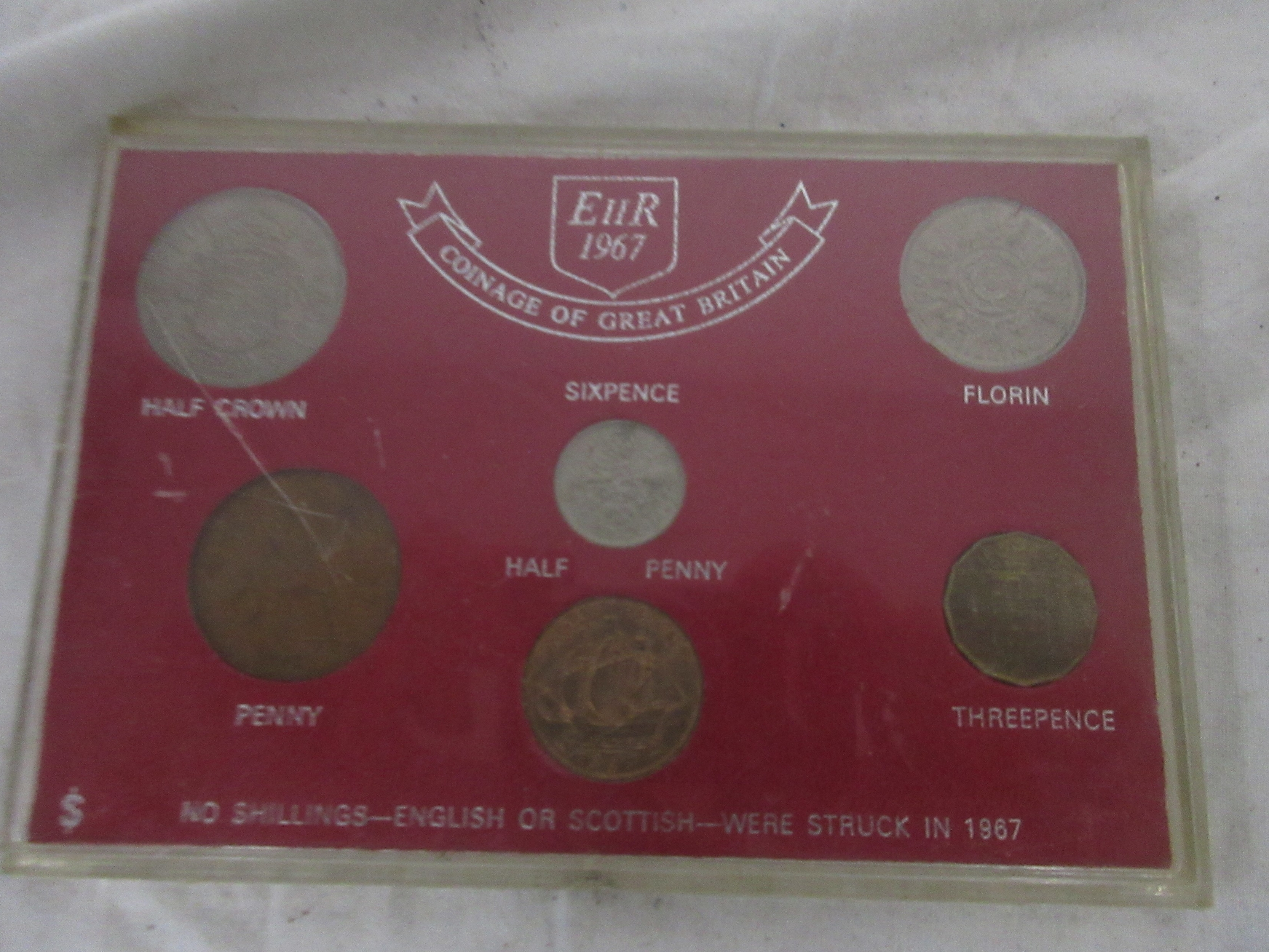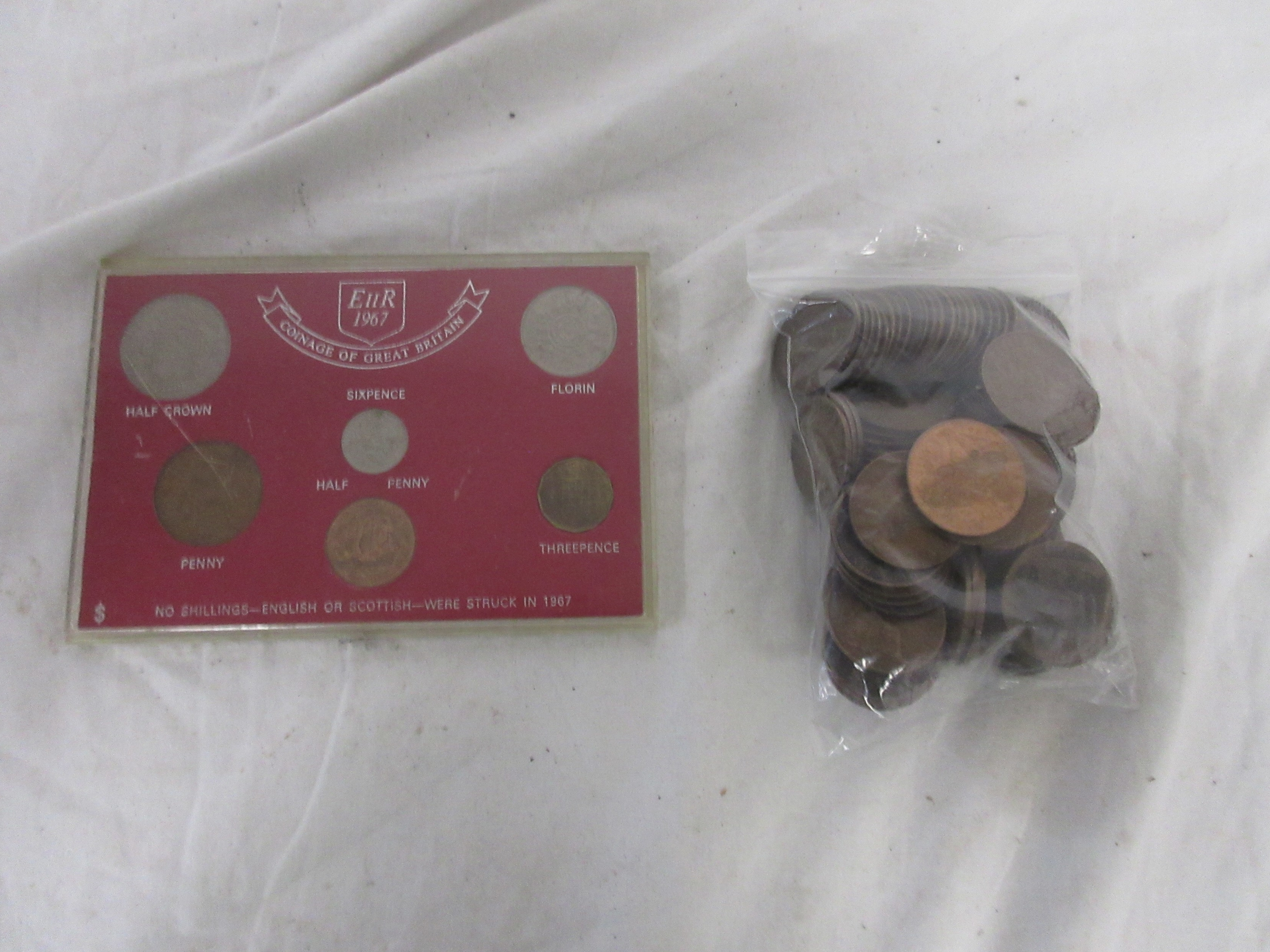 A cased Great Britain 1967 coinage set, and a bag of approx. one hundred and eleven pre-decimal pennies of various reigns and grades