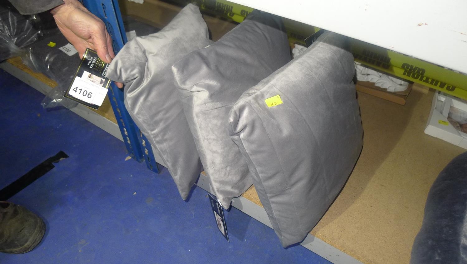 3 x grey velvet effect scatter cushions