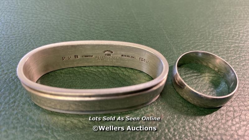 SILVER RING AND GEORGE JENSEN STERLING PYRAMID NAPKIN