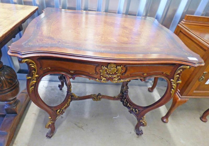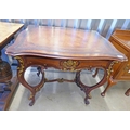 20TH CENTURY MAHOGANY TABLE WITH SHAPED TOP & SHAPED SUPPORTS, LENGTH 87CM