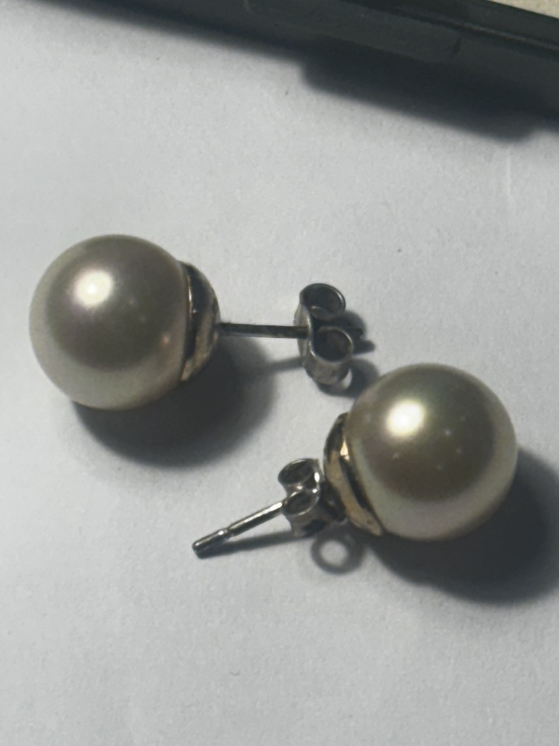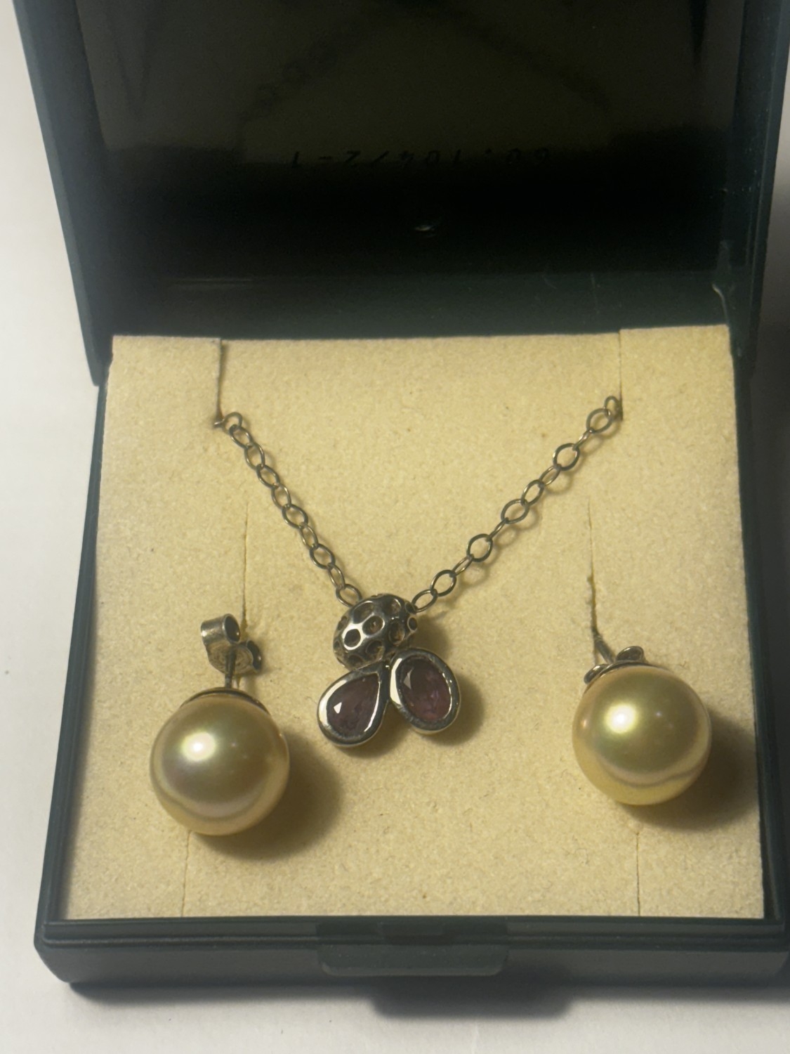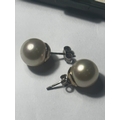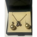 A MARKED SILVER NECKLACE WITH PENDANT AND A PAIR OF MARKED SILVER LARGE SOLITAIRE PEARL EARRINGS WITH A PRESENTATION BOX