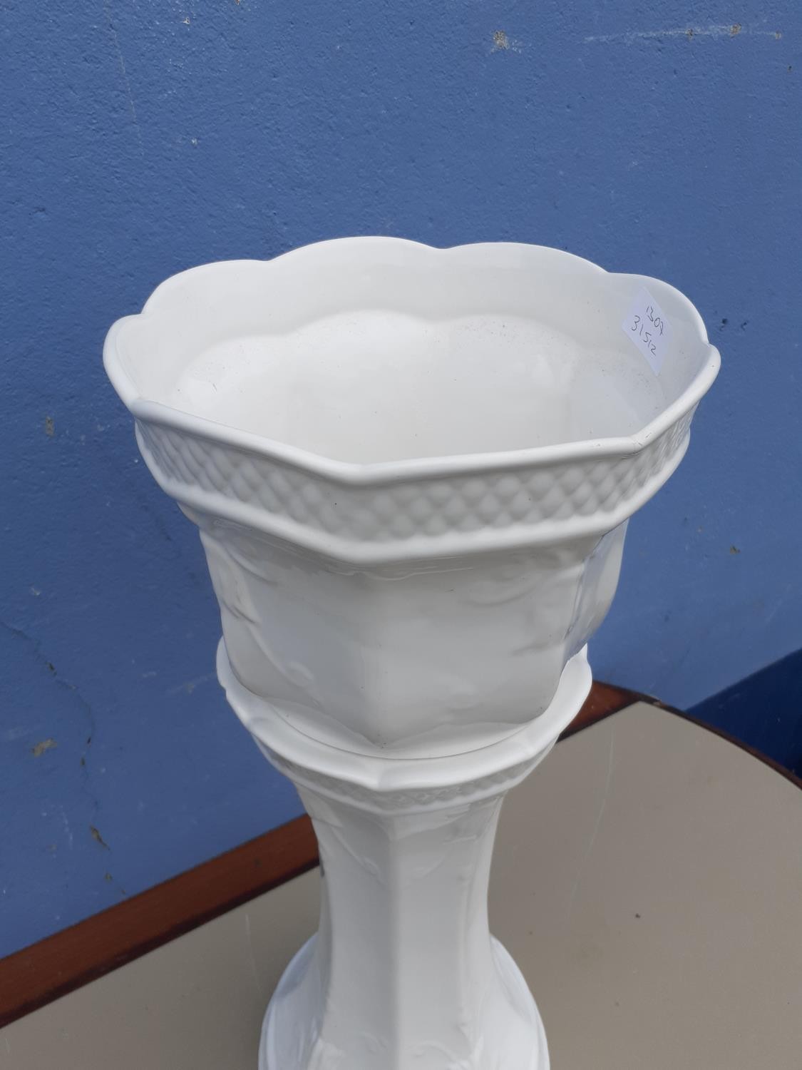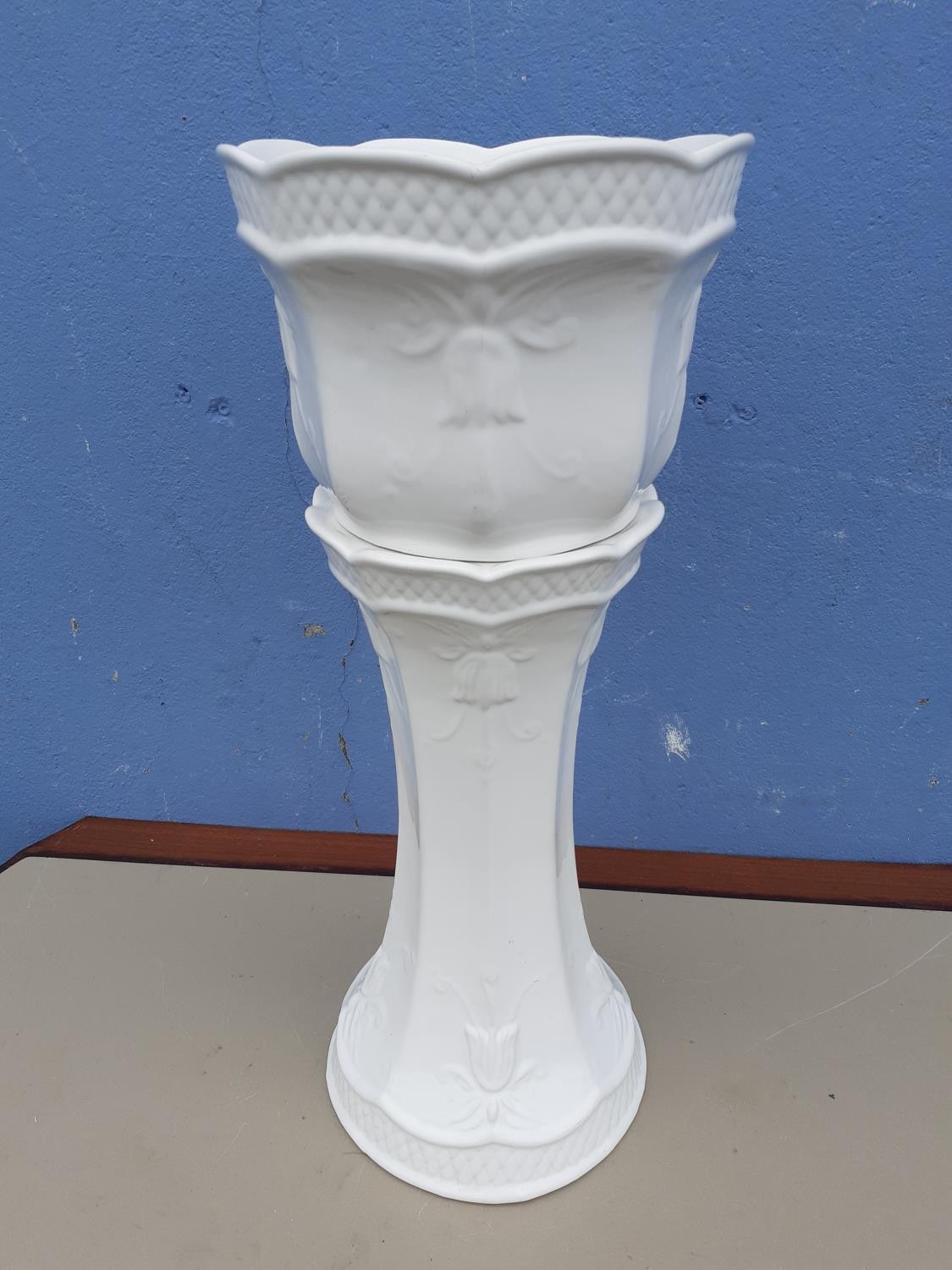 WHITE JARDINERE AND STAND