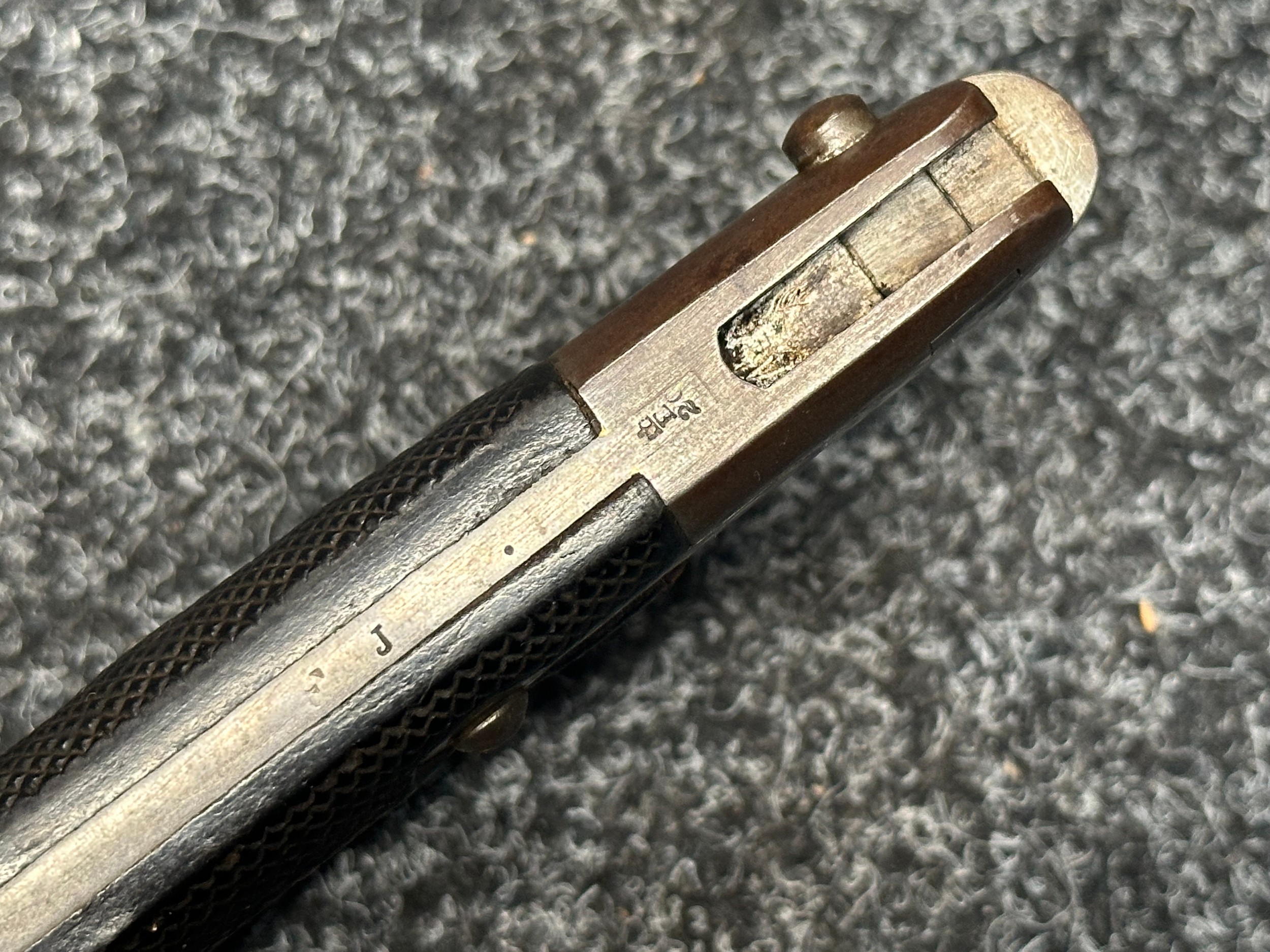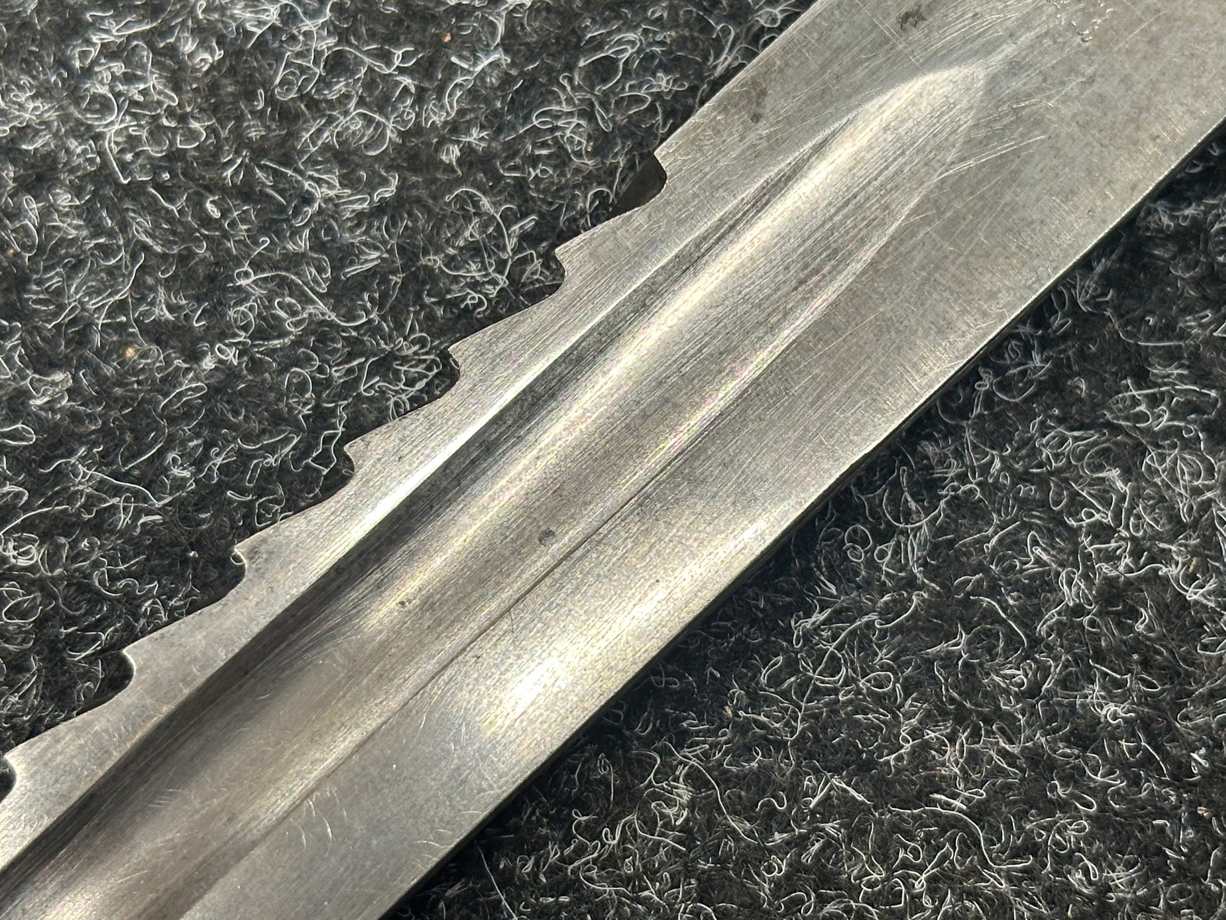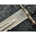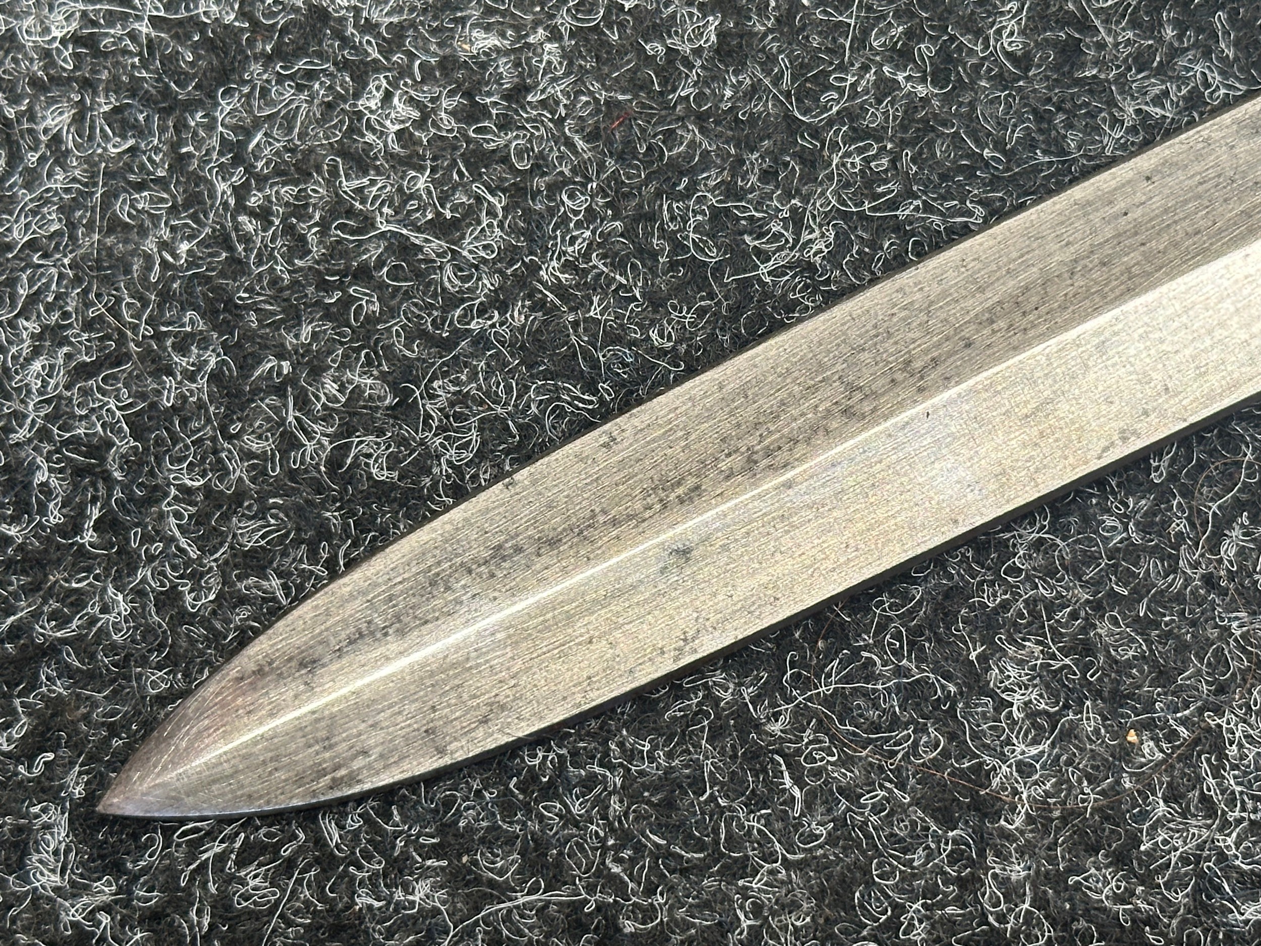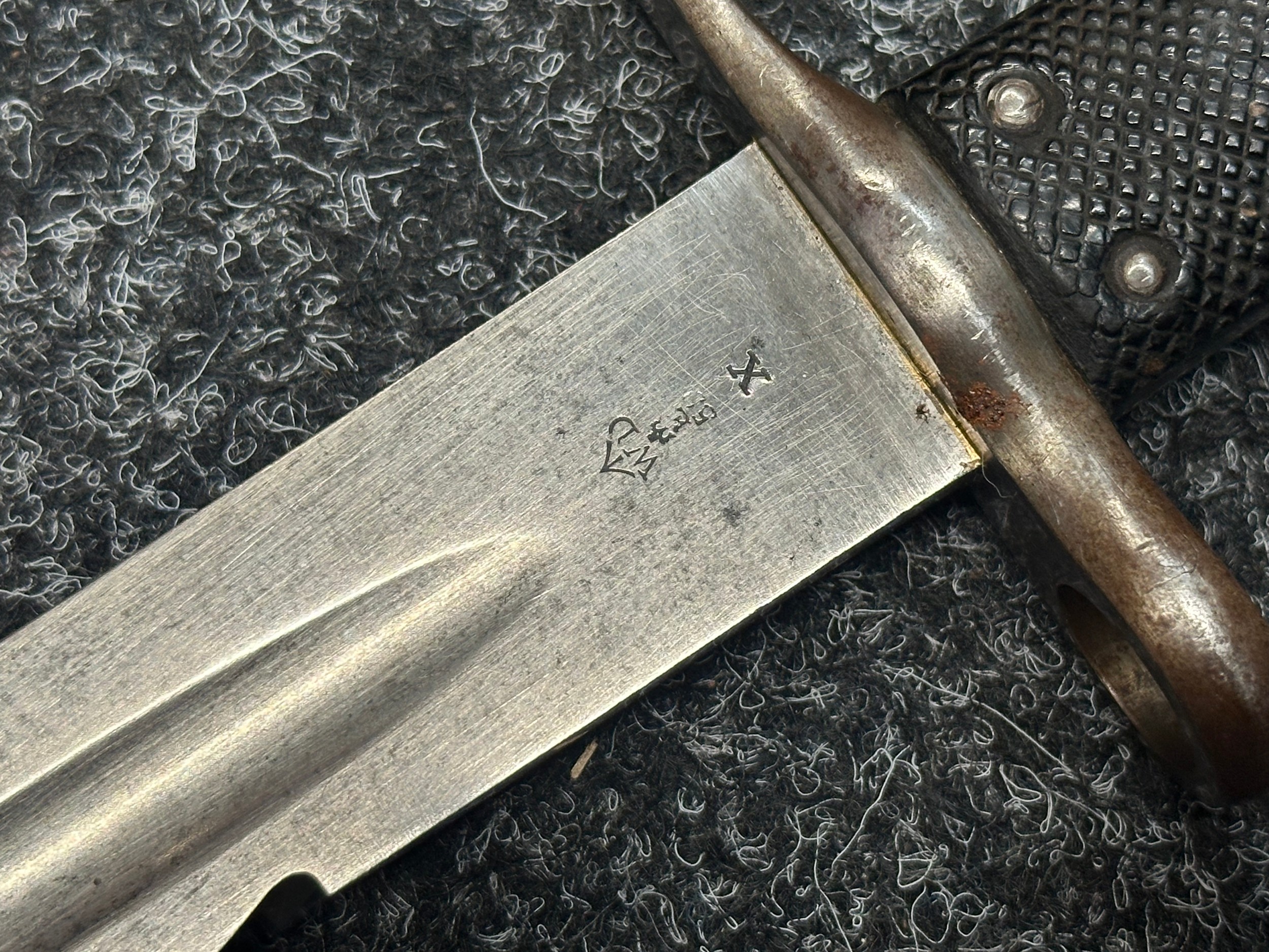 Victorian Martini Henry Artillery Sword Bayonet with fullered 653mm long blade. WD marked and dated 1900. Marked "WR" on spine of blade. Fibre grips with inspection marks. Working release catch. Overall length 795mm. No scabbard.