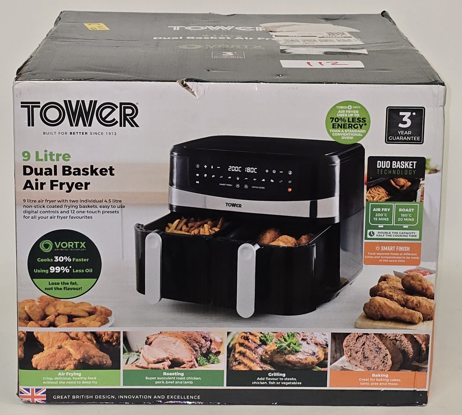 Tower 9 Litre Dual Basket Air Fryer boxed appears new (REF E112).