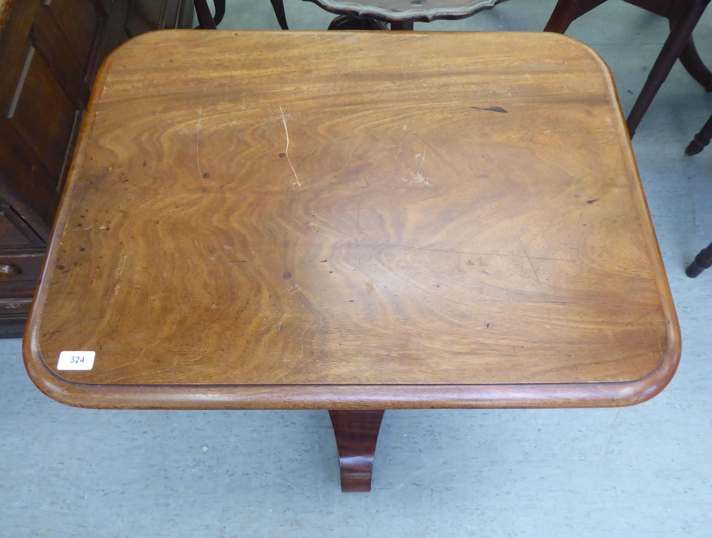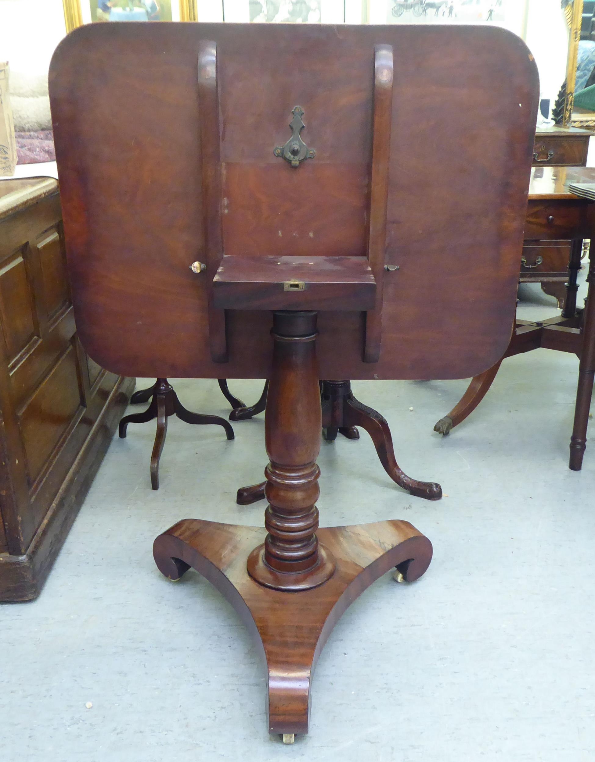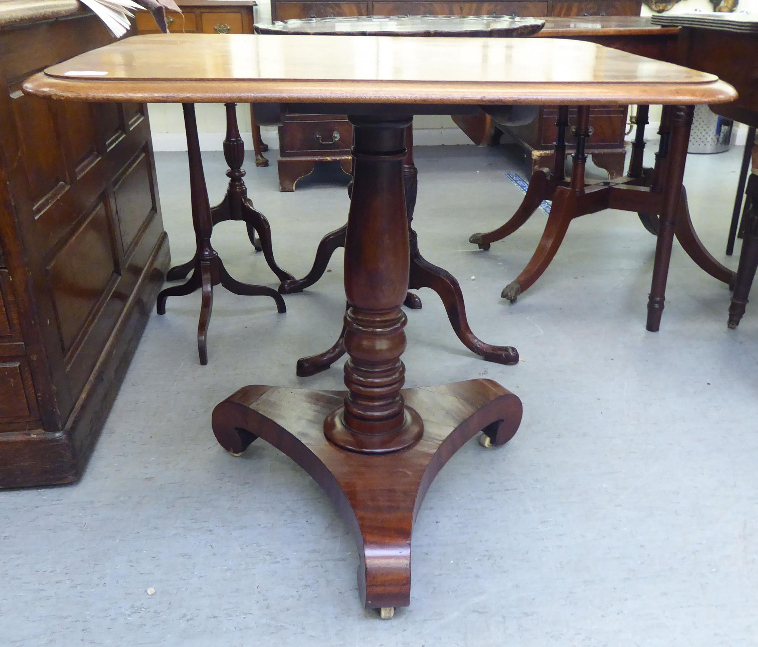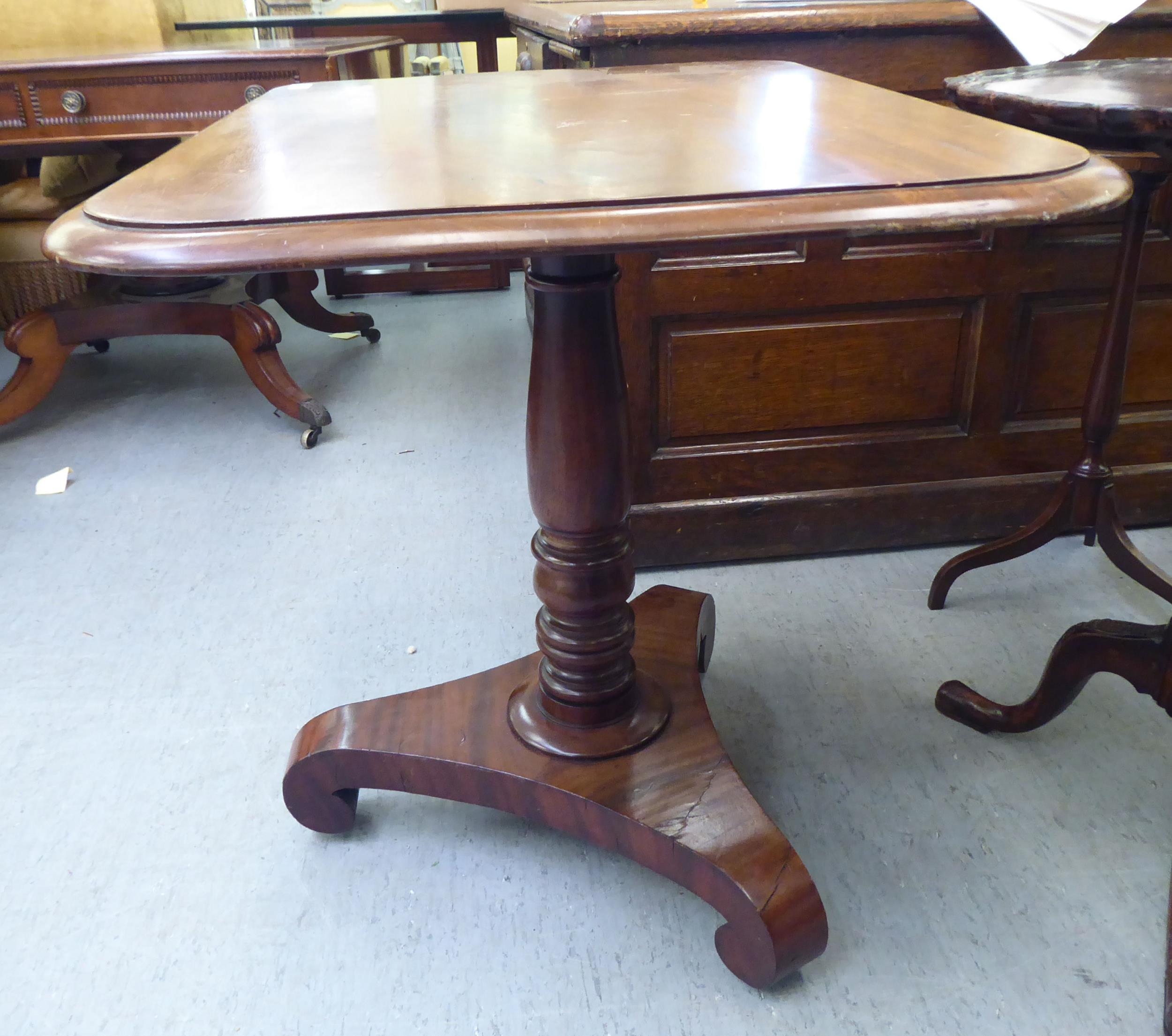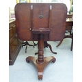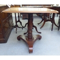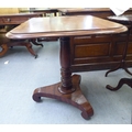A late 19thC mahogany pedestal table, raised on a turned column and triform plinth 28"h 30"w