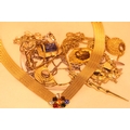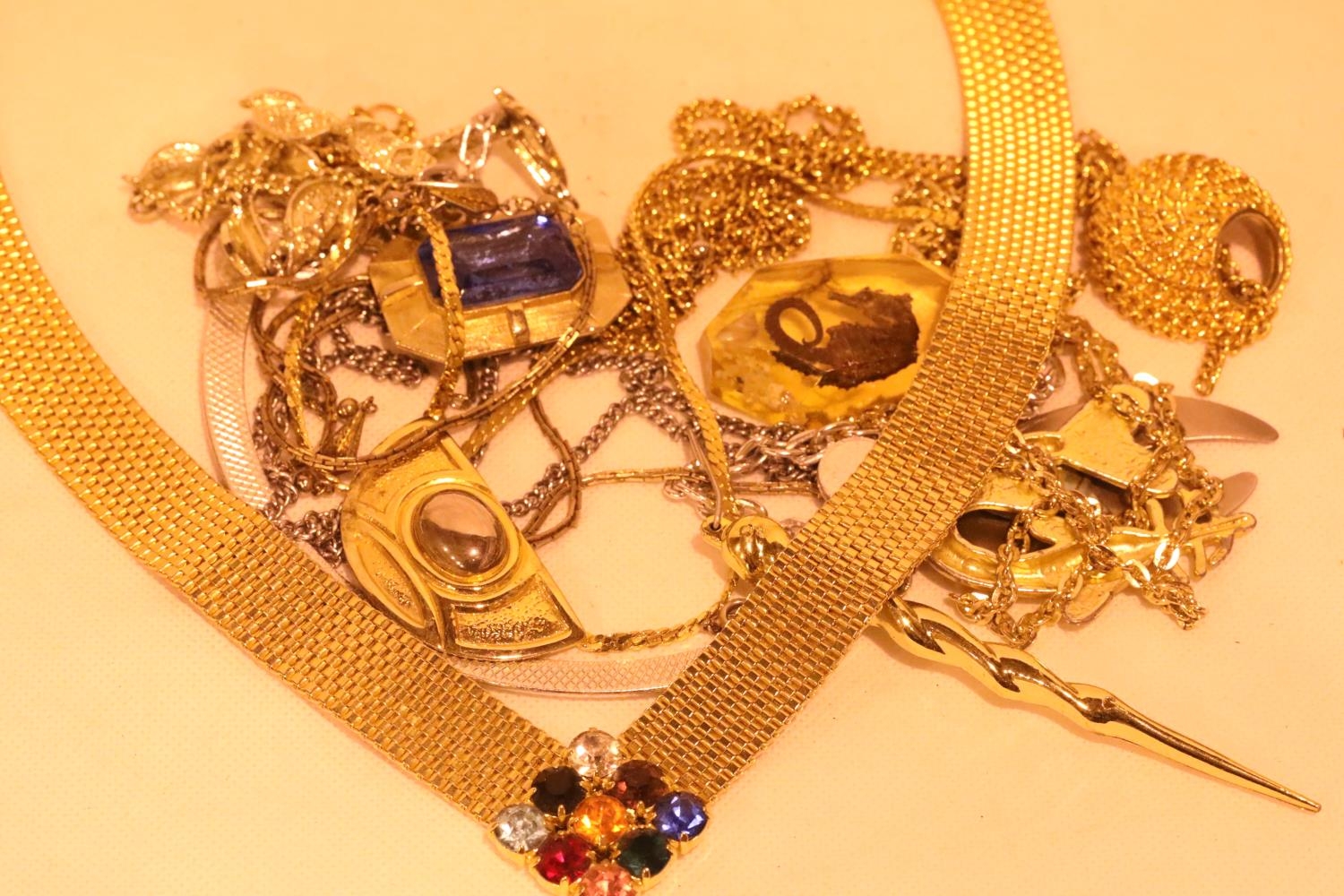 Box of yellow and white metal pendants and chains. P&P Group 1 (£14+VAT for the first lot and £1+VAT for subsequent lots)