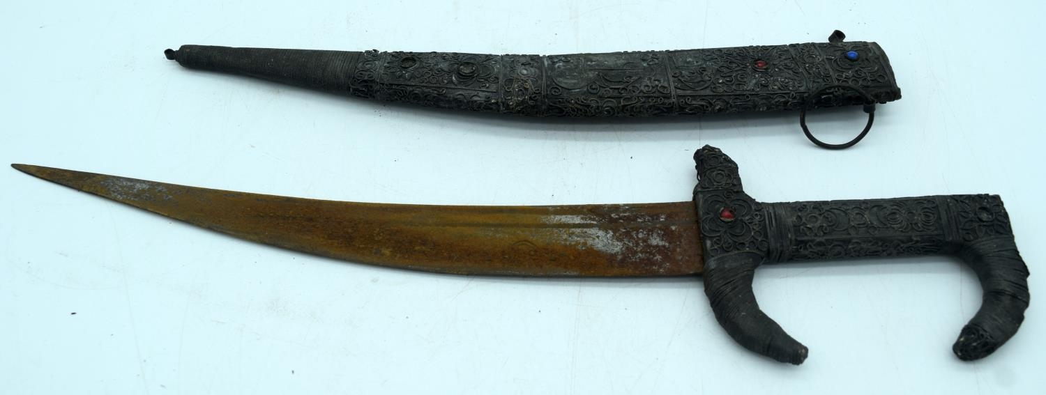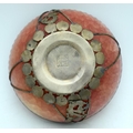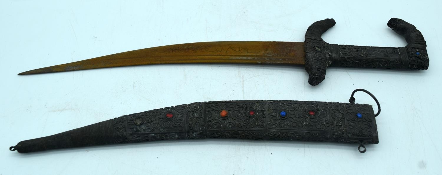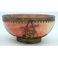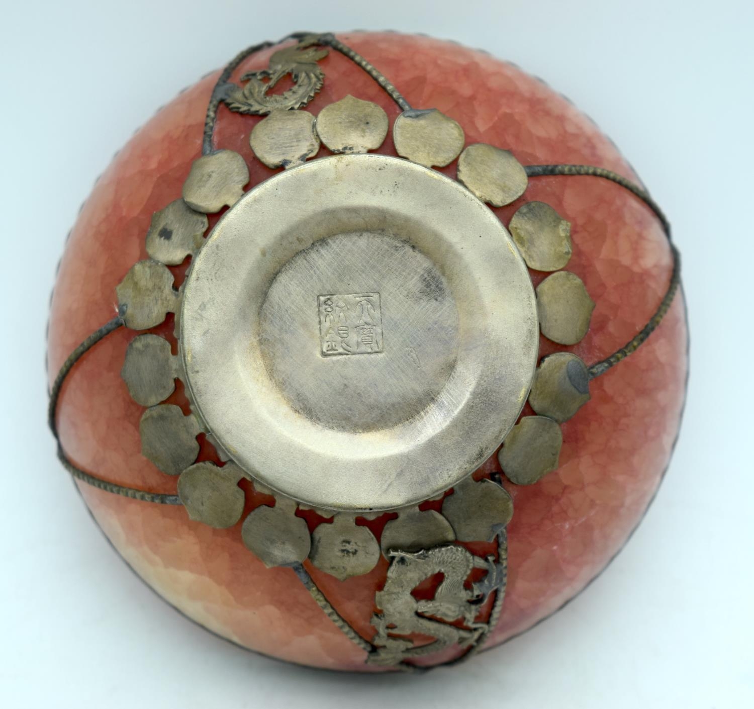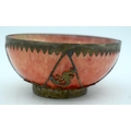 AN EARLY 20TH CENTURY CHINESE CARVED PINK STONE BOWL together with a coral inset dagger. Largest 36 cm long. (2)