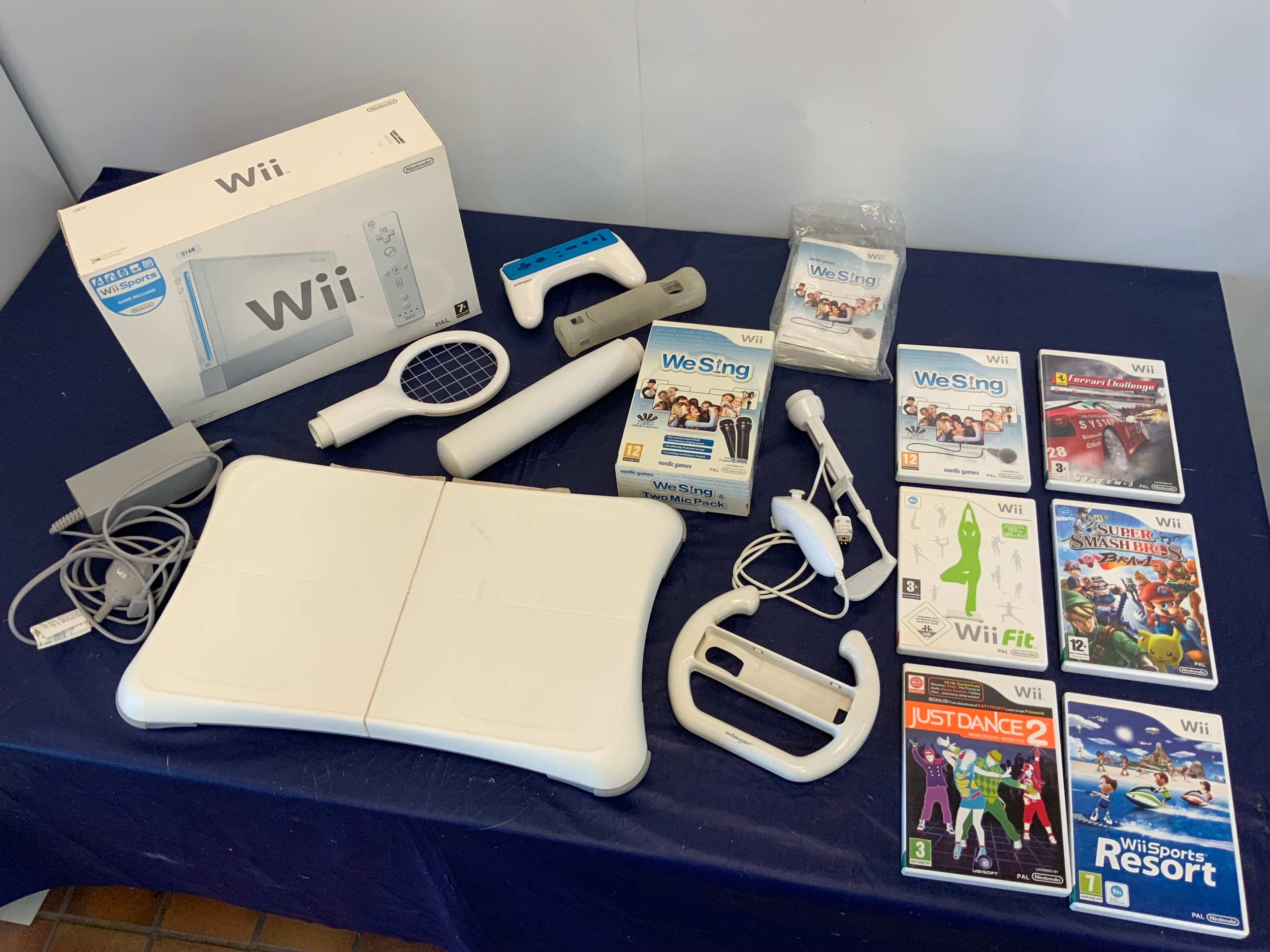 WII GAMES CONSOLE, BALANCE BOARD, CONTROLLERS & GAMES