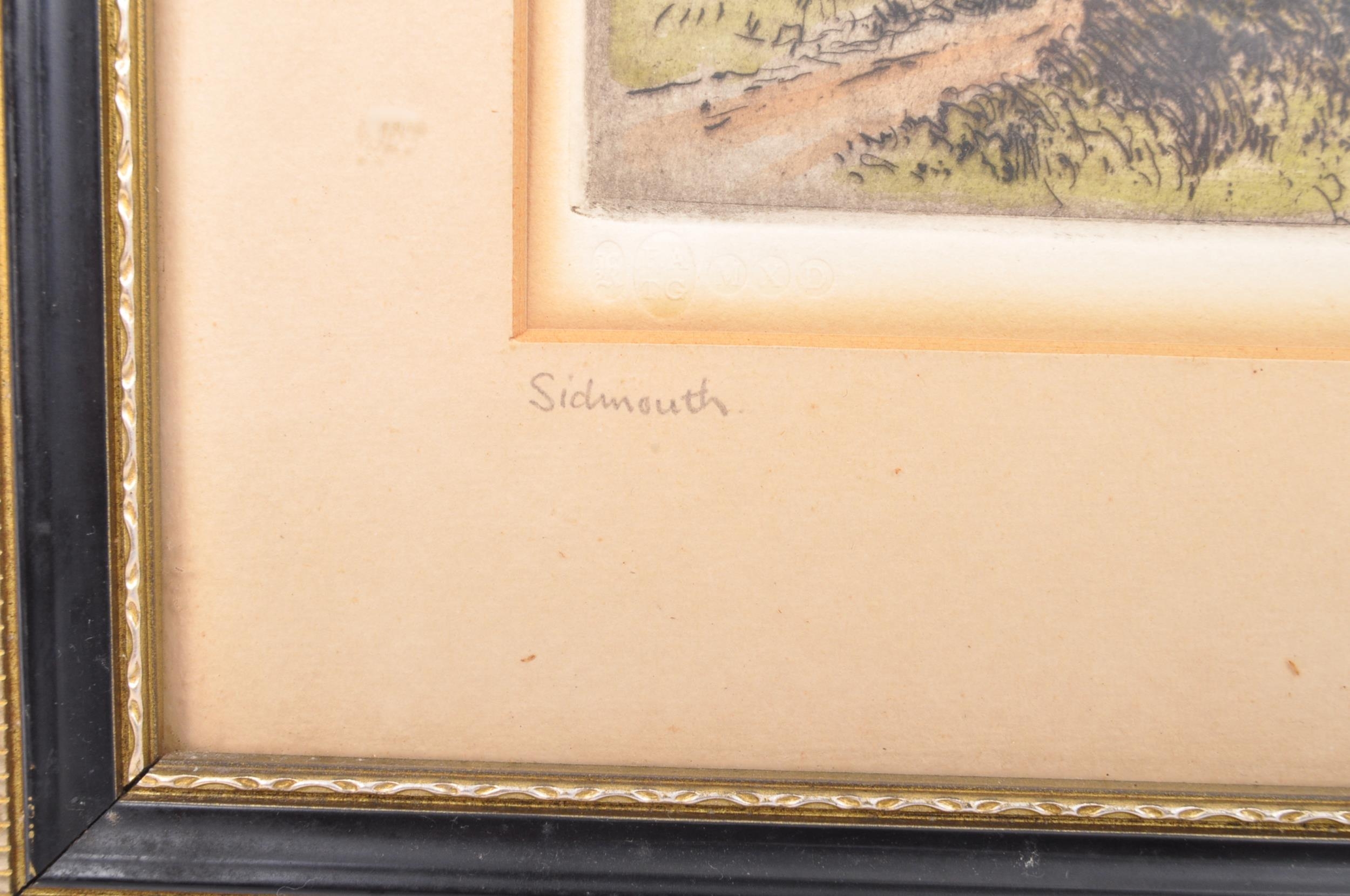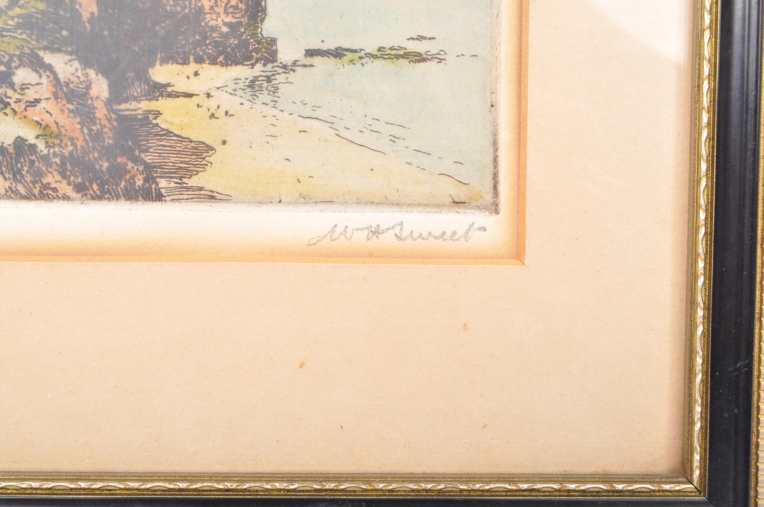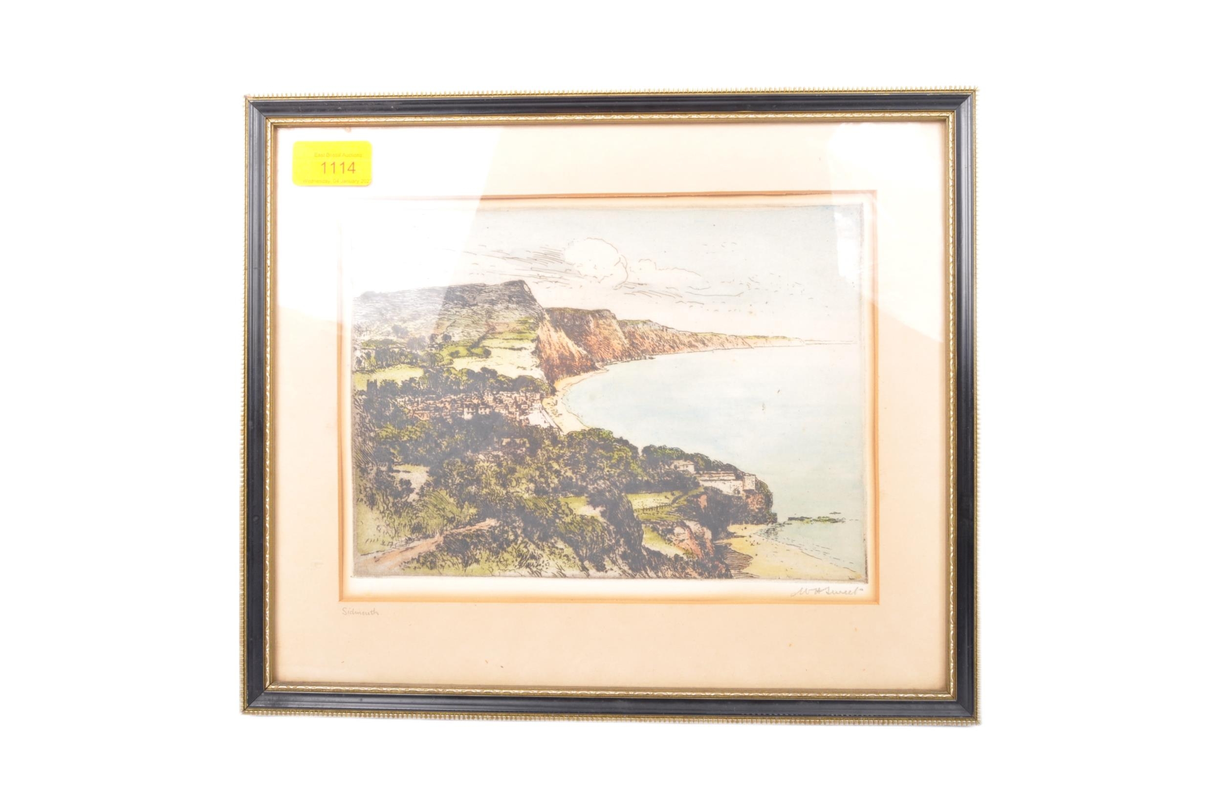 Walter Henry Sweet (1899-1943) Sidmouth looking east. Signed in Pencil. Gallery blind stamps. Framed and glazed. Measures 35cm x 30cm.