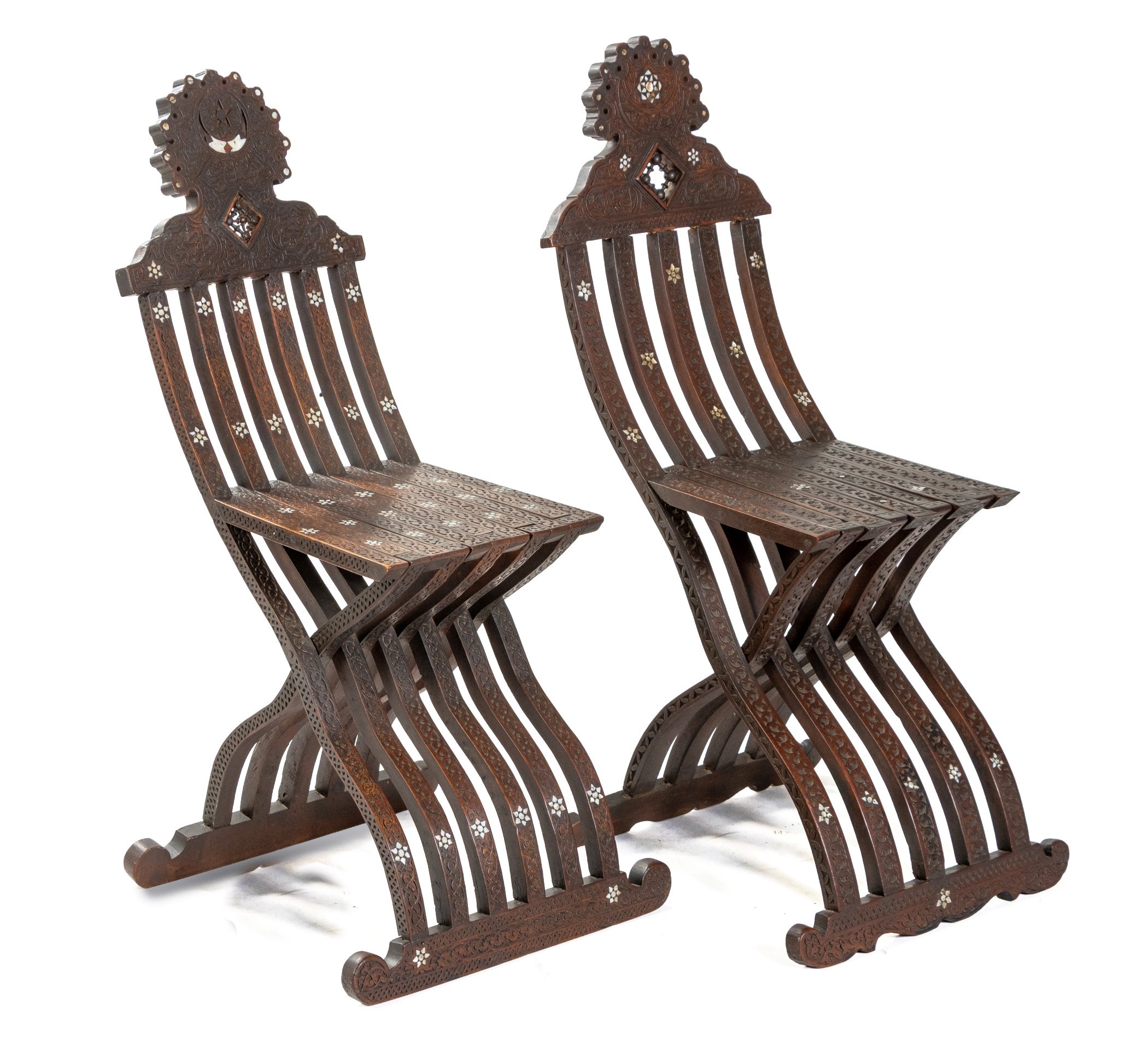 A NEAR PAIR OF SYRIAN SCRIBE'S FOLDING CHAIRS