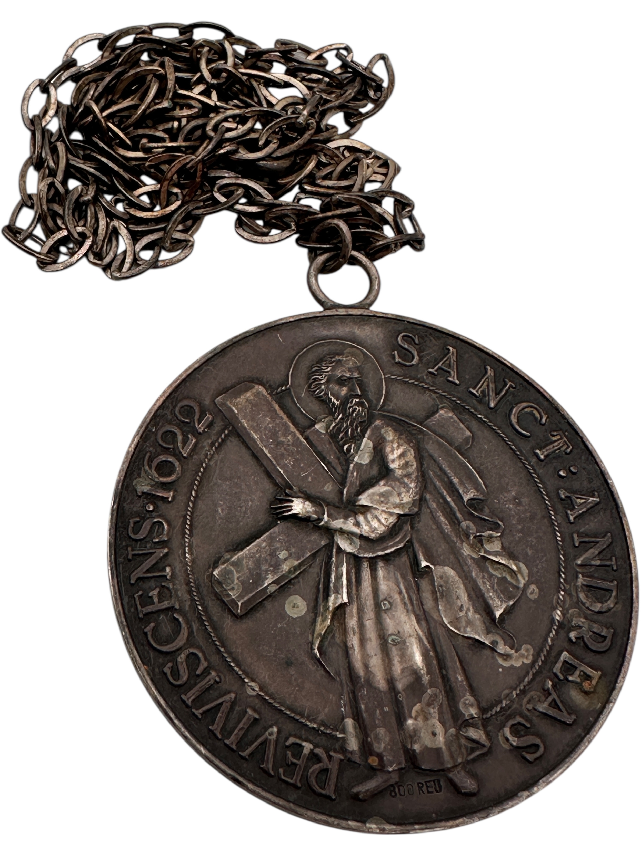 800 Silver St. Andrew Medal Pendant on Chain. 32.41g